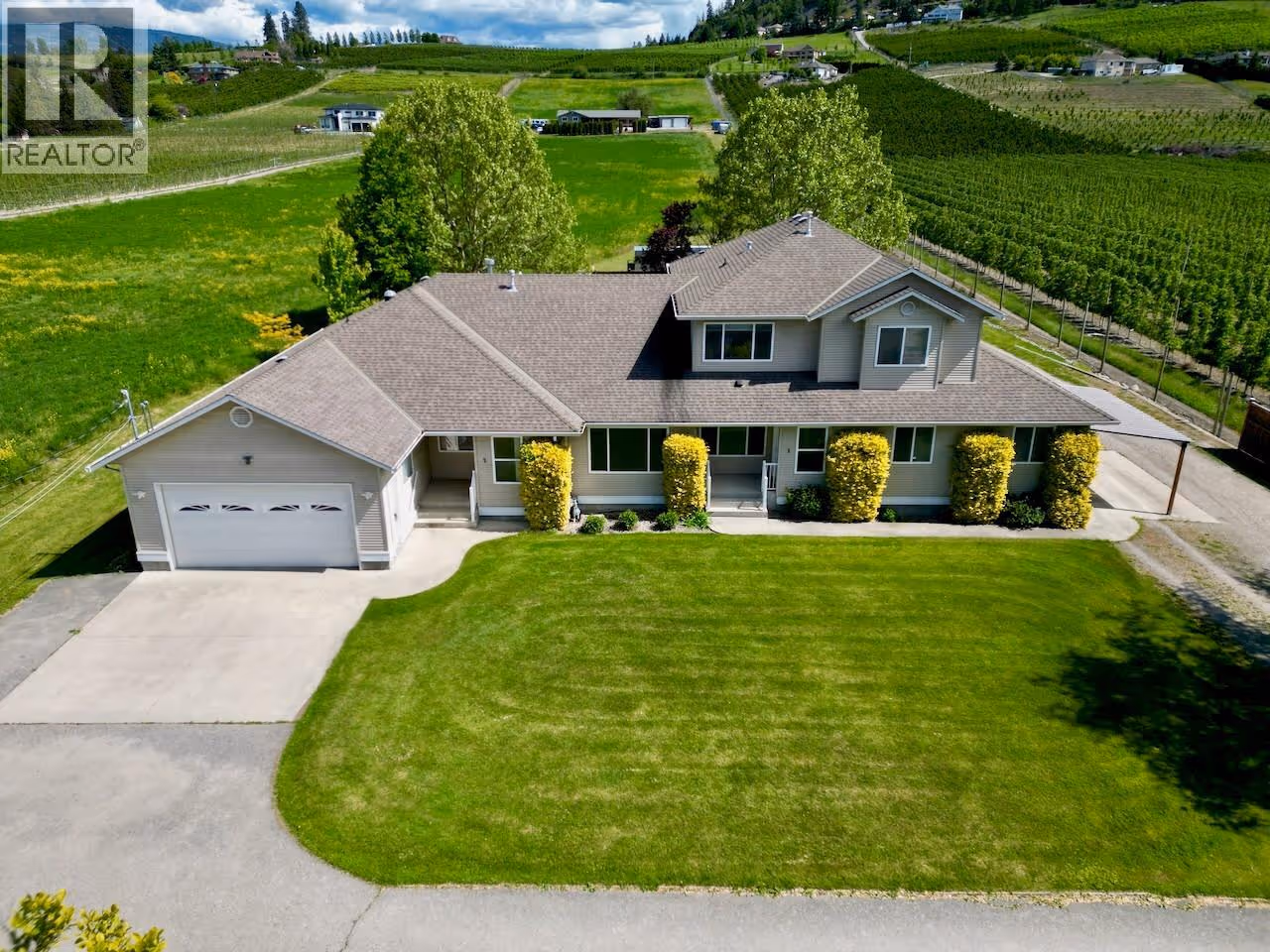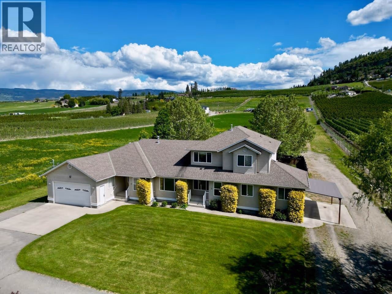 MULTI-GENERATIONAL 13.7 ACRE COUNTRY FARM ESTATE in the heart of Glenmore Valley - walk to schools, shopping, play fields, bike to UBCO! Approx 11.5 Acres of irrigated Alfalfa in 2 fields, potential for cherries, apples, vineyard or your farm ideas! Multi family living potential with 2 homes, 2 inlaw suites, + 2100 SF garage/workshop, 3 double garages and more to house all the toys! MAIN HOME (3-371) features a Beautifully Renovated 4312 SF 3+3 Bedroom Rancher, with basement suite with separate entrance. Spacious open plan, Alder hardwood floors, Gourmet Upscale Maple shaker kitchen with huge island, granite counters, Executive office, Luxurious Open Primary bedroom suite out of sparkling hills. Huge luxurious semi closed patio & 16x36 pool with track cover for entertaining. Amazing detached shop/garage. 2ND HOME (1-2 -371) offers a 2271 SF 2 story style 4 Bed, 3 Bathrooms family home with Oak kitchen, formal living room and gas fireplace in family room. Huge primary bedroom with 3 piece ensuite, finished games room in built out garage and more, tons of storage. Attached 1830SF self contained rancher style 3 bed, 2 bath ""farm help"" inlaw suite is amazing - Oak hardwood, huge primary bed, 4 piece ensuite. Fenced backyard, tons of parking, double garage plus detached garage. ALR and agricultural use for low taxes. GST on farm portion. So much potential for multi-generations to live, and do intensive farming. It is the Best mix of Country Rural living with Central Convenience! (id:62999)