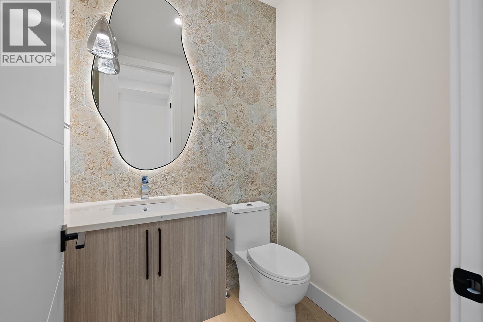 Now offered in McKinley Beach’s sought after second phase, this brand new custom home sits at the end of a quiet cul de sac just steps to the new amenity centre. Thoughtfully designed with 5 bedrooms and 5 bathrooms, including a legal 1 bedroom suite with separate entrance, parking, patio, its own electrical meter and enhanced soundproofing for multigenerational living or added income. The main level is bright and open with hardwood floors, soaring ceilings and a striking 3 sided electric fireplace. A chef inspired kitchen features quartz counters, walk in pantry and direct deck access with gas BBQ hookup, plus a dedicated office for work from home flexibility. Upstairs offers 3 bedrooms, including a refined primary retreat with heated floors, freestanding tub and dual rain shower. The walkout lower level adds 9 foot ceilings, rec room with fireplace, wet bar, guest bedroom and bath, and a patio pre wired for a hot tub. Zoned HVAC with HRV and humidifier, Navien on demand hot water, security with cameras, 8 foot doors and a fully irrigated low maintenance yard complete the package. Pool, gym, tennis courts, lake, beach and marina all moments away. (id:62999)