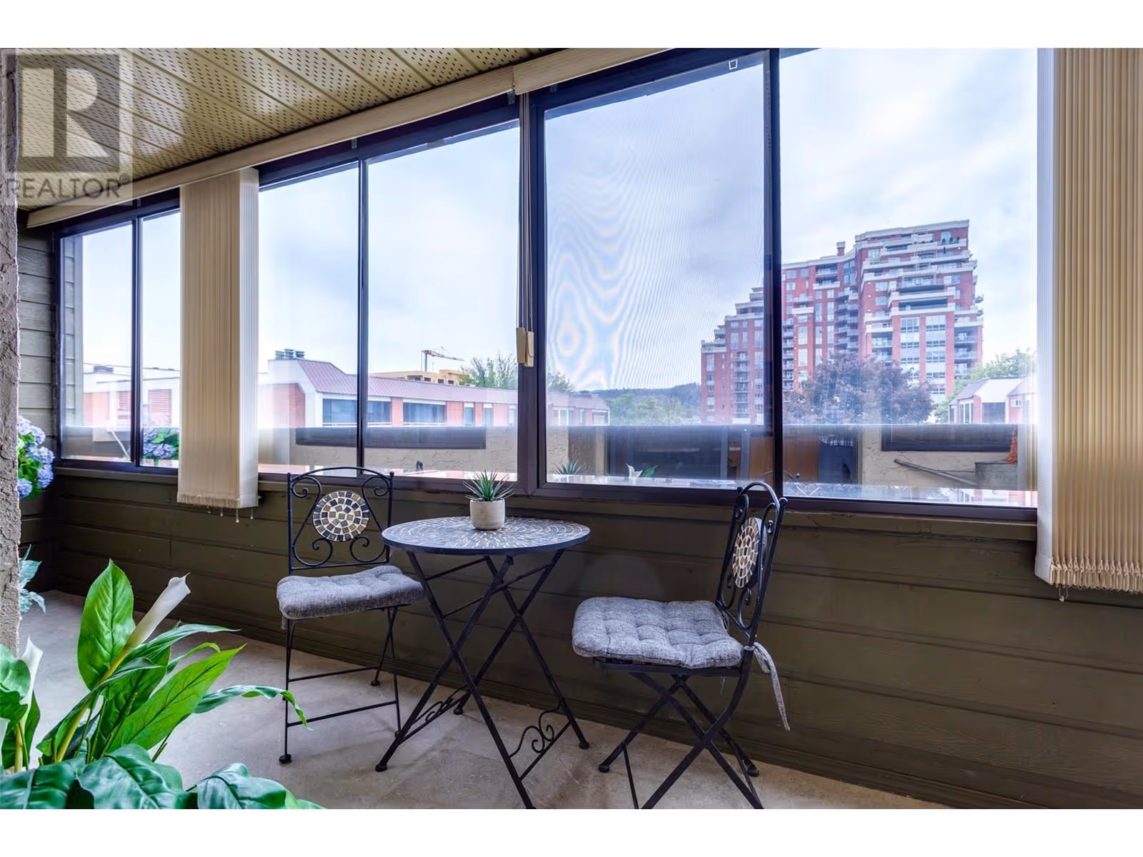 Welcome to 1056 Bernard Avenue – Downtown Kelowna’s Hidden Gem! Discover this beautifully updated top-floor condo in a quiet and well-cared-for 55+ community, just steps from all that downtown Kelowna has to offer. This bright and spacious 2-bedroom, 2-bathroom home features vaulted ceilings, a cozy gas fireplace, and an enclosed balcony with new screens. Recent upgrades include ""smart"" ac unit, new laminate flooring as well as contemporary lighting and plumbing fixtures, giving the home a modern, move-in-ready feel. Enjoy peace of mind and a low-maintenance lifestyle with secure underground parking, private storage, and exceptional amenities: outdoor inground pool, indoor hot tub, indoor sauna, carpenter's workshop, and landscaped and beautifully maintained grounds, all within a friendly and welcoming community atmosphere. The unbeatable central location puts you within easy walking distance of shops, restaurants, breweries, live entertainment, and the sparkling waterfront. Mature trees and a picturesque walk down Bernard Avenue make the journey to downtown a true pleasure. This pet-friendly building allows up to two pets (with size restrictions), making it easy to bring your furry companions along. Don’t miss this rare opportunity to enjoy comfort, convenience, and community all in one exceptional home! (id:62999)