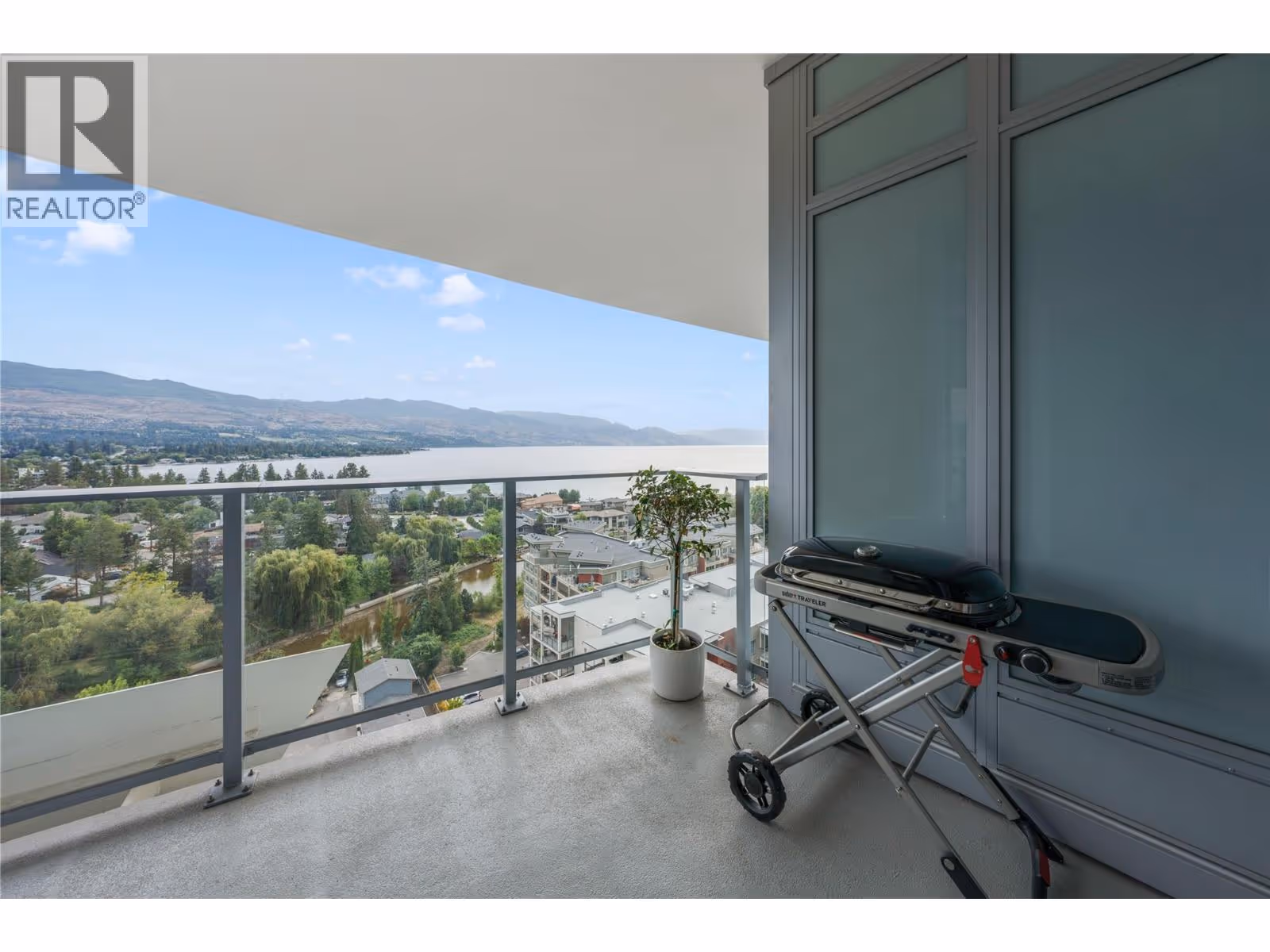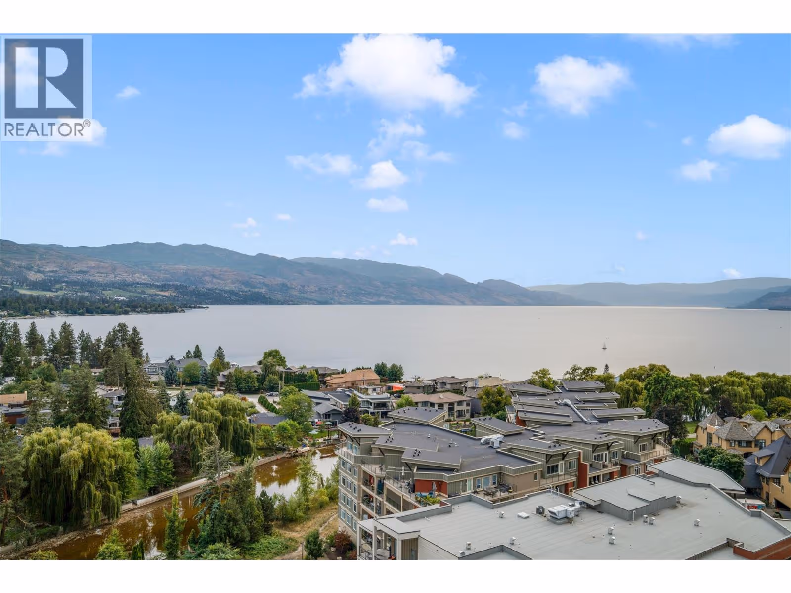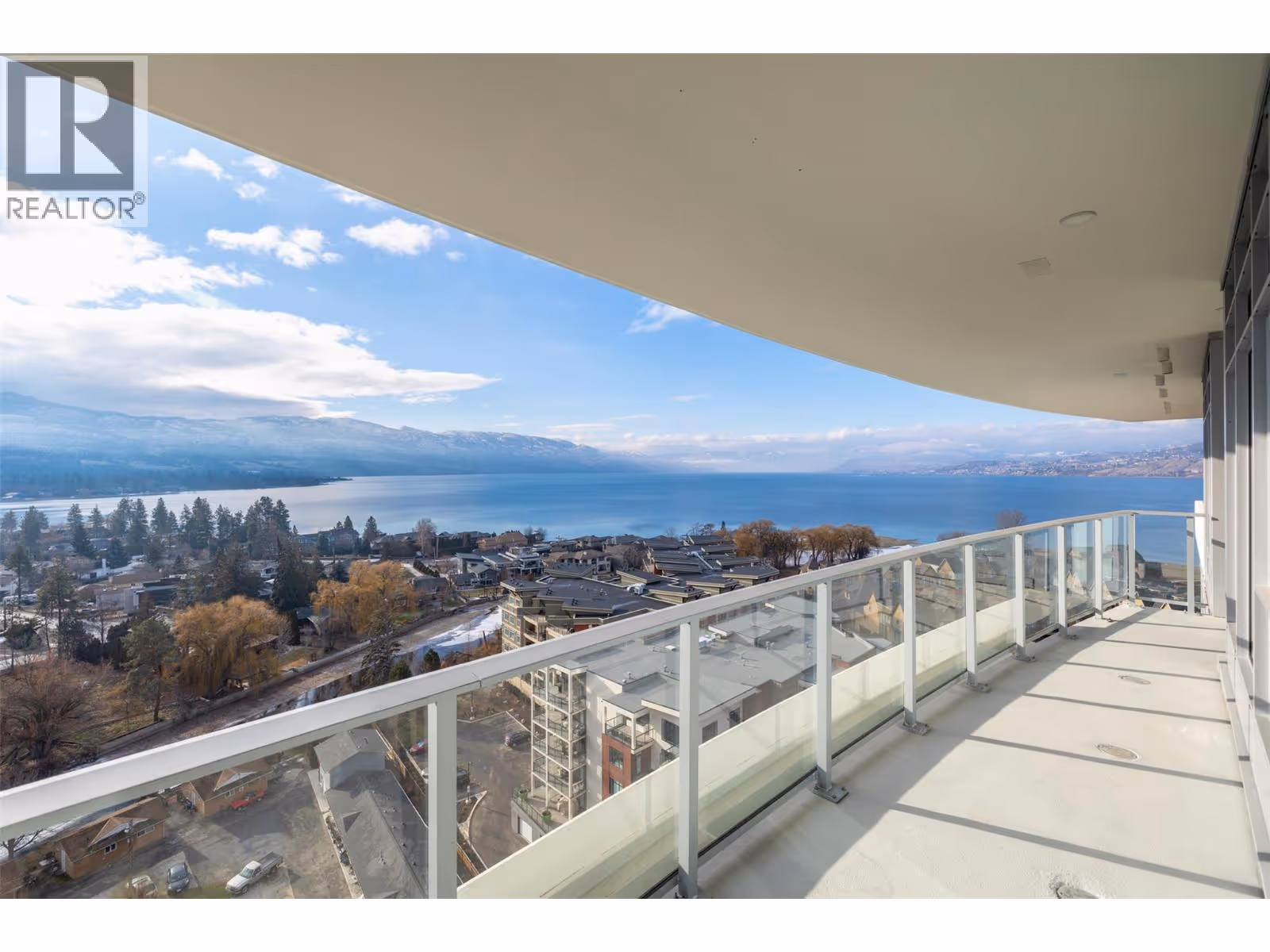 Welcome to lakeside luxury resort-style living at AQUA. Embrace waterfront relaxation in this South-Facing Penthouse with High Ceiling featuring 2 bedrooms, each with its own full ensuite (both with double sinks), boasting a charming 240 sq ft patio with 10' ceiling. With 2 secured covered parking stalls (PRIVATE garage space with garage door), indulge in one of the best unobstructed views of both Lake & Mountains. 2 large bedrooms situated at opposite ends of the unit. Dive into a lifestyle of leisure as you immerse yourself in the world-class Aqua Boat Club, ready to embark on adventures of surf across Lake Okanagan. This 15-story solid concrete construction offers 8 inches of concrete between floors, oversized windows, central hot water system included in the strata fees. Enjoy quiet & efficient heating & cooling through VRV (variable refrigerant volume) & ERV (energy recovery ventilator), along with fiber-optic wiring, quartz countertops, premium stainless-steel appliance package. AQUA is pet-friendly with no size restrictions, offers an outdoor pool, hot tub on the 5th floor, lounge seating, landscaped BBQ area, two-story 2000 sq ft gym & yoga/meditation area, co-workspace, poolside fireside lounge, shared kitchen, conference room & dog wash station, paddle board storage. Priority access to membership opportunities at onsite world-class Aqua Boat Club, at current market rates, subject to availability. 2-5-10 year new home warranty, GST paid. Quick possession possible. (id:62999)
