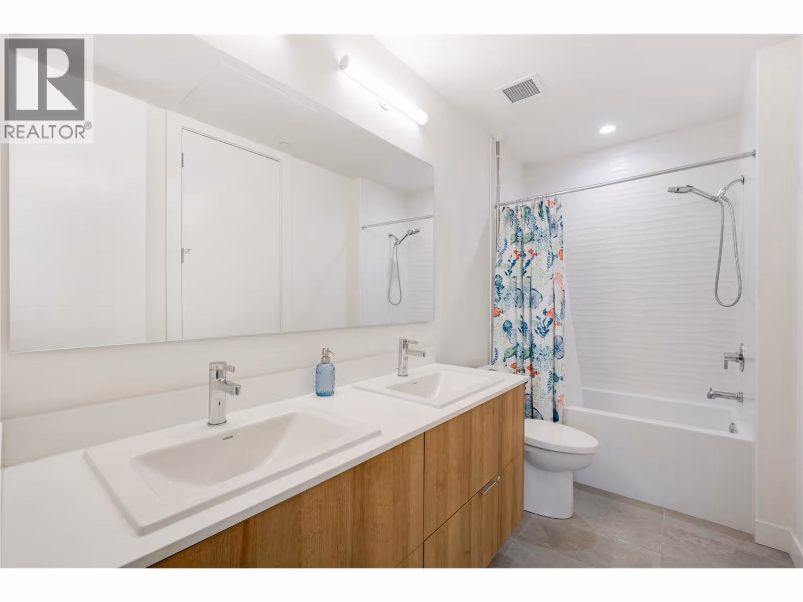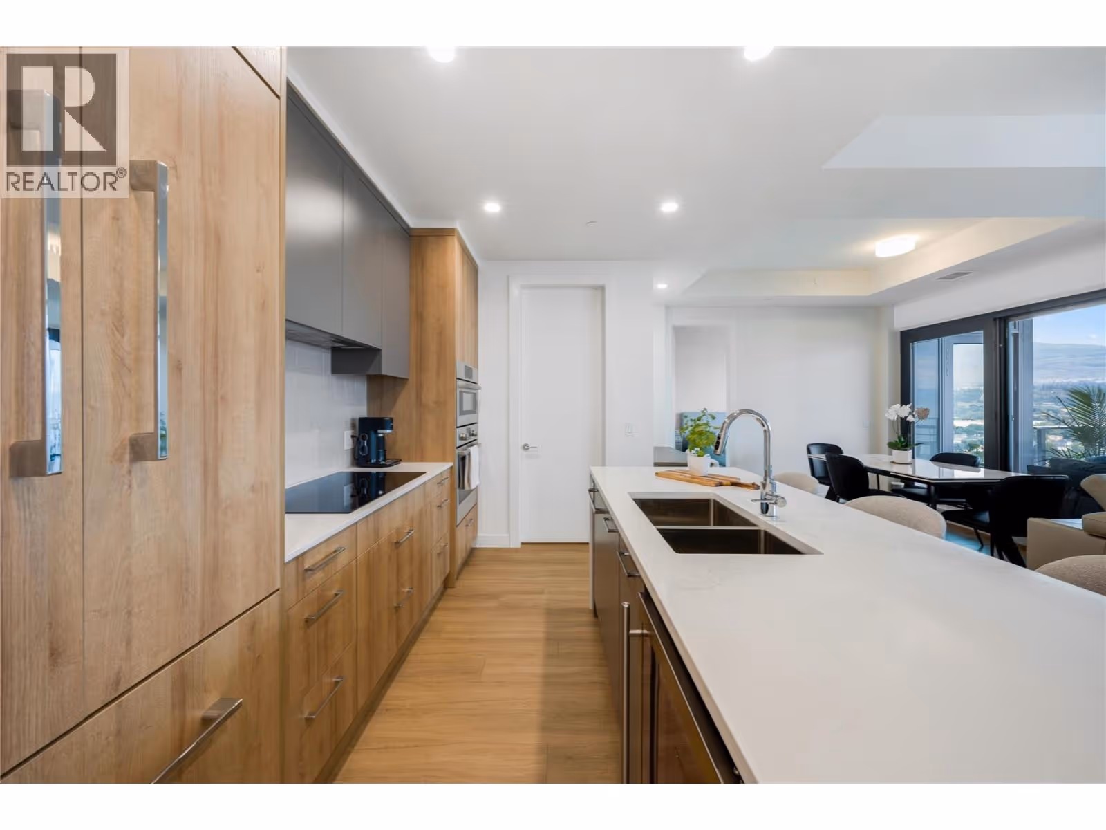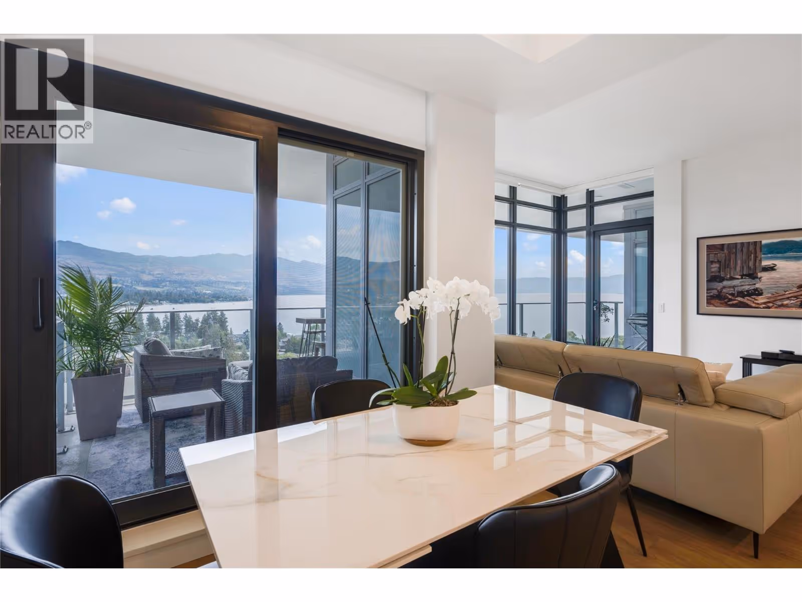 Welcome to lakeside luxury resort-style living at AQUA. Embrace waterfront relaxation in this South-Facing Penthouse with High Ceiling featuring 2 bedrooms, each with its own full ensuite (both with double sinks), boasting a charming 240 sq ft patio with 10' ceiling. With 2 secured covered parking stalls (PRIVATE garage space with garage door), indulge in one of the best unobstructed views of both Lake & Mountains. 2 large bedrooms situated at opposite ends of the unit. Dive into a lifestyle of leisure as you immerse yourself in the world-class Aqua Boat Club, ready to embark on adventures of surf across Lake Okanagan. This 15-story solid concrete construction offers 8 inches of concrete between floors, oversized windows, central hot water system included in the strata fees. Enjoy quiet & efficient heating & cooling through VRV (variable refrigerant volume) & ERV (energy recovery ventilator), along with fiber-optic wiring, quartz countertops, premium stainless-steel appliance package. AQUA is pet-friendly with no size restrictions, offers an outdoor pool, hot tub on the 5th floor, lounge seating, landscaped BBQ area, two-story 2000 sq ft gym & yoga/meditation area, co-workspace, poolside fireside lounge, shared kitchen, conference room & dog wash station, paddle board storage. Priority access to membership opportunities at onsite world-class Aqua Boat Club, at current market rates, subject to availability. 2-5-10 year new home warranty, GST paid. Quick possession possible. (id:62999)