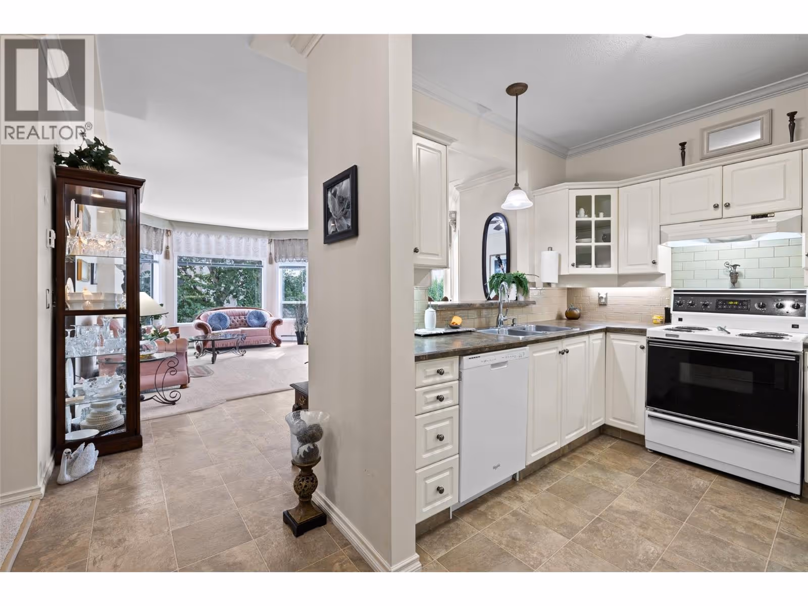 Bright, Spacious, Corner, South & East facing Residence, in highly sought after Lower Mission. Beautifully updated 2-bedroom, 2-bath (1123 sq ft) + enclosed sunroom (newer thermal windows) is perfectly situated on the quiet, park-like side - enjoying morning sunshine and afternoon shade with open views over the landscaped grounds. Recent updates include a modern kitchen, refreshed bathrooms, newer flooring, light fixtures, and neutral paint tones—making this home truly move-in ready. The bright white kitchen features a convenient pass-through breakfast bar to the dining area, flowing seamlessly into the spacious living room enhanced by two bay windows that fill the space with natural light from both south and east exposures. The enclosed sunroom creates the perfect retreat and the spacious Primary bedroom impresses with walk-through closets and a private 3-piece ensuite. This well-maintained Age 55+ Pet-Friendly community (one small dog or one cat) with secured underground parking, offers amenities featuring; social gathering areas, billiards room, Plus for a $52 monthly fee access to indoor pool, hot tub, gym/exercise room and a bistro. Positioned beside a tranquil creek yet incredibly convenient - just steps to shops, restaurants, medical services, and every amenity, in Kelowna’s most desirable neighbourhood. This bright corner gem is ready for you to move in and enjoy! (id:62999)