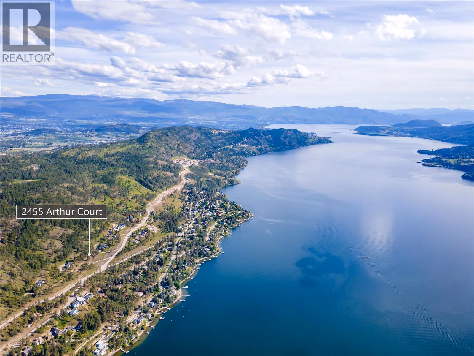 Rare opportunity! World class 2.47 acre southwest facing lot with spectacular 360 degree panoramic lake and mountain views. Quiet rural setting in a well established community, surrounded by mature evergreen trees providing you with nature's oxygen bar and just a short walk to Okanagan Lake. RR2 zoning allows for a small or large custom built home with a walk-out basement, pool and an attached guest suite + a large accessory building. The perfect slope of the lot is well suited for the construction of a beautiful multi level house built in to the hill side which would maximize the spectacular lake views and reduce construction costs. Water, phone, cable, private road at the lot line. No building time frame. Only minutes to UBCO, Airport, wineries, shopping, beaches, hiking, restaurants, golf, skiing, wineries, skiing, hiking, quality schools. (id:62999)