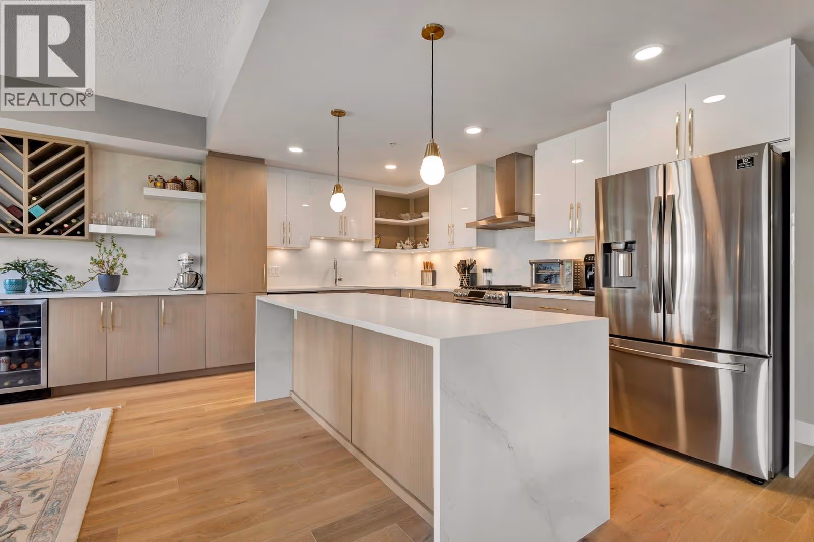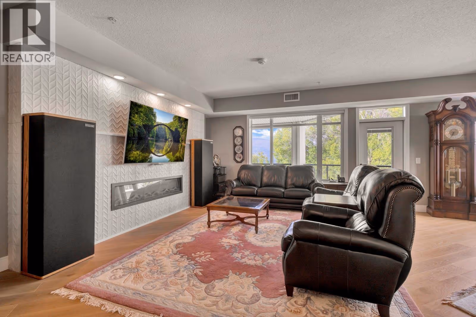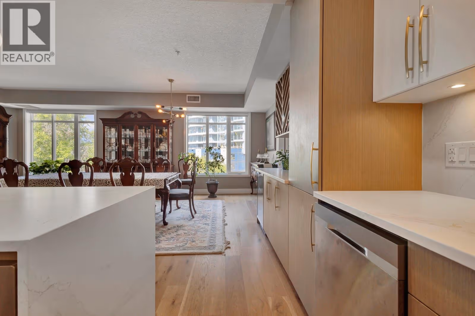Your Lake-Adjacent Sanctuary Awaits! Downsize without compromise — enjoy single-level living that retains generous square footage and all the comforts of a house. Picture morning coffee on one of your two expansive balconies, offering outdoor space with views that will become your personal entertainment venue. This large 2-bedroom plus den at Essence delivers the Lower Mission lifestyle you've been searching for. The open concept floor plan allows you to enjoy a sun-drenched living area where kitchen, dining, and living room spaces flow seamlessly together. The primary suite is your luxurious retreat with a spa-inspired ensuite, which includes dual vanities, a walk-in shower, and a soaking tub and generous walk-in closet Every detail whispers quality: nine-foot ceilings, quartz countertops throughout, premium appliances, and remarkable soundproofing ensures your peace and privacy. The versatile den offers flexibility for your lifestyle. Two heated secure underground parking stalls and same-floor storage complete the package. Building amenities include a fully-equipped fitness center, secure bike storage, entertainment lounge for hosting, and a stunning second-floor terrace with pergola and shuffleboard for enjoying summer evenings. Steps to Okanagan Lake, Mission Park Greenway, and Eldorado-Manteo dining and recreation hotspots. You're not just buying a condo—you're buying a lifestyle. Pet & rental friendly. Make this your everyday home and start living the Okanagan dream. (id:62999)