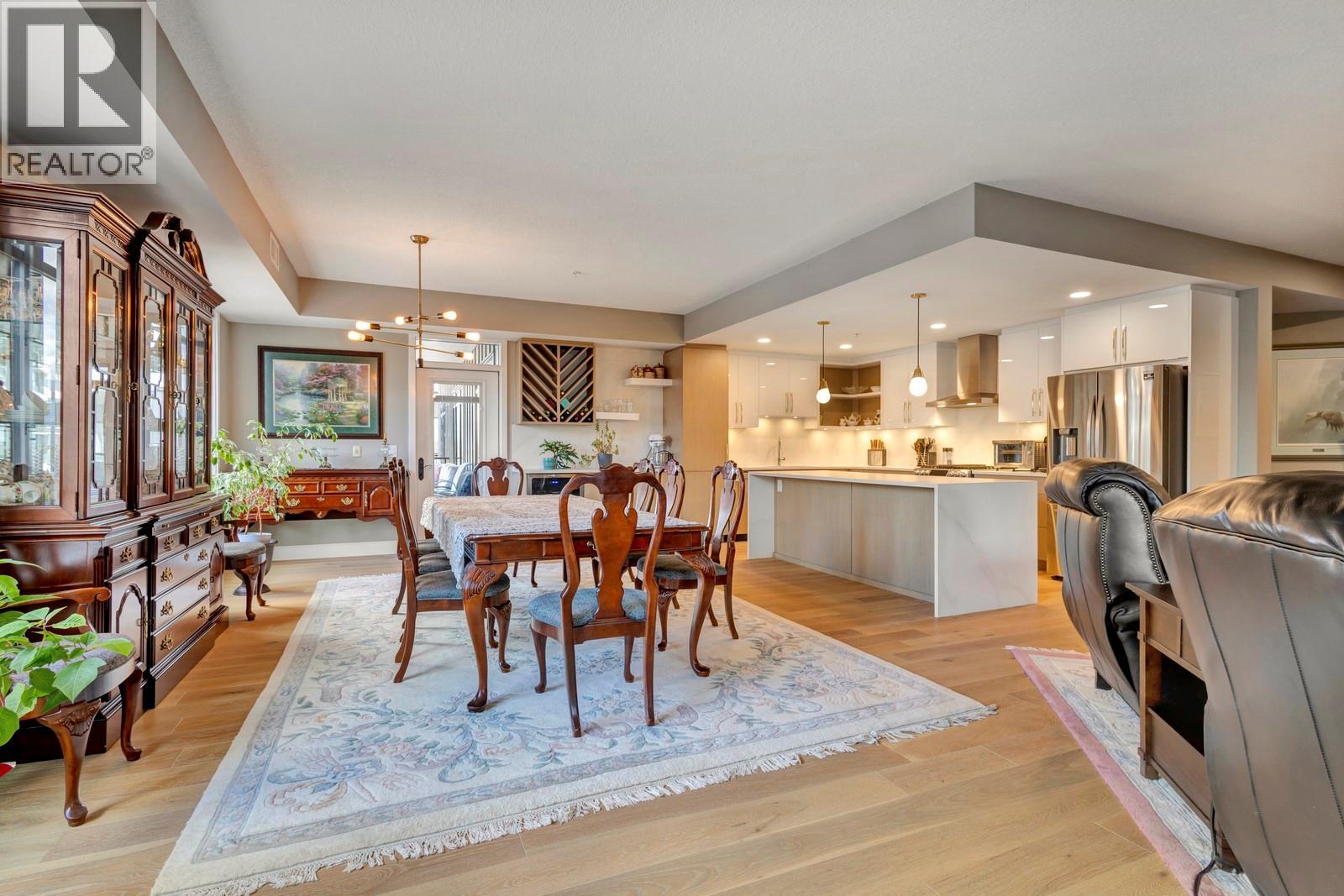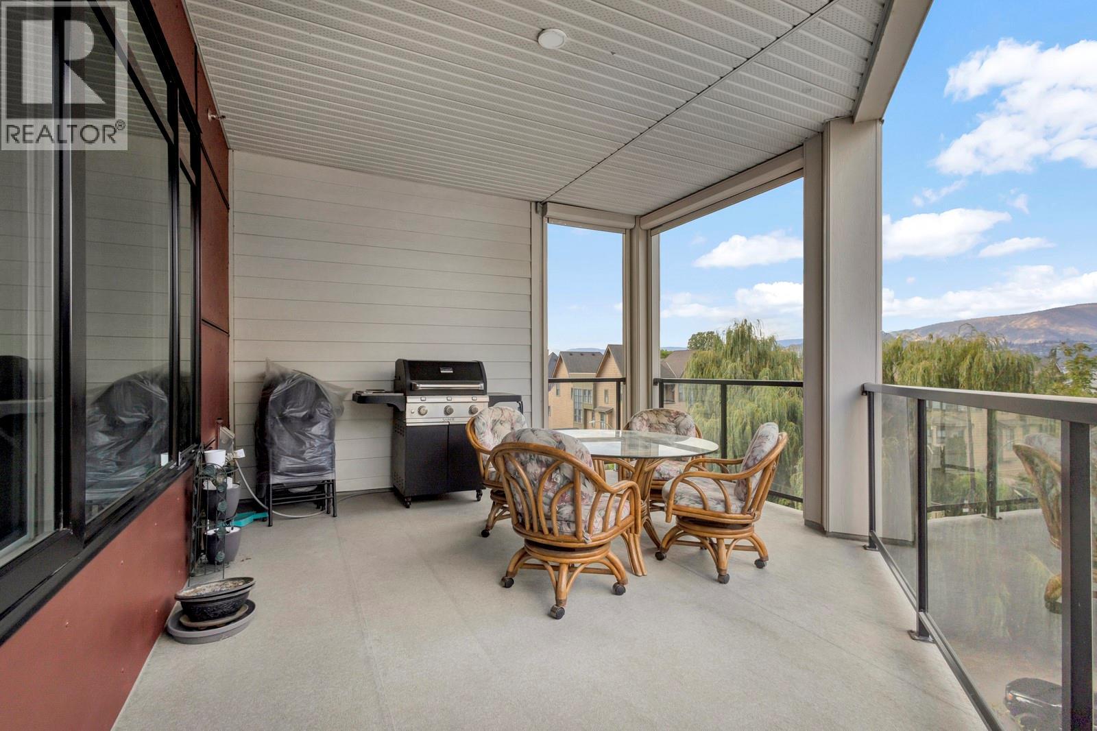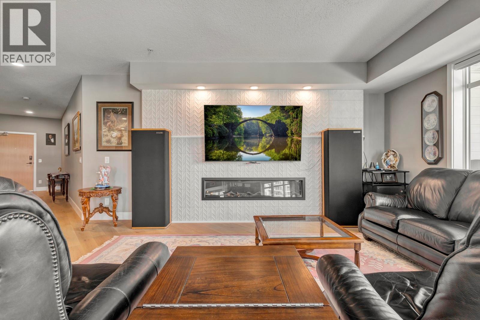 Your Lake-Adjacent Sanctuary Awaits! Downsize without compromise — enjoy single-level living that retains generous square footage and all the comforts of a house. Picture morning coffee on one of your two expansive balconies, offering outdoor space with views that will become your personal entertainment venue. This large 2-bedroom plus den at Essence delivers the Lower Mission lifestyle you've been searching for. The open concept floor plan allows you to enjoy a sun-drenched living area where kitchen, dining, and living room spaces flow seamlessly together. The primary suite is your luxurious retreat with a spa-inspired ensuite, which includes dual vanities, a walk-in shower, and a soaking tub and generous walk-in closet Every detail whispers quality: nine-foot ceilings, quartz countertops throughout, premium appliances, and remarkable soundproofing ensures your peace and privacy. The versatile den offers flexibility for your lifestyle. Two heated secure underground parking stalls and same-floor storage complete the package. Building amenities include a fully-equipped fitness center, secure bike storage, entertainment lounge for hosting, and a stunning second-floor terrace with pergola and shuffleboard for enjoying summer evenings. Steps to Okanagan Lake, Mission Park Greenway, and Eldorado-Manteo dining and recreation hotspots. You're not just buying a condo—you're buying a lifestyle. Pet & rental friendly. Make this your everyday home and start living the Okanagan dream. (id:62999)