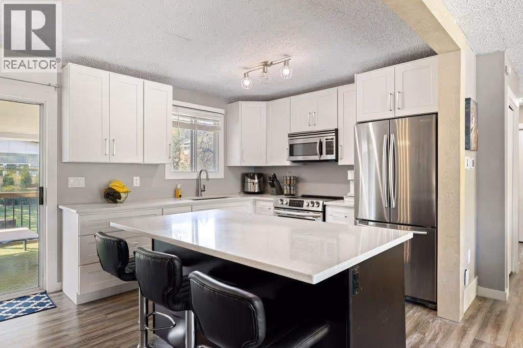 Exceptional value in a prime location with REDEVELOPMENT POTENTIAL! Located in a desirable, family-friendly neighbourhood, this well-maintained split-level home offers an excellent opportunity for homeowners looking for space, convenience, and future development opportunities. Zoned RU1, the home sits on a large, flat 0.26 acre lot. With over 2,020 sq. ft. of functional living space, this family friendly layout includes 4 bedrooms and 2 bathrooms. The primary and second bedroom are located on the main floor with a 4 piece bathroom, while two additional bedrooms, a 3 piece bath and large recreational room are located on the lower level. Enjoy the many recent updates including the remodelled kitchen with stainless steel appliances, flooring throughout, and new asphalt roof. A covered deck off the main level provides a great space for outdoor entertaining or relaxing year-round. Outside there is ample vehicle and RV parking, 3 storage sheds, and plenty of space to build a detached garage/workshop. You cannot beat this location, with nearby parks, an elementary school, and recreational opportunities just minutes away. It’s a 10-minute drive to Orchard Park Shopping Centre, 30 minutes to Big White Ski Resort, and minutes from Black Mountain’s 18-hole golf course. Don't miss this rare opportunity to own an affordable home in a prime area with plenty of room to grow and make it your own. Potential for a carriage house! Furnace 2018, HWT 2018, AC 2023, Roof 2023 (id:62999)