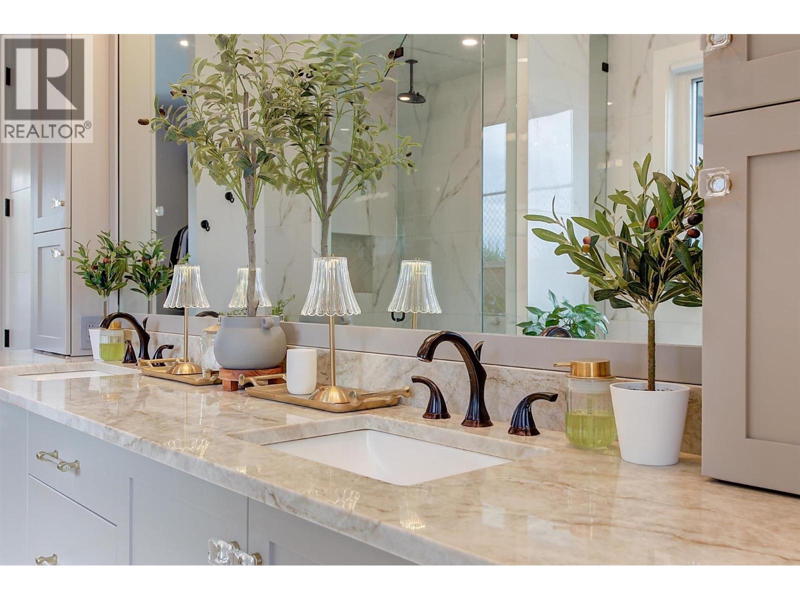 Welcome to this remarkable DeBruin Custom Home, tucked away on an exclusive private cul-de-sac in the prestigious Upper Ponds neighborhood. Blending modern sophistication with timeless elegance with more than 5,800 sq. ft. of luxurious living. Inside, you’ll find 5 bedrooms (lower bedroom ""no closet"") and 6 bathrooms, including upper-level bedrooms each with their own private ensuite. The chef-inspired kitchen features premium appliances, double ovens, dual dishwashers, a butler’s pantry, a hidden coffee station, and two large islands that make hosting effortless. The open-concept living and dining areas are accented by architectural detailing and expansive nano doors that open to a true outdoor oasis. Enjoy Kelowna summers with a built-in BBQ, fire pit, saltwater pool, and sweeping lake views. The fully fenced yard also includes a dog run and a private putting green. Every detail has been thoughtfully integrated with full home automation, controlled by a single app. The lower level offers a spacious rec room, family room, and additional flex space that can easily be transformed into a home theatre or 5th bedroom. This location is second to none: minutes to Okanagan Lake beaches, world-renowned wineries, golf, and shopping, with Canyon Falls Middle School less than 1 km away and a new shopping center just around the corner. This is more than a home—it’s a lifestyle. Rarely does an offering of this caliber become available in one of Kelowna’s most coveted communities. (id:62999)