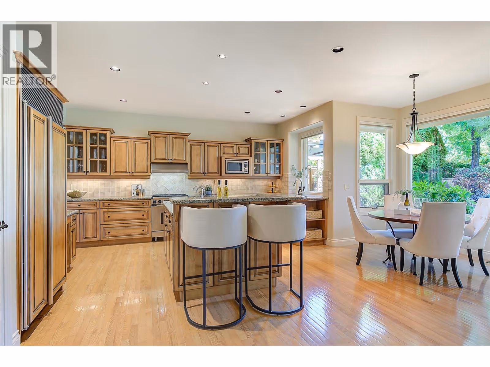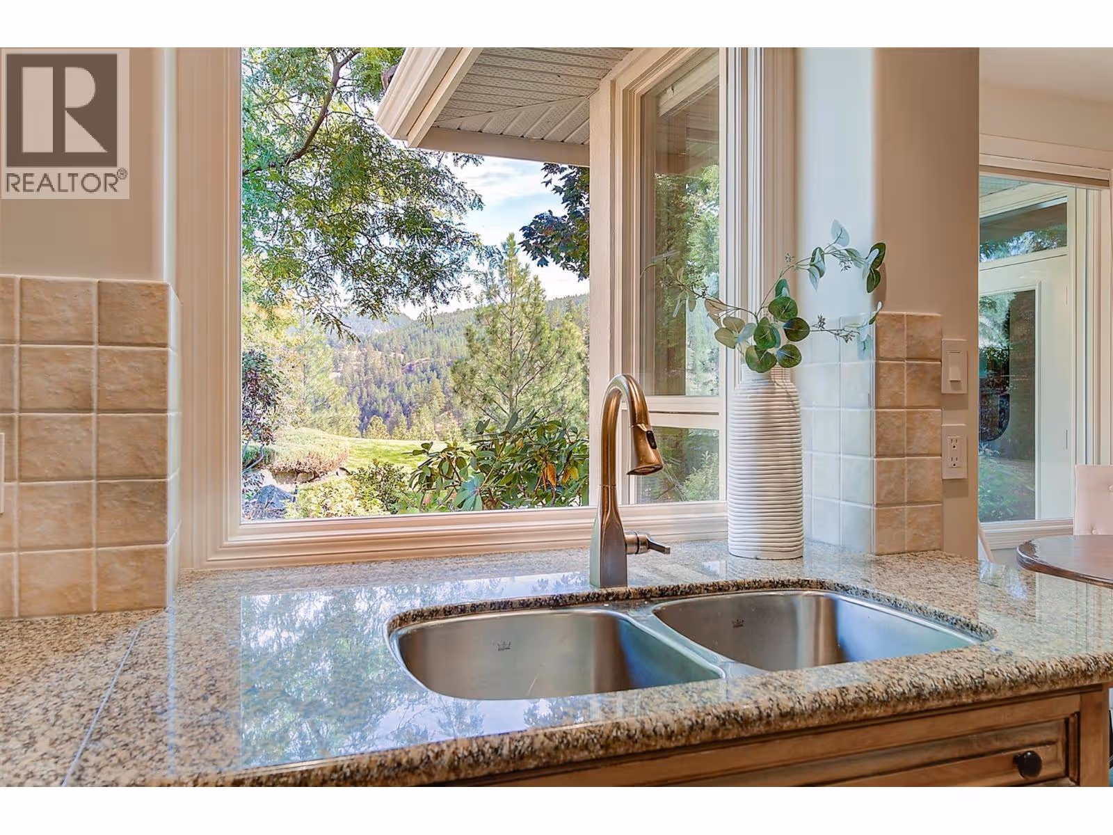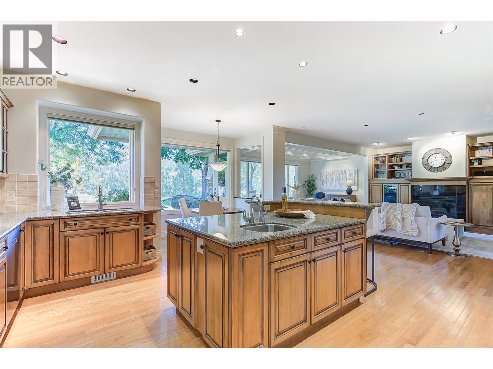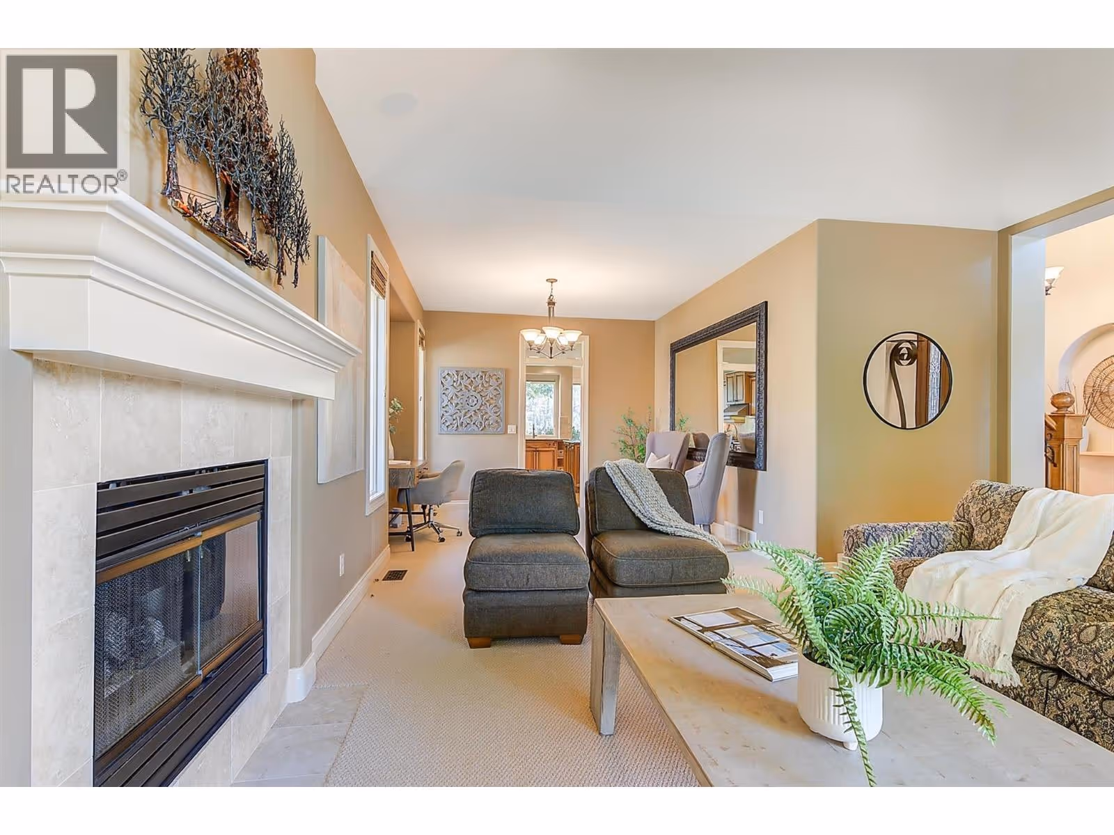 Experience refined, effortless living in this beautifully appointed 3bdrm, 3bath home with over 3300 sqft of thoughtfully designed space. This residence blends comfort & timeless style against a breathtaking canyon backdrop on one of the most coveted streets in Gallagher's Canyon. The 2300sqft main level welcomes you with a two-storey foyer leading to a spacious great rm w/custom built-ins, beautiful ceiling detail & cozy gas f/p flowing into a sun-filled dining area framed by floor-to-ceiling windows & access to the backyard; complete w/paver stone patio, mature landscaping & stunning views of Layer Cake Mountain. The expansive kitchen showcases granite counters, gorgeous maple millwork, highend appl, a pantry and a breakfast nook overlooking the private backyard. The primary suite offers a tranquil retreat with serene views, a walk-in closet, and an updated 5-piece ensuite featuring dual sinks, a water closet, soaker tub & glass-enclosed shower. The main level also includes a formal living rm w/vaulted ceilings, large windows & gas f/p, a stylish powder rm & a laundry/mudroom with ample storage. Upstairs, you’ll find two generous bdrms, incl. one with a beautifully renovated ensuite, a second updated bathroom and a versatile den or family room. Additional highlights include a tile roof, irrigation, central vac and an oversized double garage. Gallagher’s Canyon offers an 18 hole golf course, 9 hole executive course, tennis, fitness centre, woodworking shop & ceramics studio! (id:62999)