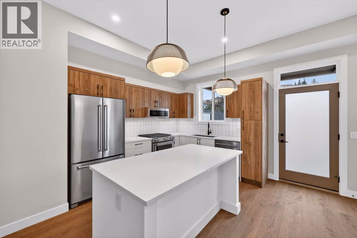 For more information, please click Brochure button. NO Strata Fees for One Year! Priced below assessed value! Discover refined lakeside living in this corner Juniper townhouse featuring 1,873 sq. ft. of contemporary comfort in the Warm Nordic colour palette. With 3 bedrooms, a flex/storage room, and 3 bathrooms, this home combines thoughtful design with an intimate atmosphere. The double side-by-side garage ensures convenience, while the private, partially covered rooftop terrace offers serene views of the surrounding park. GST applicable. Located just 10 minutes from downtown Kelowna and the airport, Pondside Landing is part of a vibrant Wilden community surrounded by scenic trails and nature. Future amenities include the Wilden Market Square and Wilden Elementary School, both just steps away. All measurements are approximate. (id:62999)