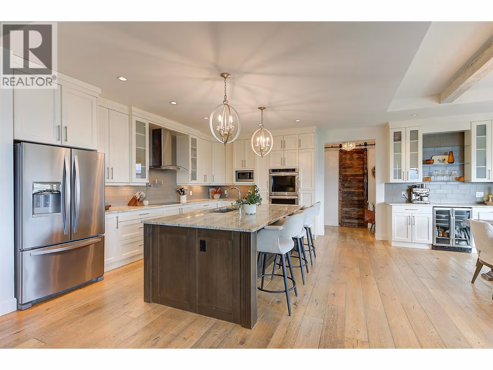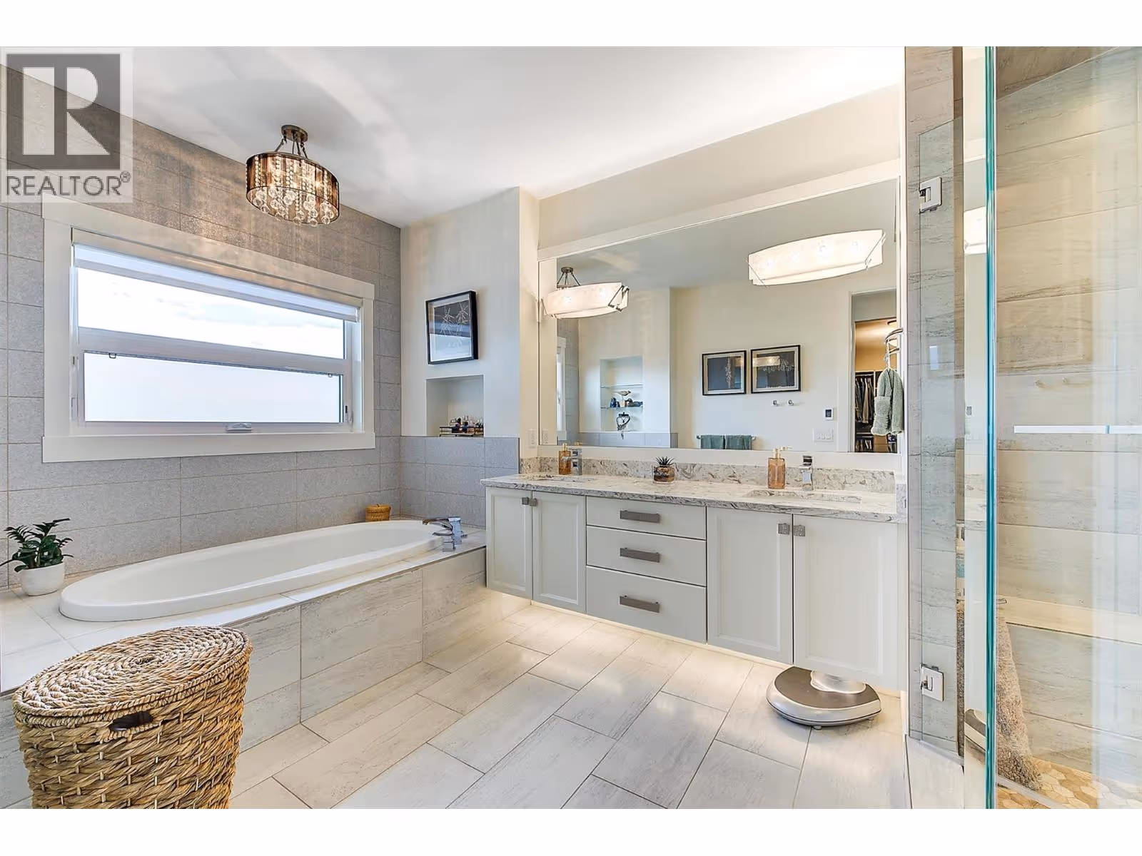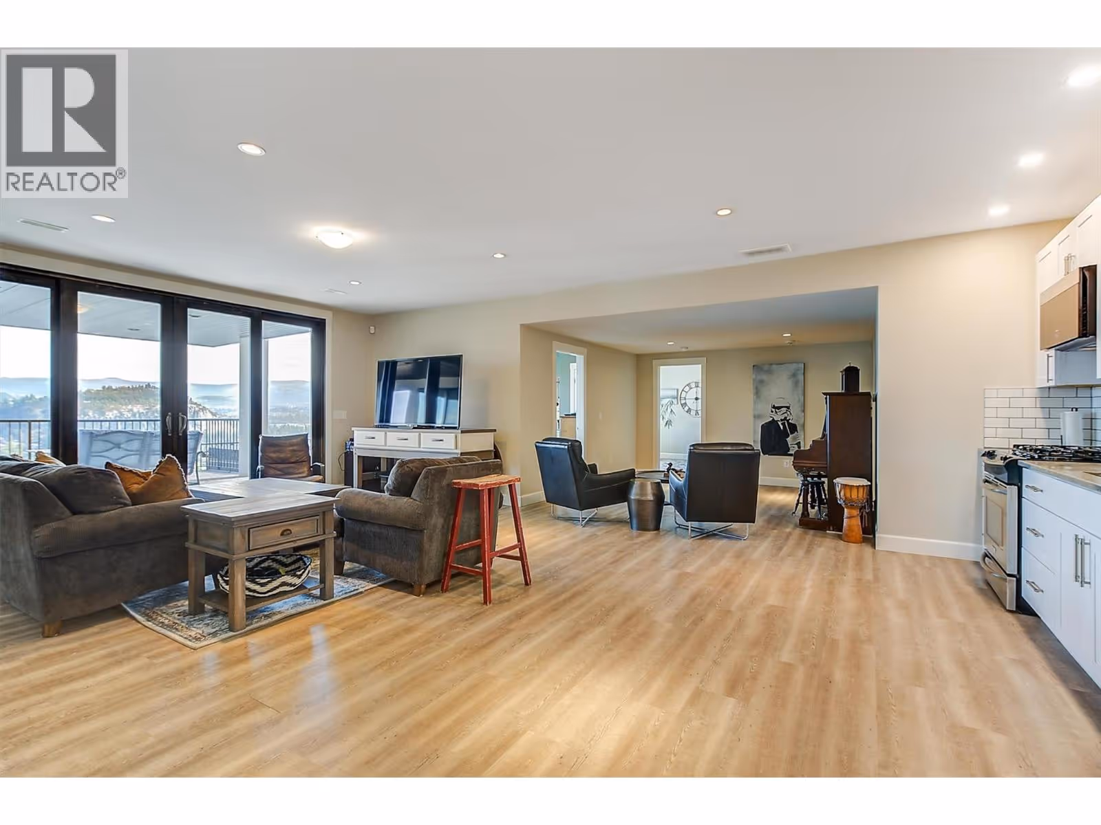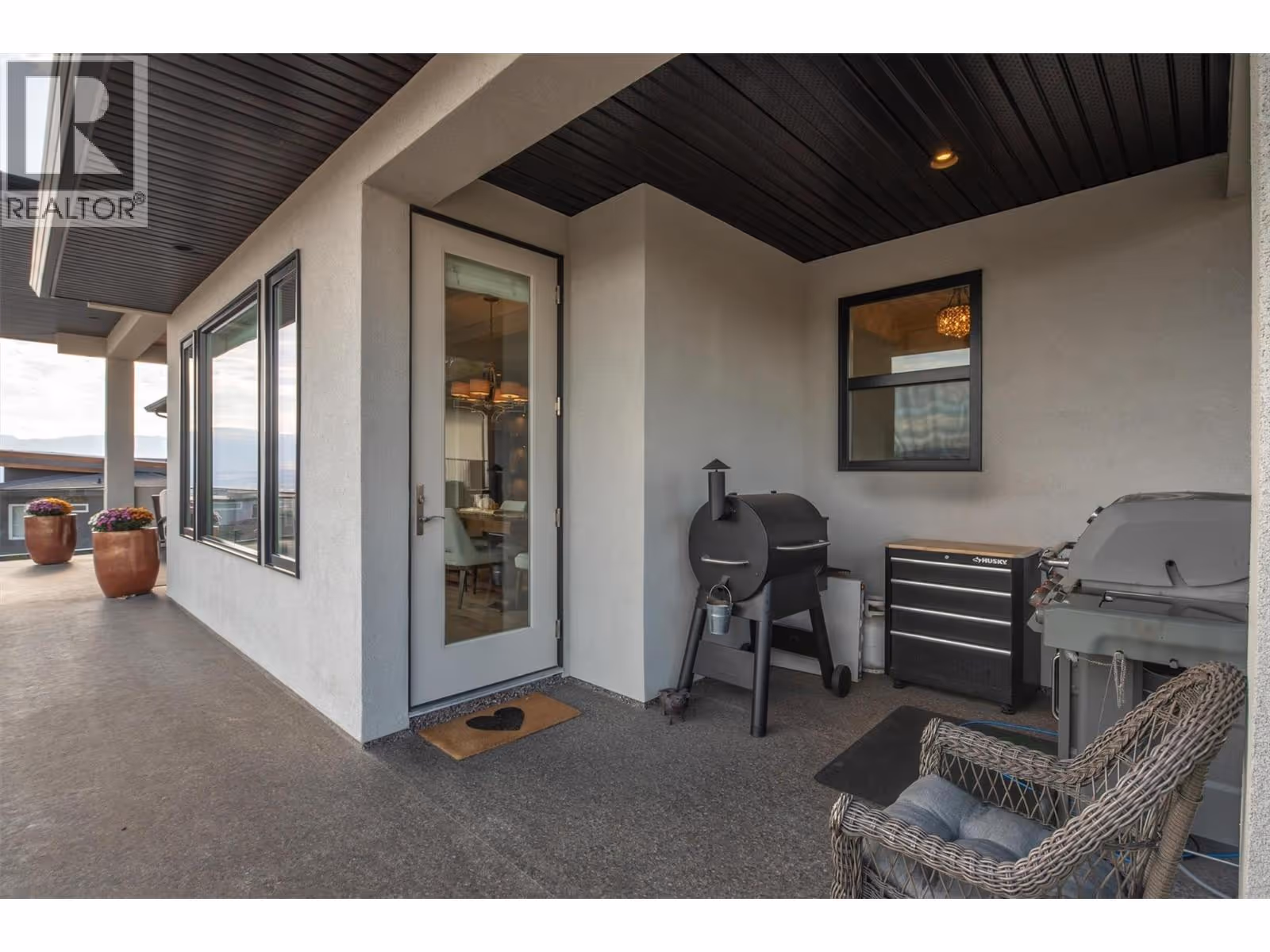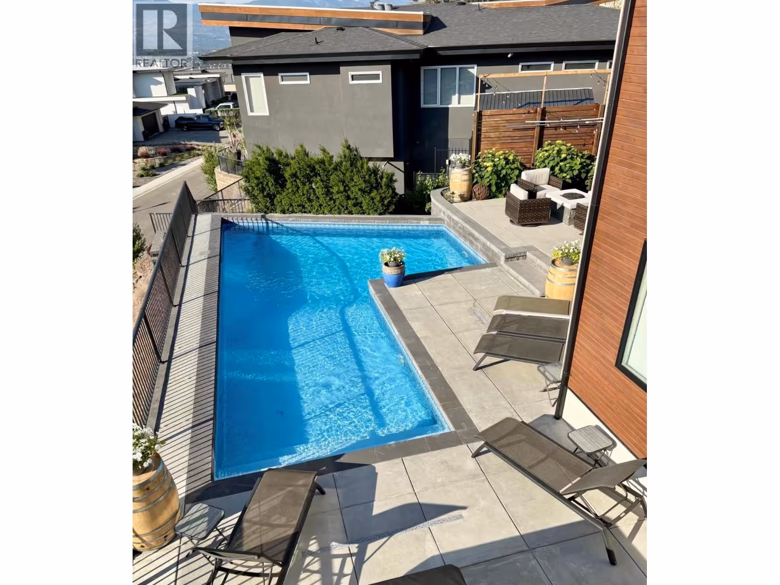 Experience elevated living in this beautifully crafted 5bdrm Rancher-style home with a walkout lower level, steps from Knox Mountain. Located in the prestigious Highpointe neighbourhood, this residence embodies the Okanagan carefree lifestyle featuring breathtaking valley, mountain & city views and resort style living. The expansive main level showcases soaring ceilings, spacious foyer & great room featuring a statement fireplace, built-in millwork and wall-to-wall windows flooding the space with the spectacular views. Enjoy a chef’s kitchen w/premium appl., granite counters, large sit-up island, beverage bar, pantry a& built-in desk. The dining area w/seating for 8-10 is highlighted by beautiful wood-beam ceiling detail & opens to a covered patio overlooking the valley. The luxe primary suite features a walk-in closet & a spa-inspired ensuite w/heated floors, soaker tub & custom tile step-in shower. An additional bdrm with cheater-ensuite +laundry completes the main level. The lower level includes a summer kitchen, large living area, 3 bdrms, gym & additional laundry - ideal for guests, family/suite potential. Fall in love w/ the outdoor living area - a resort inspired L-shaped pool with new concrete decking, builtin fire tble, new hot tub & manicured landscaping. There's even a gated area for your pup! Bonus: the oversized dbl gar with suspended slab & room below + boat parking! Designed for low-maintenance living, this residence perfectly blends comfort, luxury & lifestyle (id:62999)