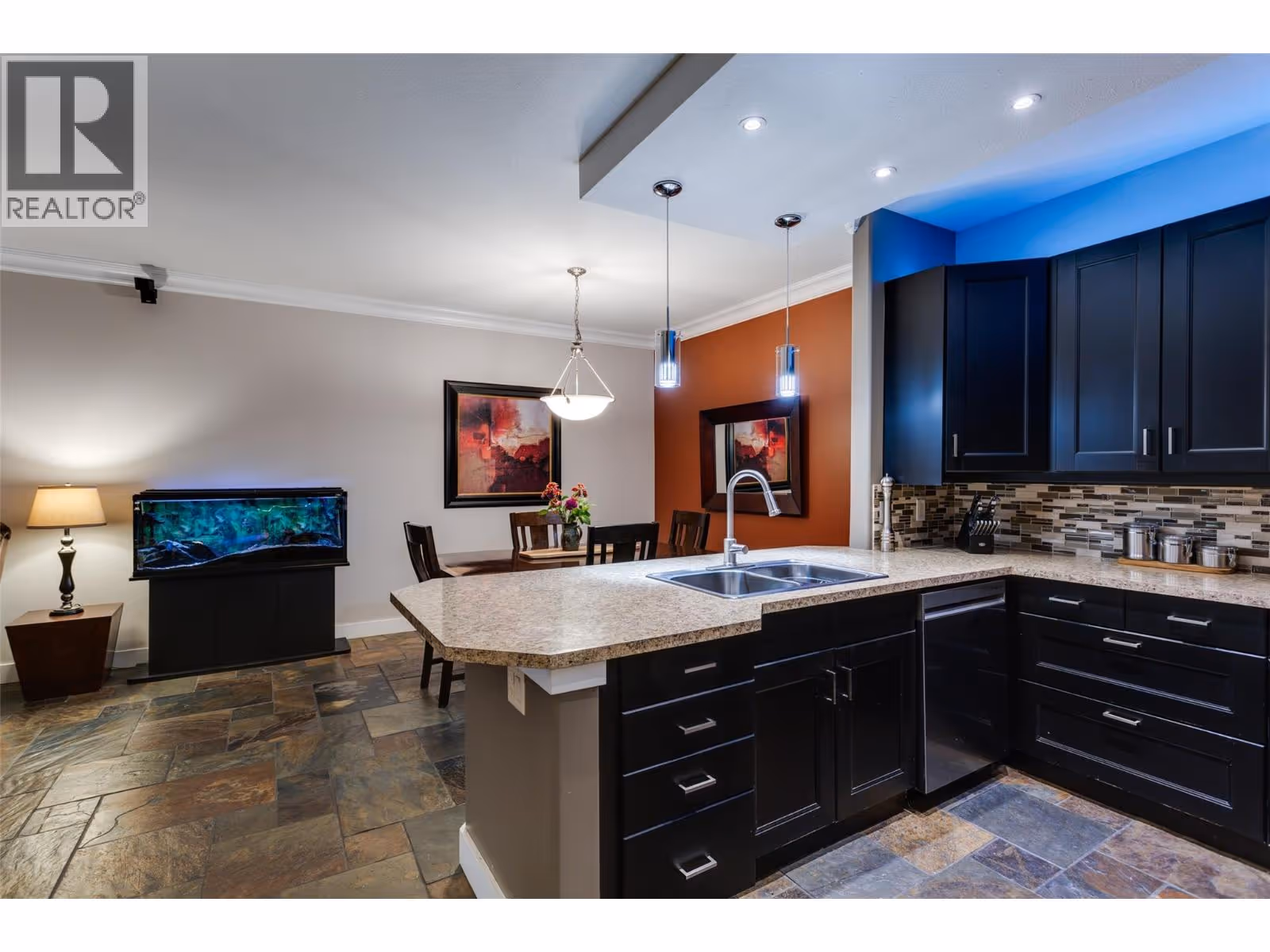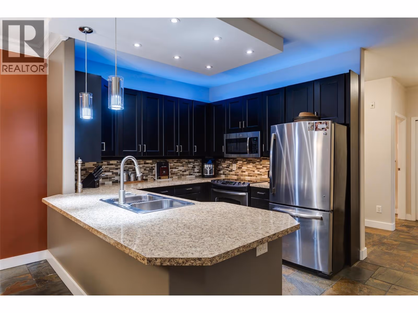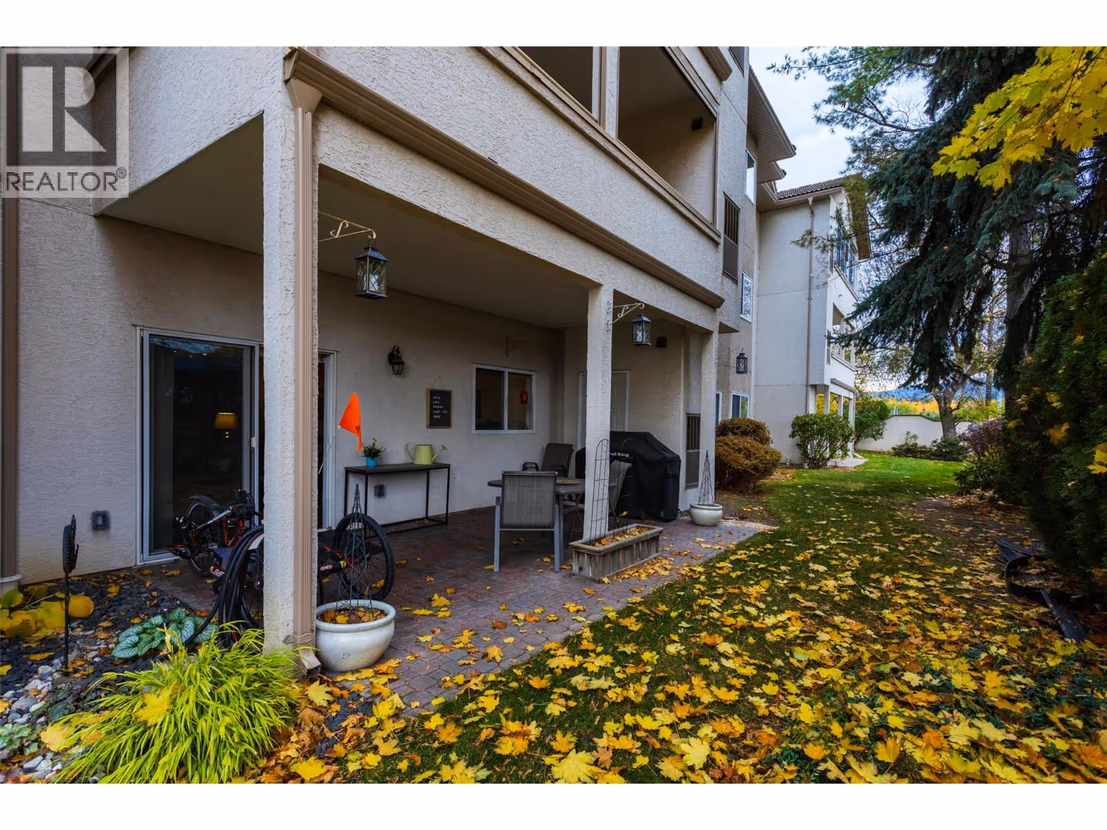 Resort-Style Ground Floor Apartment with Expansive Private Patio Welcome to The Arboretum, a sought-after, gated community surrounded by lush greenery and a tranquil natural setting. This immaculate 2-bed, 2-bath ground-floor apartment blends comfort, style, & convenience in one perfect package. Designed with easy, barrier-free access in mind, this home offers an open-concept layout featuring elegant slate flooring, a cozy gas fireplace, & a spacious kitchen with S/S appliances, built-in vacuum, and in-suite laundry, C/A. Step outside to your expansive private patio with a gas hookup, perfect for entertaining or relaxing. The patio offers direct, step-free access to the greenspace, making it ideal for those with mobility considerations and/or an active lifestyle. Enjoy resort-style amenities, saltwater pool, hot tub, fully equipped fitness center, guest suite, social lounge with pool table, meeting room with kitchen, perfect for gatherings. This pet-friendly complex allows one dog or cat (up to 40 cm at the shoulder) and includes secure underground parking. Conveniently located just minutes from Orchard Park Mall, Costco, Winners, public transit, and local recreation. Experience the best of resort-style living with everyday convenience, all within 10 minutes of downtown Kelowna, beaches, and the hospital, and only 45 minutes to Big White. Don’t miss this rare opportunity to own a stylish, ground-level home with easy access in one of Kelowna’s most desirable communities. (id:62999)