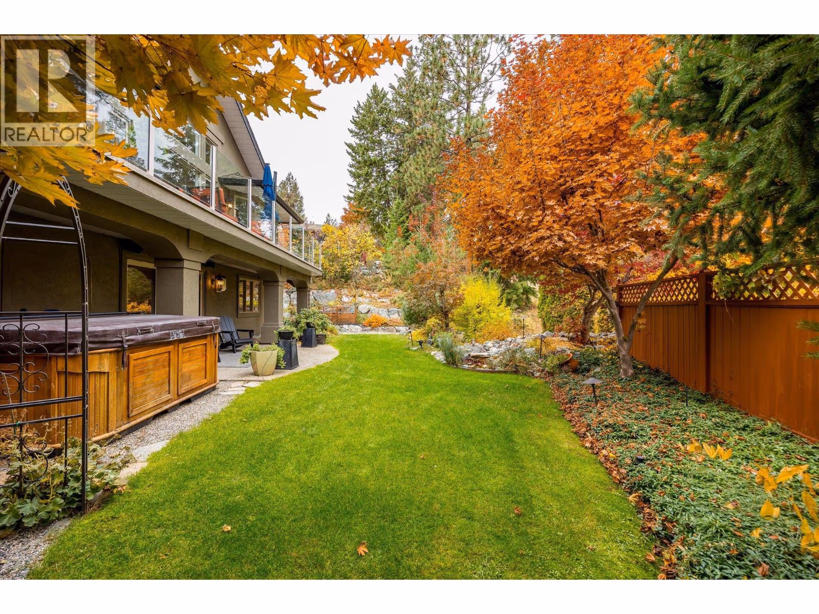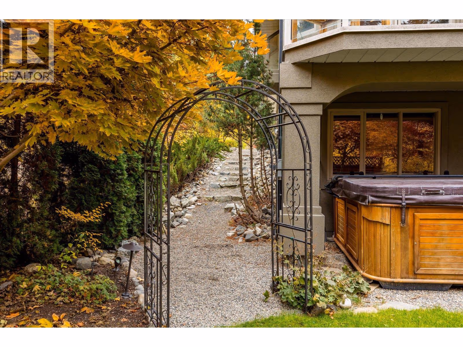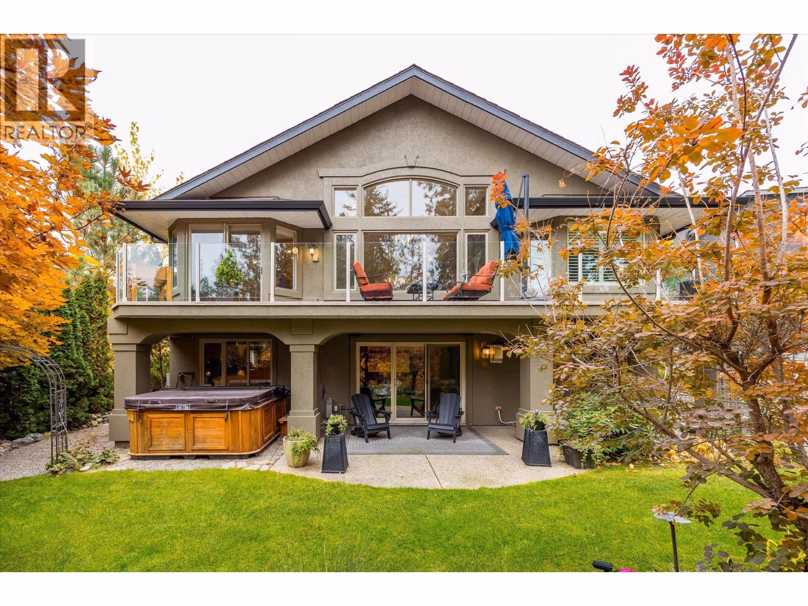 Welcome to an exceptional residence in the prestigious Village at Gallagher’s Canyon ~ Kelowna’s premier golf-side community for those seeking comfort, connection, and an elevated lifestyle. Backing directly onto the fairways with peaceful views, this home balances privacy and serenity with easy access to exceptional amenities. Ideal for retired or working professionals, the thoughtful layout supports “lock-and-leave” convenience while offering luxurious space to host visiting family. Everything you need is on the main level: a well-appointed primary suite with spa-inspired ensuite, convenient laundry, and a second bedroom with its own ensuite, perfect for overnight guests or use as a remote workspace. The gourmet kitchen makes entertaining easy with custom-panelled appliances, additional drawer fridge spaces, and a second dishwasher in the spacious pantry. Downstairs, visitors will enjoy a generous bedroom, full bathroom, cozy theatre lounge, summer kitchen with extra fridge, and a hobby/craft room for creative pursuits or storage flexibility. Outside, relax in the hot tub overlooking manicured greens, complemented by a tranquil waterfall pond feature. The yard bursts with colourful blooms in spring and summer, adding beautiful seasonal beauty. Residents here enjoy world-class amenities: two golf courses (one championship!), clubhouse restaurant, golf shop, indoor pool, fitness centre, tennis and sport courts, and social clubs. We encourage you to come have a look today! (id:62999)