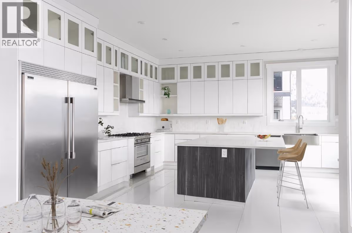 Modern 6-bed, 6-bath home suited home in Black Mountain's private Mine Hill Lane! The main floor of this remarkable home features an airy open-concept layout, grand vaulted ceilings, large picture windows featuring stunning views sweeping East of Kirschner mountain to Okanagan Lake, cozy fireplace, elegant kitchen , large island with bar seating, beautiful quartz counters, tons of cabinets, spacious master suite abundance of south exposure windows with doors leading to the and wrap around patio, spa-like ensuite with glass shower, free-standing soaker tub, well-appointed main bathroom, office and extra bedrooms. 3-car garage & access to the large covered patio with glass railing to showcase those remarkable South and West facing views. The self-contained, legal lower-level suite is every bit as stunning as the main floors featuring 1-bedroom, 1-bathroom, laundry, access to yard & covered patio. There is also an additional 2-bedroom nanny suite downstairs for multi-generational living! (id:62999)