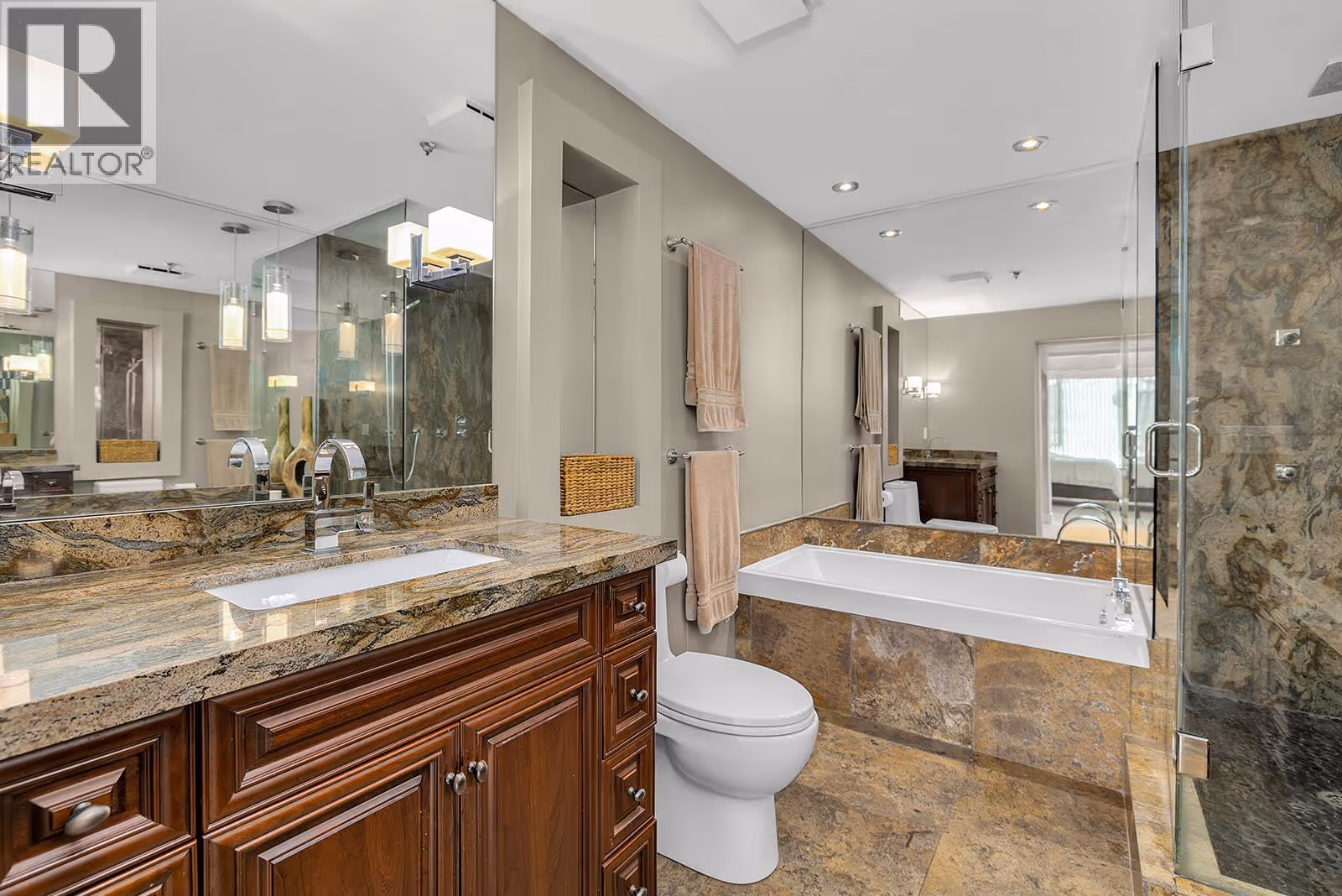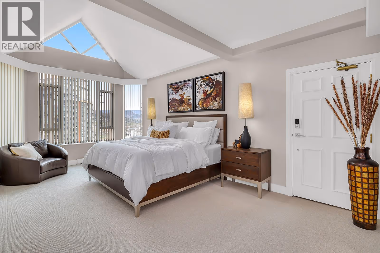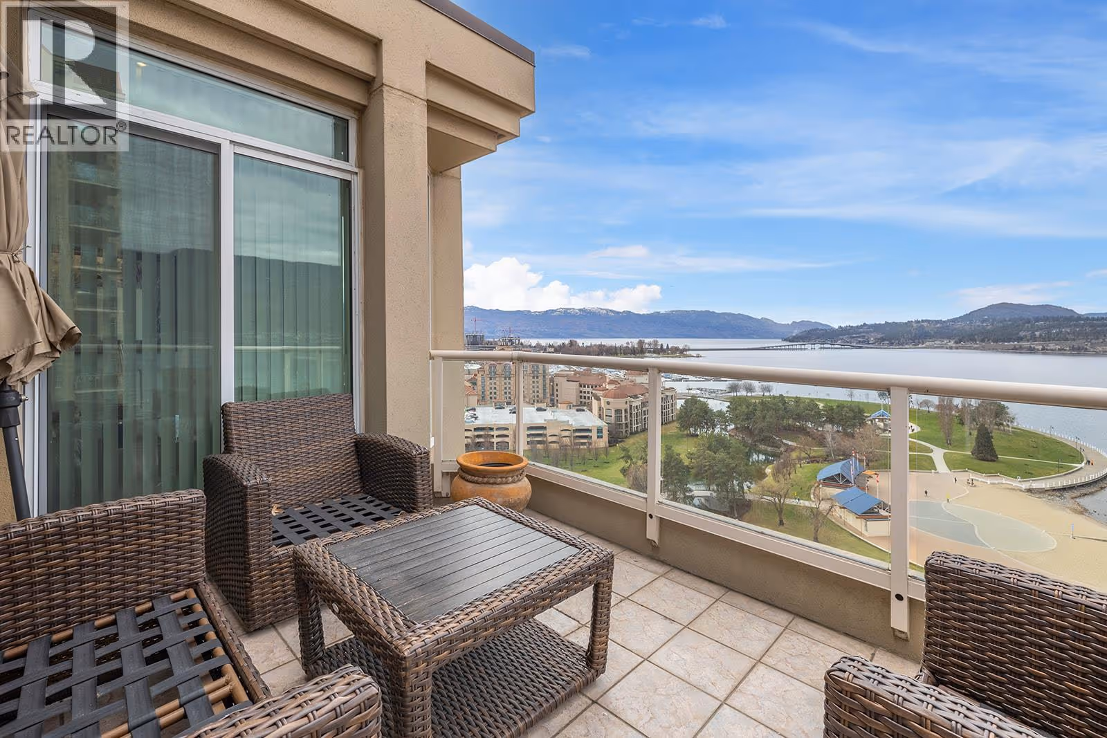 Where Luxury Meets the Lake: Welcome to one of Kelowna’s most iconic Lakefront Penthouse Residence’s. Spanning 3,000 sq. ft.,this meticulously renovated residence soars above the city, showcasing sweeping panoramic views of Okanagan Lake, the bridge, downtown skyline, and the beach below. Elegantly updated throughout, highlights include hand-crafted medieval walnut doors, refreshed Hunter Douglas window coverings, and a chef-inspired gourmet kitchen with premium granite countertops and state-of-the-art appliances. The vaulted living room, featuring a contemporary gas fireplace, opens onto one of three private decks, ideal for enjoying morning coffee at sunrise or a glass of Okanagan wine at sunset, selected from your temperature controlled wine library. The expansive primary suite, crowned with its own vaulted ceiling, flows seamlessly from a walk-through closet with custom built-ins to a spa-inspired ensuite complete with granite countertops, a grand floor-to-ceiling granite walk-in shower, and heated floors. Additional features include two secure underground parking stalls, storage, and access to premium amenities such as two pools, a steam room, and a fitness centre. There's even opportunity for boat moorage in the Lagoon. Perfectly positioned in the heart of downtown Kelowna, this residence offers unparalleled walkability to world-class dining, shopping, galleries, theatres, the arena and the beach. (id:62999)