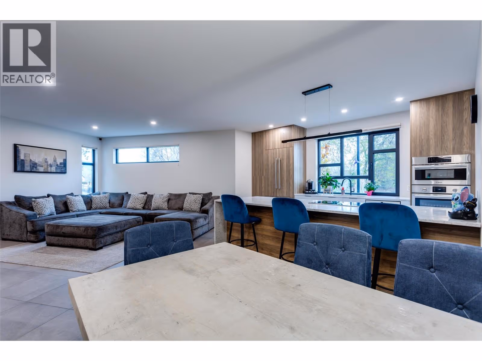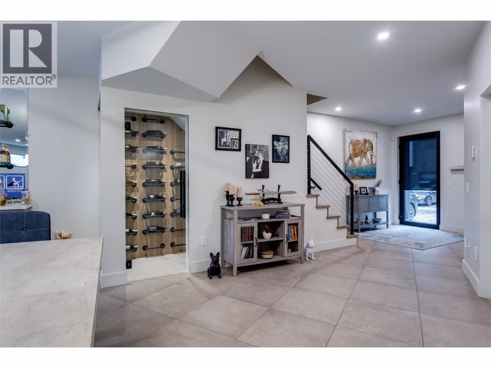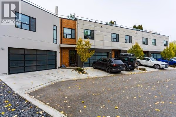 Live the Lower Mission lifestyle in this luxury end-unit townhome—an elegant blend of design, comfort, and location. Just steps to beaches, wineries, highly regarded schools, groceries, and vibrant restaurants, it’s perfectly placed for daily convenience and Okanagan play. Inside, a bright open-concept main level with 9-ft ceilings centers on a chef-inspired kitchen with Bosch appliances; wall oven, cabinet-panel fridge/freezer, quartz counters, waterfall island, wine cooler, and floor-to-ceiling cabinetry, plus a wine cellar & bar. The main floor adds partially heated tile flooring, a striking clay fireplace, custom built-ins, and modern cable-rail stairs. A dedicated office complements 3 spacious bedrooms and 3 bathrooms. Upstairs, the primary suite pampers with a spa-style 5-piece ensuite—floating double vanity, soaker tub, custom tiled shower, heated tile floors, and backlit mirrors with built-in speakers. Practical perks abound: a generous 4-ft crawl space for storage, double garage with epoxy flooring, double driveway, and a fully furnished 715 sq ft rooftop patio—perfect for entertaining under the Okanagan sun. This home is a rare opportunity to enjoy high-end living in one of Kelowna’s most sought-after neighborhoods. Over $200,000 in upgrades (id:62999)