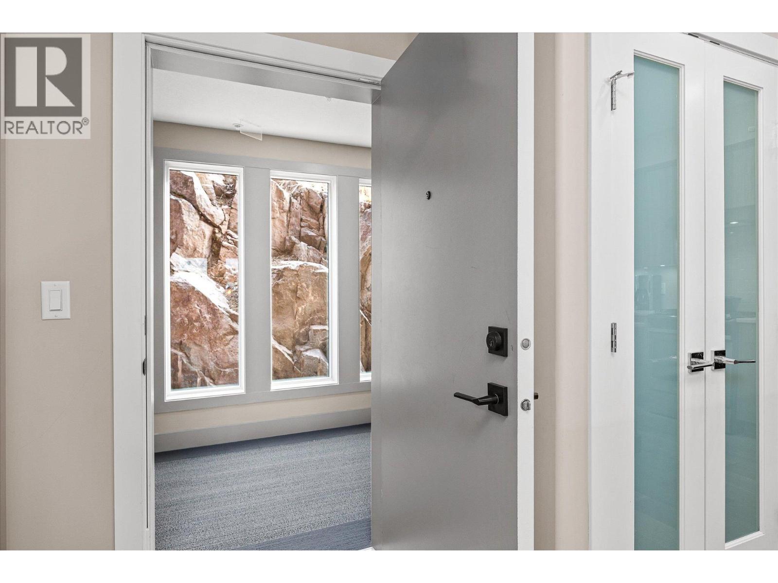 Welcome to Granite at McKinley Beach, a lakeside community built by Acorn Homes. This beautifully appointed 2-bedroom, 2-bath condo offers thoughtful design with bedrooms on opposite sides for privacy and comfort. Enjoy a bright, open-concept layout with engineered hardwood floors, quartz countertops, soft-close cabinetry, and a gas stove. Both bathrooms feature in-floor heating, and the home includes central air and hot water on demand. Step onto your spacious, continuous deck, complete with an estimated $20K retractable awning, gas hook-up, and wiring for a hot tub. This balcony is perfect for summer evenings overlooking the Okanagan Lake. Additional highlights include a large storage room, a heated utility room on the deck, and an underground parking stall. As part of McKinley Beach, residents enjoy lake access, hiking and biking trails, a private marina, gym, community garden, pickleball, basketball, and the community centre, all for a membership fee. Only 20 minutes to downtown Kelowna and 11 minutes to UBCO and the airport, this is lakeside living with everyday convenience. (id:62999)