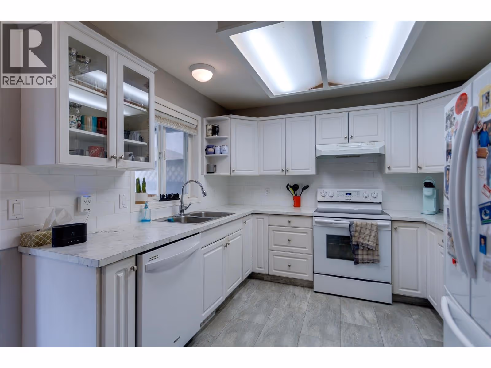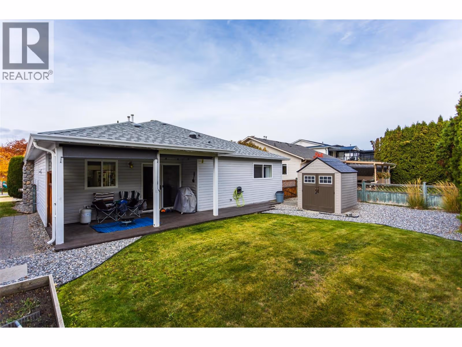 Welcome to the desirable Country Rhodes family community!!!! This spacious rancher features a bright kitchen with nook, open flow dining and living room areas great for entertaining, large windows which bring in lots of natural light. Two larger bedrooms, laundry room and two bathrooms... all on one main floor living!! Sliding glass doors welcome you to your private patio area with fully fenced landscaped back yard. Room for garden area and storage shed. Central air, gas fireplace, covered front porch overlooking the large park area, 4ft full basement crawl space, gutters, roof, appliances, garage door, washer/dryer, water softener...you name it!!.. and double garage. Amenities include inground outdoor pool, large park, playground, clubhouse with kitchen great for those large gatherings. RV/boat parking based on availability. Just minutes to Kelowna International Airport, UBCO, golf courses, Kangaroo farm, shopping, schools and so much more! No age restrictions. 2 pets (dogs or cats) per household - no size restrictions. A must see!! (id:62999)