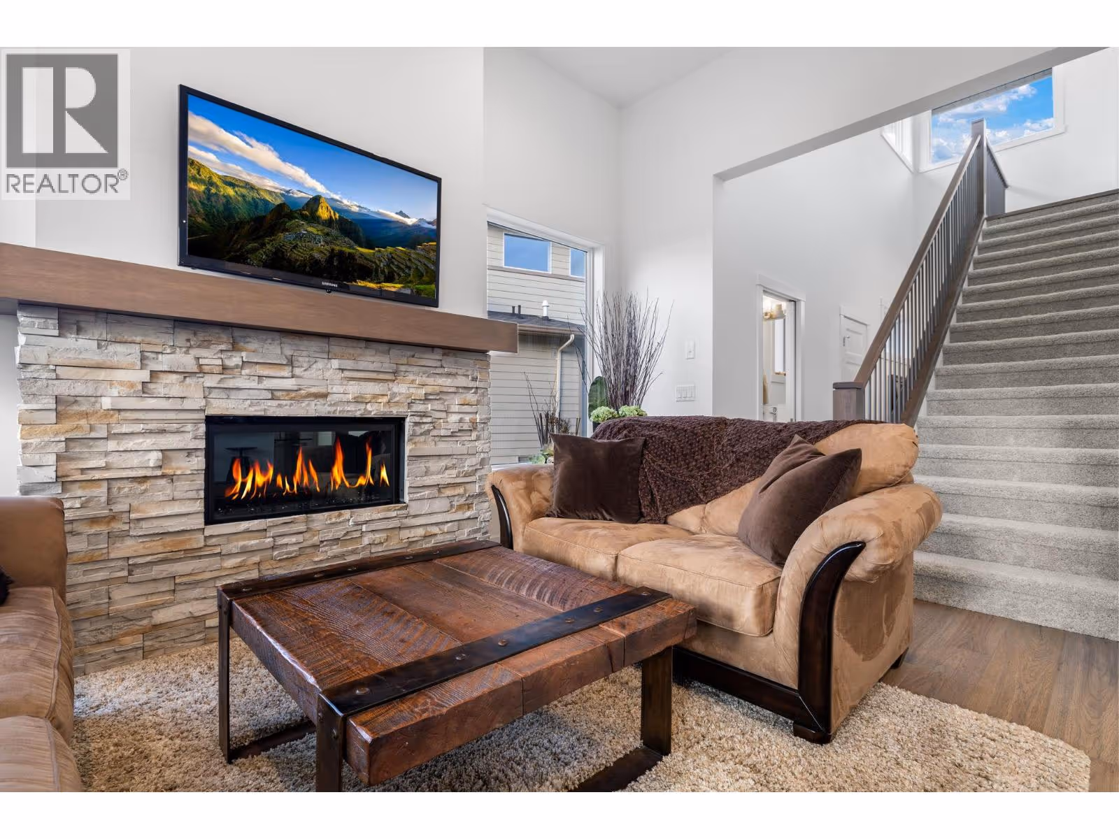 New Move-in Ready Golf Course Home fully equipped. Tower Ranch Golf Club is known of its sense of community, scenic and picturesque 18 Holes, Club House, Restaurant and Gym. Vineyard and Orchard views, from every room and minutes to the airport and shopping areas of Kelowna. The main floor entry, kitchen, living, dining are flooded with light and offer unobstructed views with protected space to ensure longevity. Lower level is finished with F/P, TV area, two flex space/bedrooms and a bar area ready for sink, dishwasher and wine fridge. The magic of this home is the top floor, private level primary suite with picture windows to greenspace on one side, and an ample rooftop balcony with vineyard golf and lake view on the other. Property is Leased from Parkridge Communities, Strata Fee, Membership Fee and TRCA club fee paid monthly. Access to gym & members lounge as well as Tower Ranch Club House and restaurant. Pets restricted to two per household, must be registered and approved by Strata. (id:62999)