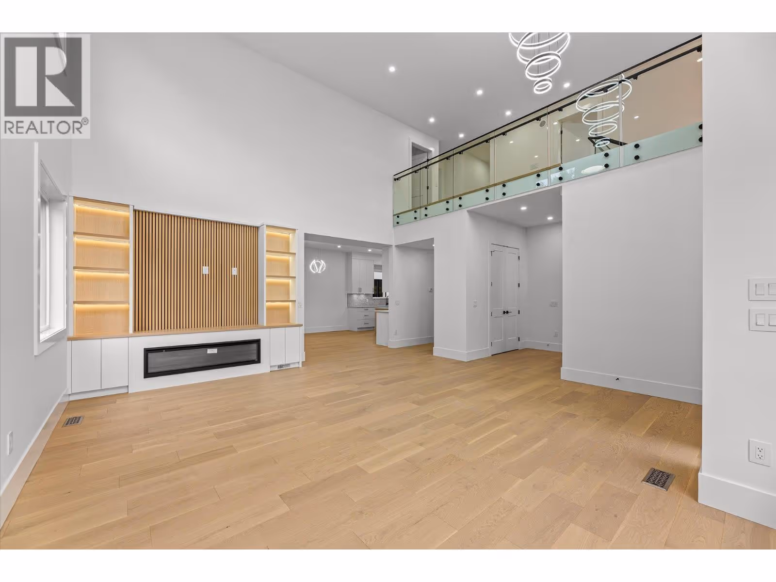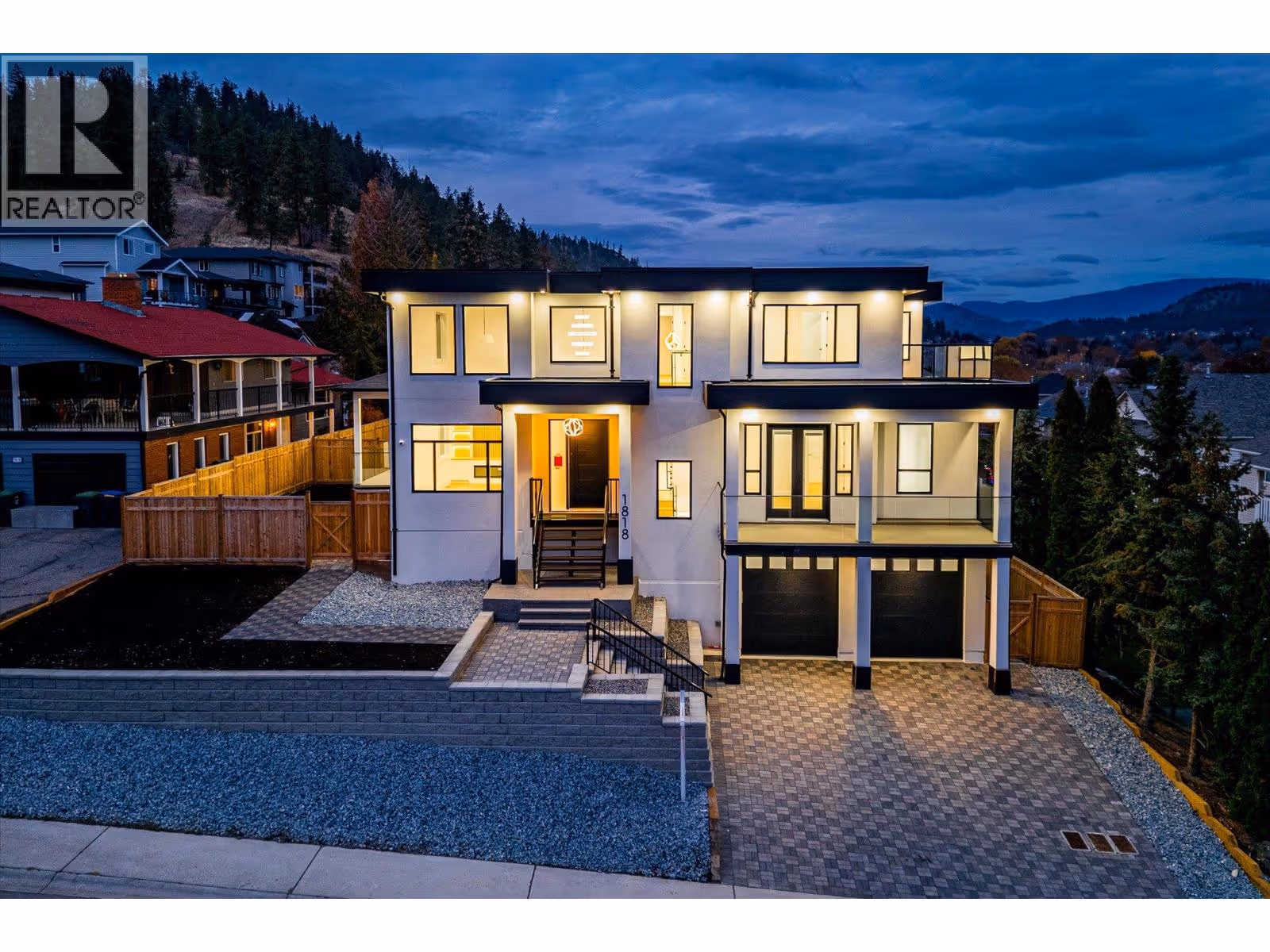 RARELY DO YOU SEE BRAND-NEW, STUNNING, MODERN ARCHITECTURE, FAMILY HOME OFFERED FOR SALE IN NORTH GLENMORE! This home is perfect, 8 bedrooms and 7 bathrooms, including a 2-bedroom LEGAL SUITE for rental revenue. The kitchen is a dream and features an ENORMOUS island including Fisher Paykel luxury appliance package, custom high gloss soft close cabinetry, ITALIAN quartz countertops, and a beautiful butler's spice kitchen with KitchenAid appliances. 19ft high ceilings continue throughout the entry and the family room area with 60” linear electric fireplace. Grab a glass of wine or coffee, enjoy the covered deck off the main floor primary bedroom, complete with 3pc ensuite or additional covered deck off the living room. Main floor also includes laundry room, and an office. The second floor primary bedroom is a peaceful retreat offering, large custom walk-in closet, ensuite, dual sinks, free-standing tub, and 6 jet shower. 2 additional bedrooms with shared ensuite, plus a 3rd bedroom with it's own ensuite and large balcony for sweeping valley/mountain views on the 2nd level. The lower-level 2-bedroom suite has private laundry, quartz counters, and full appliance package. The lower level also features a wet bar and additional bedroom and full bathroom for the main house. Plenty of parking with a 2-car garage and massive driveway. Other highlights include central AC, wired for 4 security cameras, custom wood soffits, riobel plumbing fixtures, engineered HWD floors & more. (id:62999)