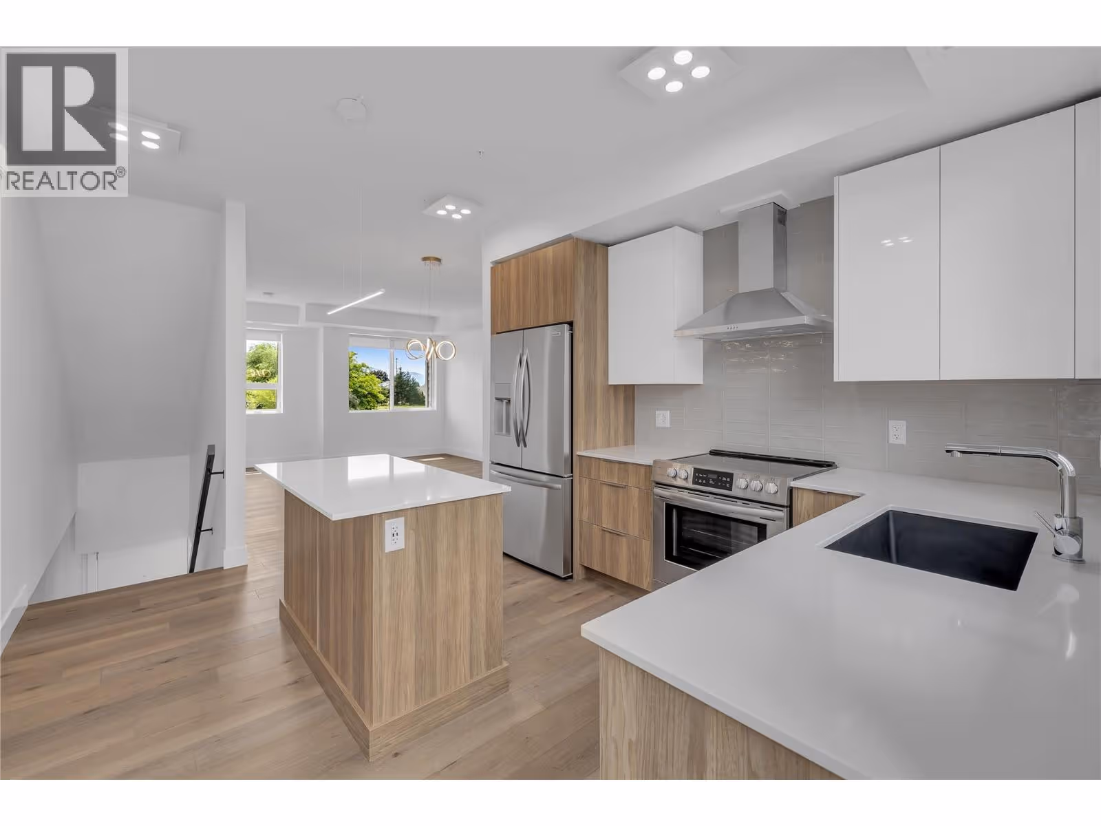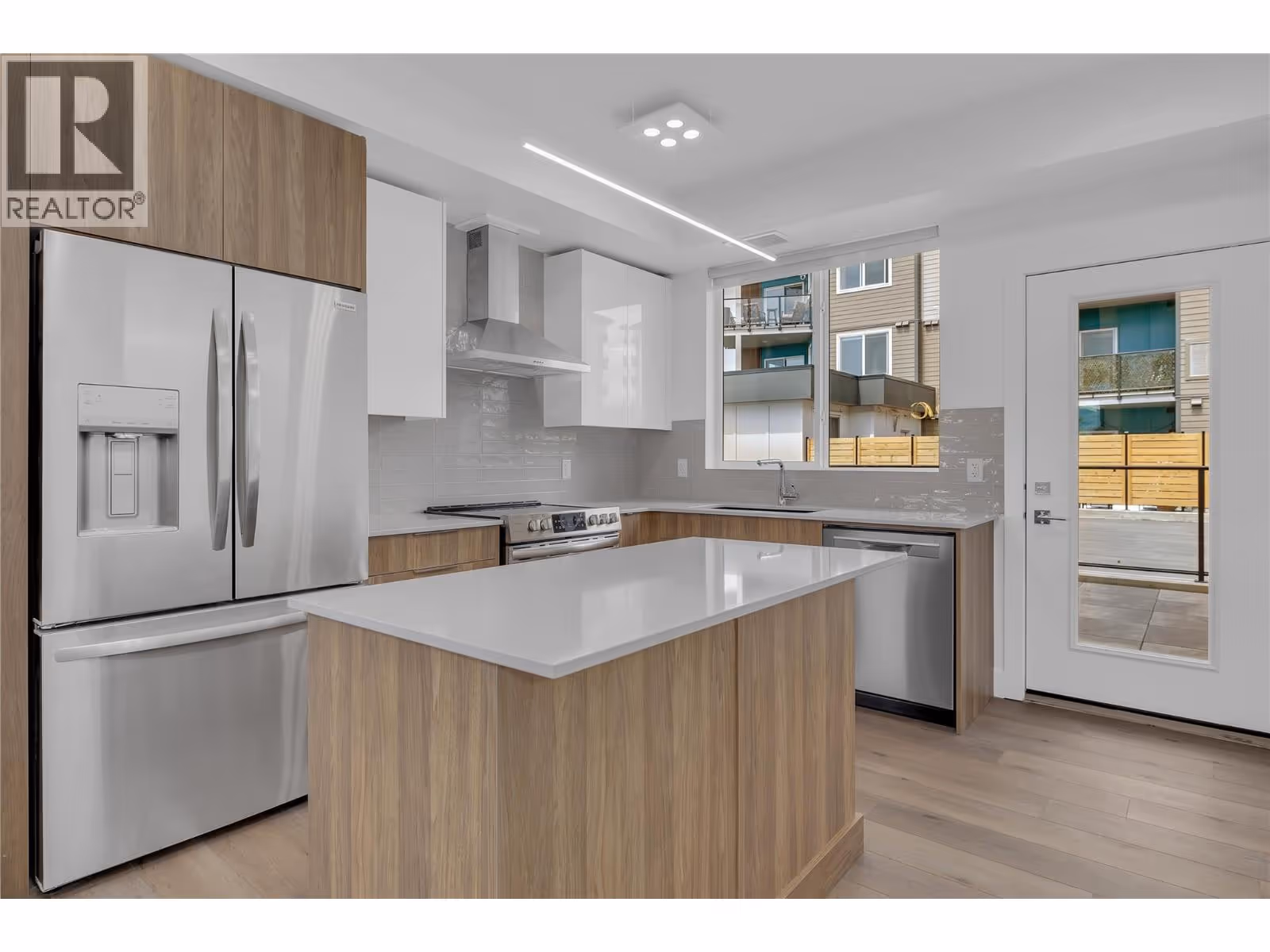 DEVELOPER PROMO NO STRATA FEES FOR 3 YEARS!! This brand new home offers 3 bedrooms, 3 bathrooms, and 1445 sq ft of functional space. A park space sits directly in front of the unit, and the lower level includes a den or office suitable for working from home. The open concept main floor connects the living, dining, and kitchen areas. The kitchen is finished with quartz countertops and modern cabinetry, and the adjoining patio includes a natural gas hookup. Large windows bring in plenty of natural light. Durable luxury vinyl flooring runs through the main areas and 9 foot ceilings create a spacious feel. Green Square includes garden plots, a fitness room, rooftop patio, dog wash, and bike storage. Close by are wineries, restaurants, a park, shopping, and Gyro Beach. GST is applicable, with a possible exemption for first time buyers. (id:62999)
