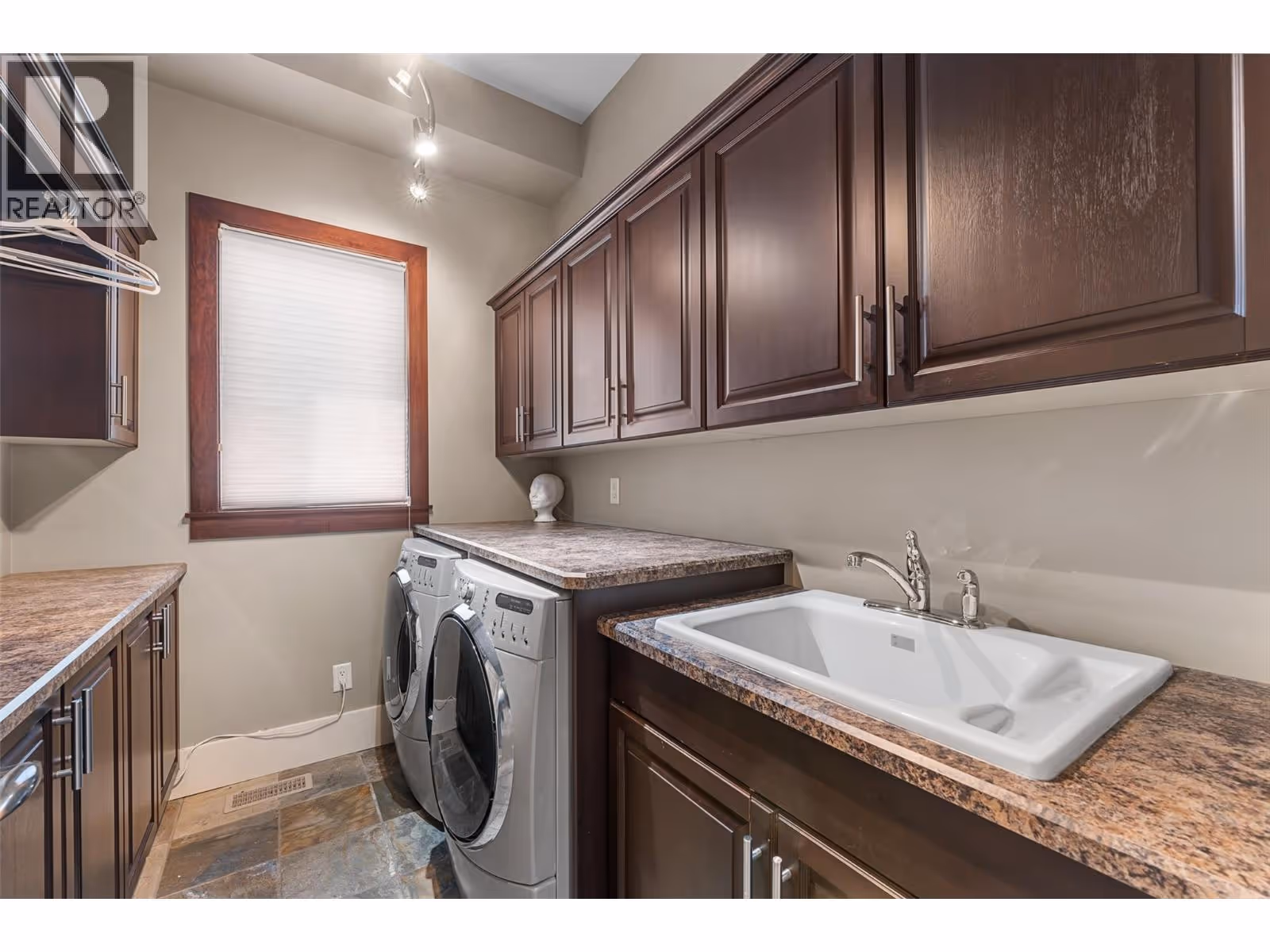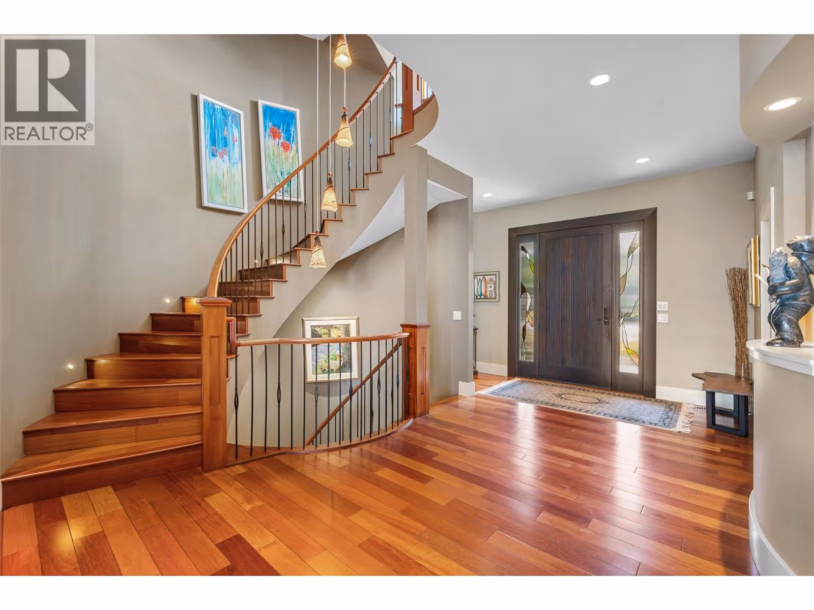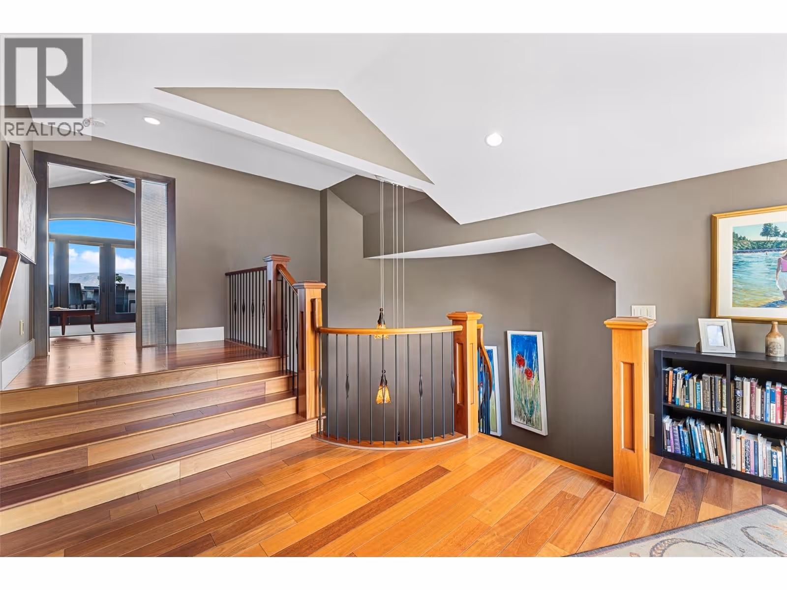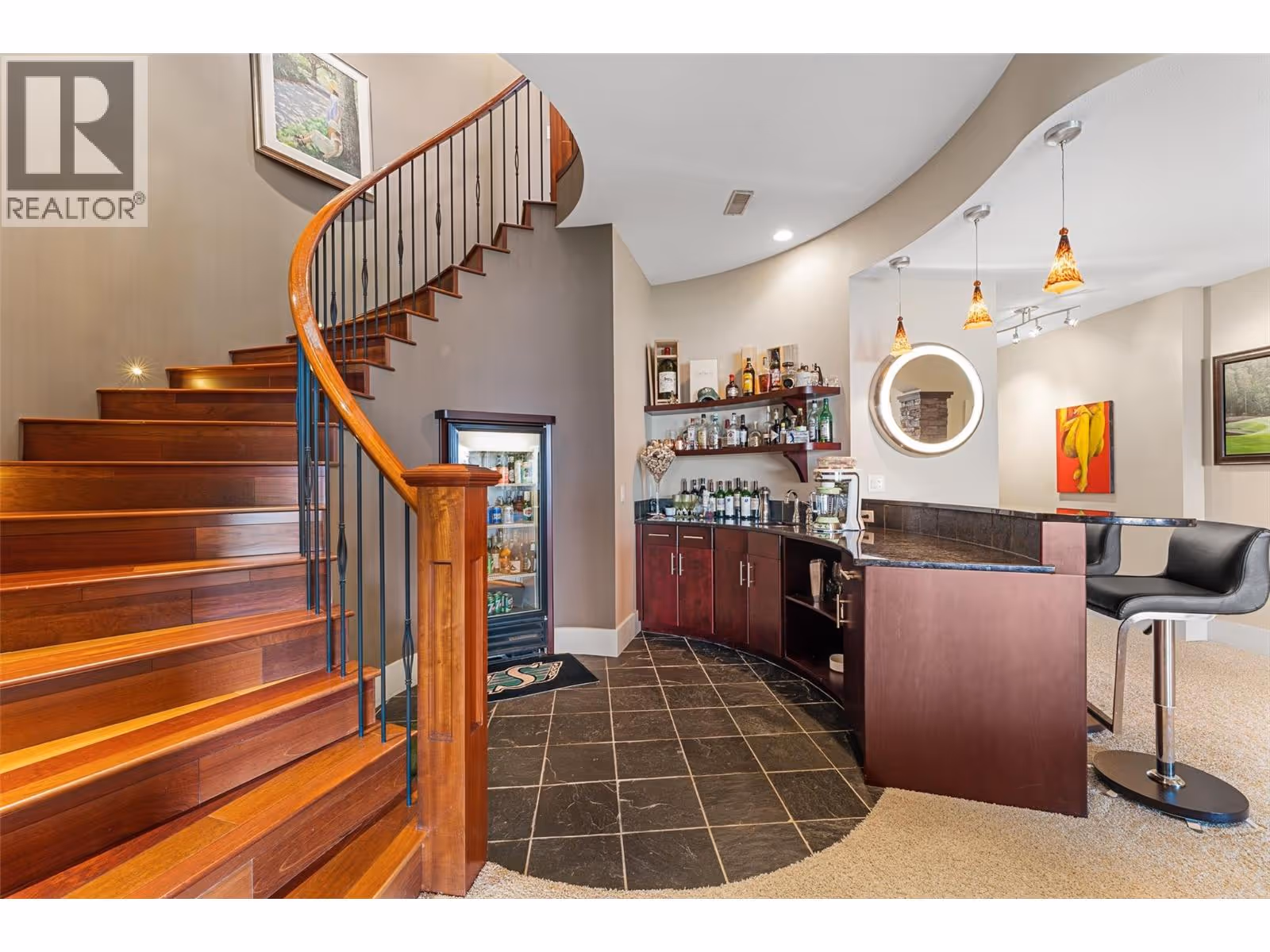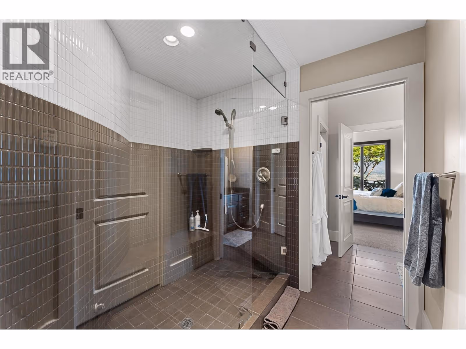 Unrivalled lake views stretch from Bear Creek to Peachland in this breathtaking Upper Mission residence. Showcasing over 5,500 sq. ft. of refined quality construction, this 5-bedroom, 5-bathroom estate is a masterclass in design, comfort, and craftsmanship and boasts lake views from all 3 levels. The main level offers effortless living with a grand great room, a chef-inspired kitchen with Thermador appliances and island seating for six, and a deluxe primary retreat featuring a spa-inspired ensuite with steam shower and private deck access. Automated with Control4 and designed for entertaining, enjoy the panoramic wraparound patio with fireplace above, or head to the lower level where a wet bar, theatre room, and spacious rec area await. Three additional bedrooms, each with ensuite access, open to a covered patio with a putting green, hot tub, tranquil water feature & private backyard. A vaulted loft with private balcony makes the perfect office or artist's escape. Thoughtful touches include a 4-car garage (2 deep), home-wide built-in speakers, and manicured, low-maintenance landscaping. Located only a couple mins from the new Upper Mission Shopping centre. This is lakeview living elevated—privacy, luxury, and lifestyle in perfect harmony. (id:62999)