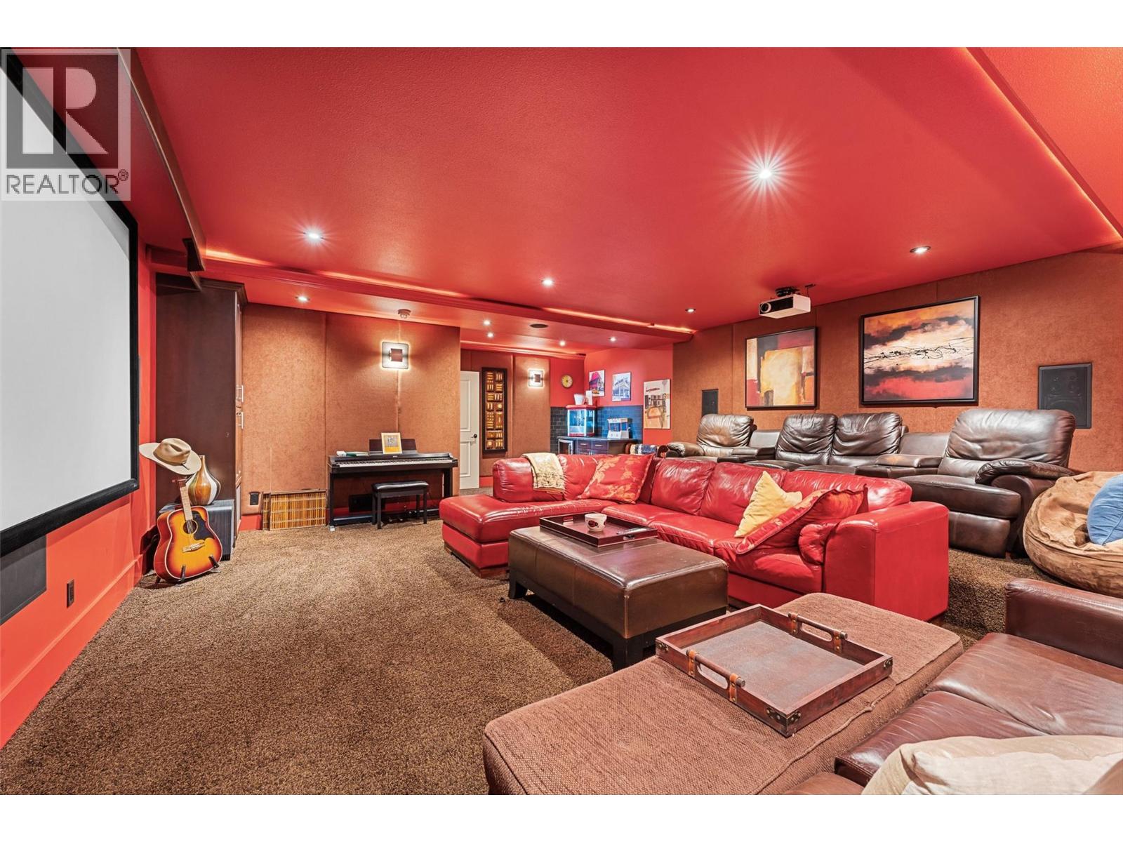 Unrivalled lake views stretch from Bear Creek to Peachland in this breathtaking Upper Mission residence. Showcasing over 5,500 sq. ft. of refined quality construction, this 5-bedroom, 5-bathroom estate is a masterclass in design, comfort, and craftsmanship and boasts lake views from all 3 levels. The main level offers effortless living with a grand great room, a chef-inspired kitchen with Thermador appliances and island seating for six, and a deluxe primary retreat featuring a spa-inspired ensuite with steam shower and private deck access. Automated with Control4 and designed for entertaining, enjoy the panoramic wraparound patio with fireplace above, or head to the lower level where a wet bar, theatre room, and spacious rec area await. Three additional bedrooms, each with ensuite access, open to a covered patio with a putting green, hot tub, tranquil water feature & private backyard. A vaulted loft with private balcony makes the perfect office or artist's escape. Thoughtful touches include a 4-car garage (2 deep), home-wide built-in speakers, and manicured, low-maintenance landscaping. Located only a couple mins from the new Upper Mission Shopping centre. This is lakeview living elevated—privacy, luxury, and lifestyle in perfect harmony. (id:62999)
