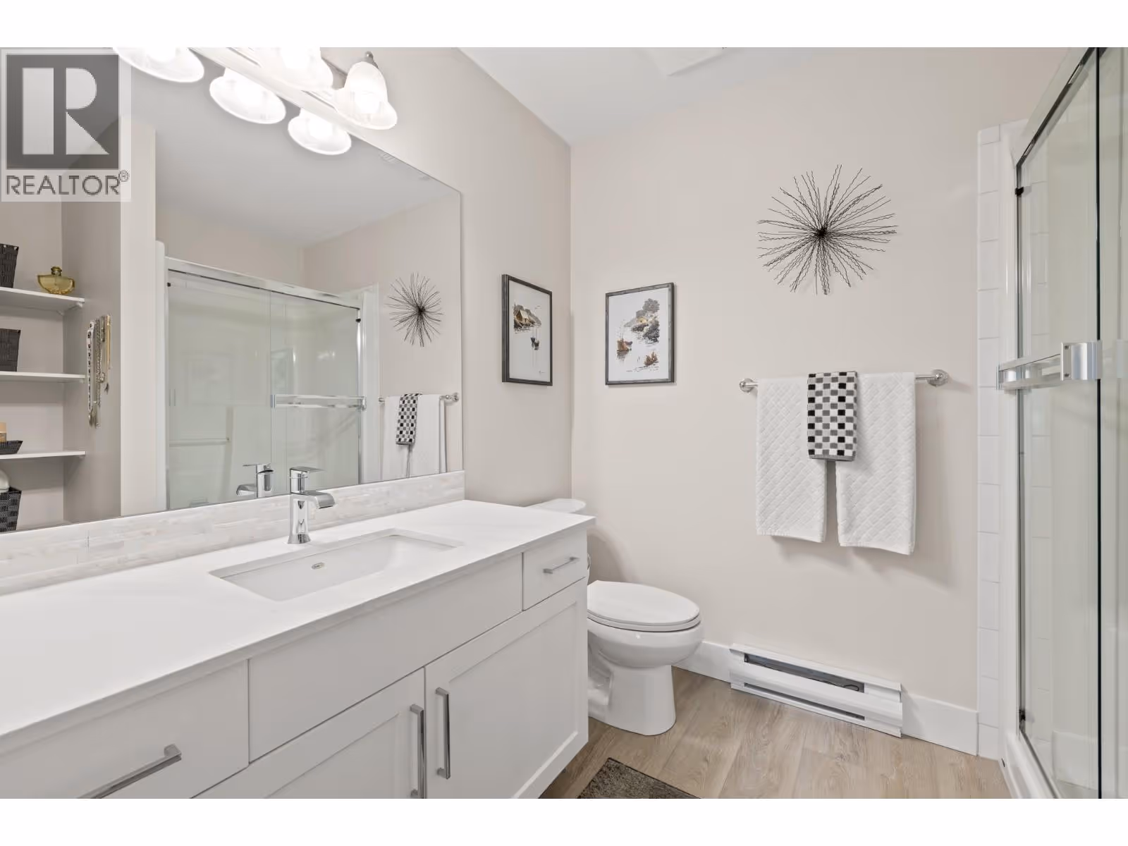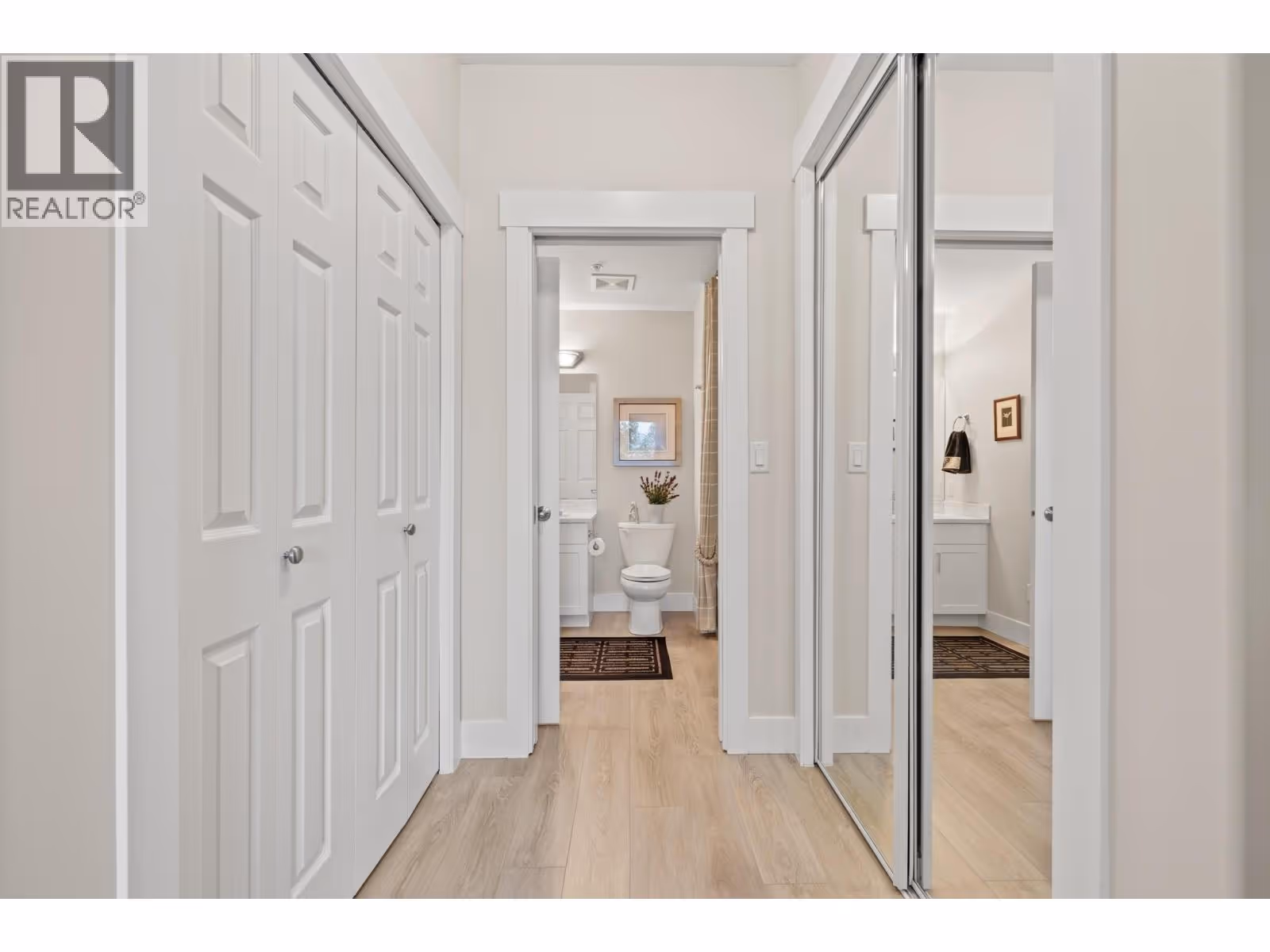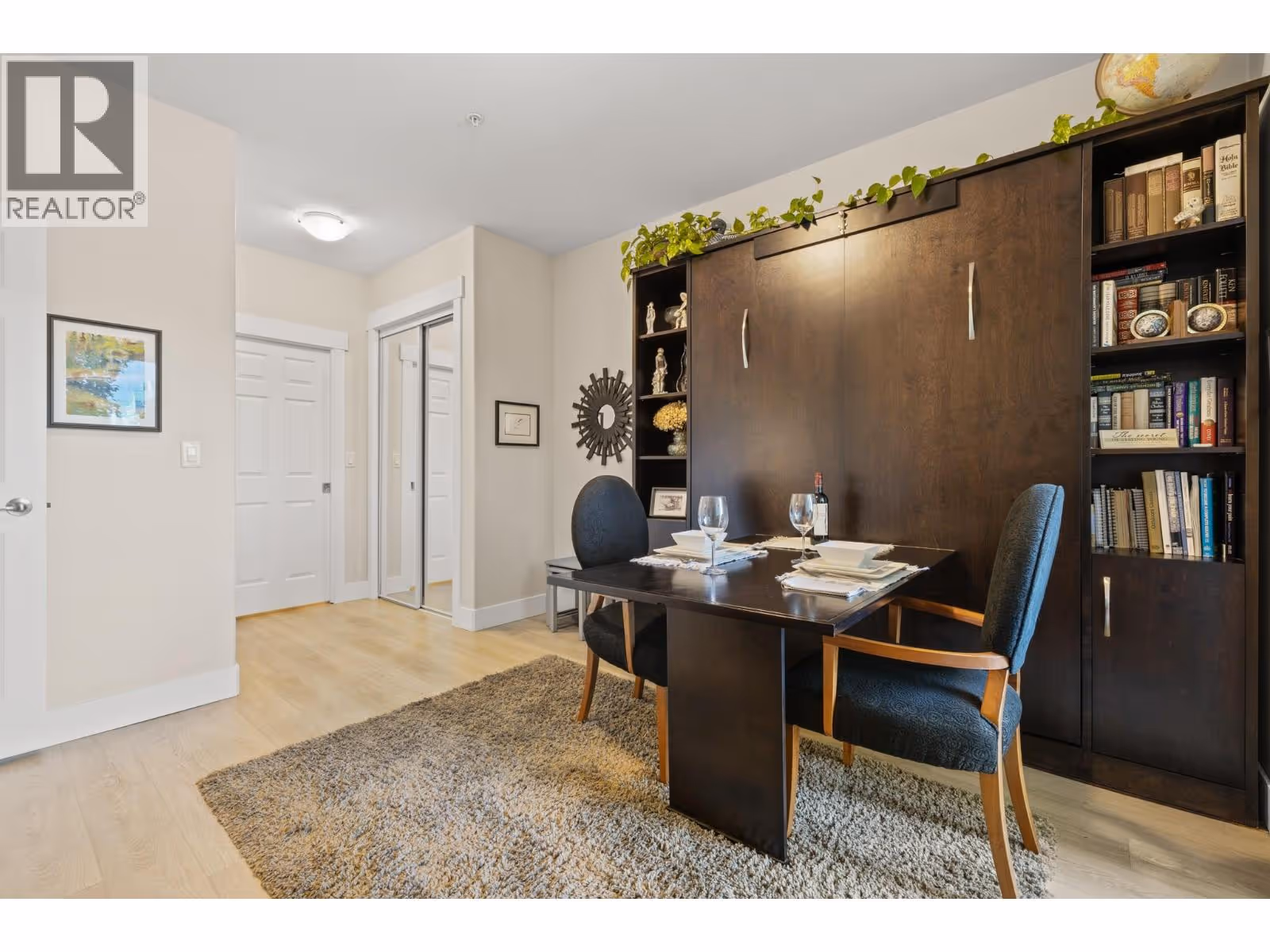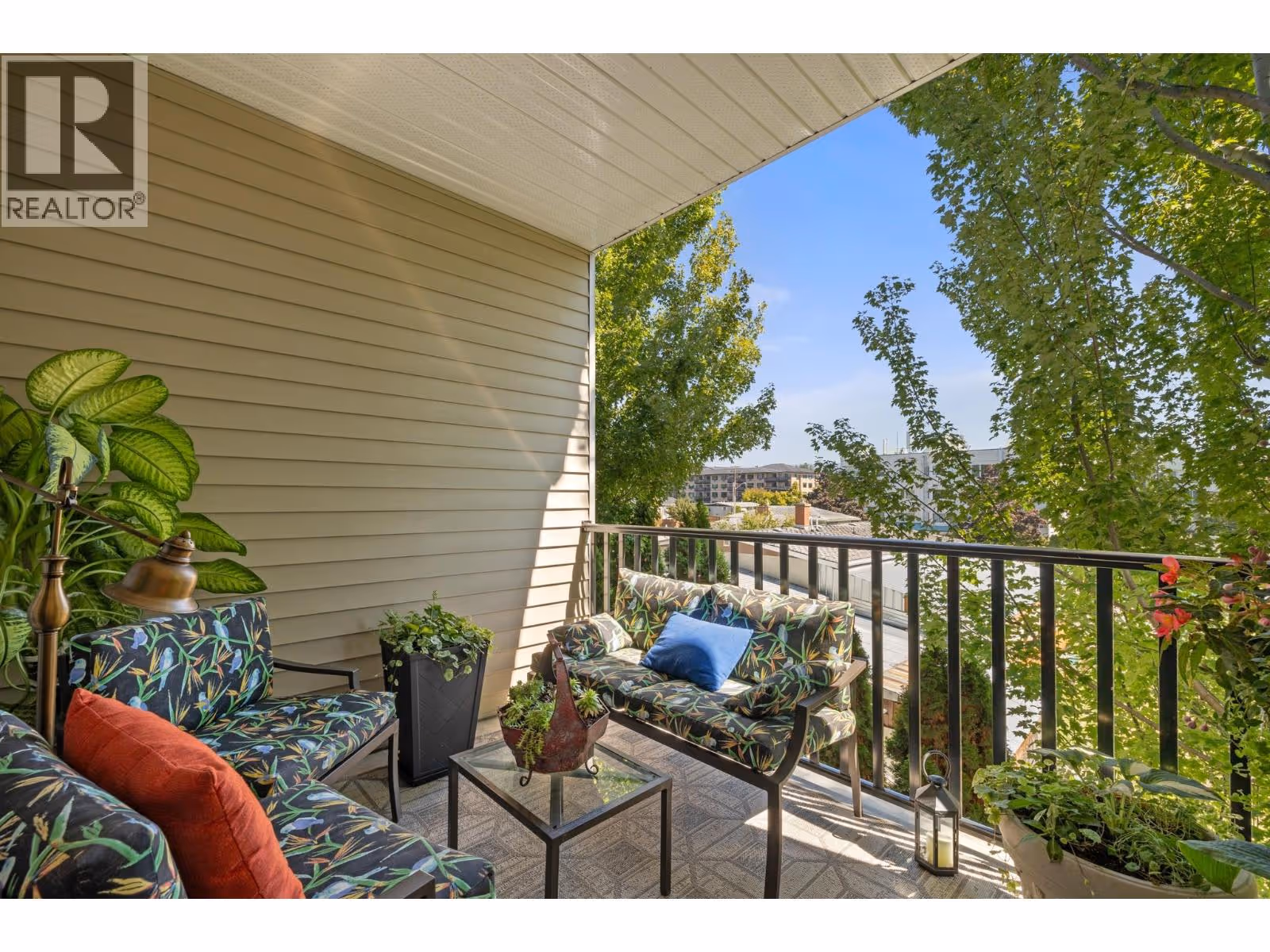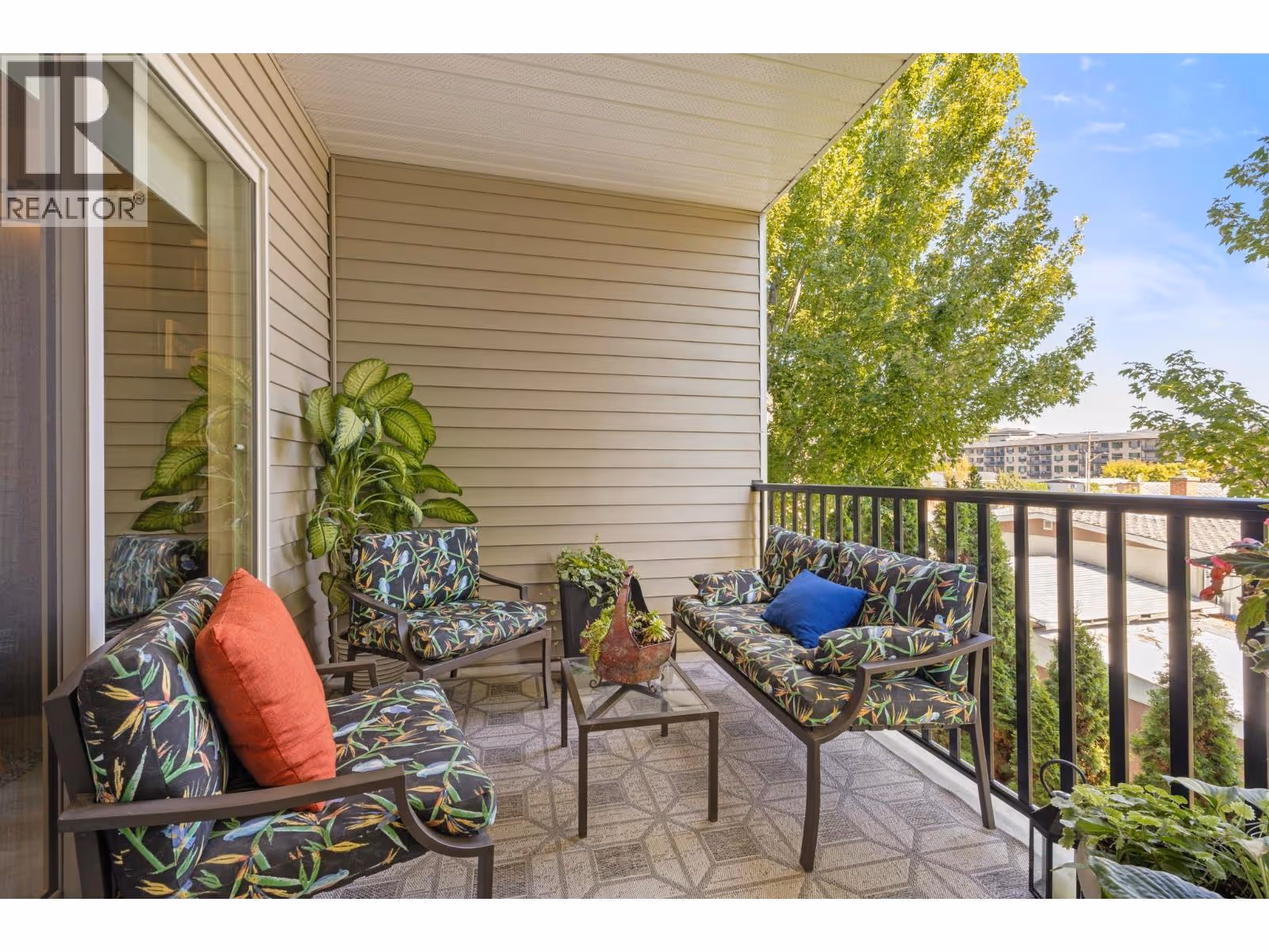 Bright and spacious 2 Bedroom, 2 Bathroom Condo featuring 9’ ceilings with a desirable split bedroom layout and open concept design. Each bedroom offers its own private covered patio, perfect for morning coffee or quiet relaxation. With the open floor plan and big windows this unit feels very bright and welcoming with its cosy gas fireplace in the main living area. The kitchen is spacious and modern with quartz counter tops, under cabinet lighting, stainless steel appliances, including a gas range. Additional conveniences include in-suite laundry, Murphy bed, one dedicated parking stall, storage locker, bike storage & recycling bins in the garage. On the 1st and 2nd floors you will find a well equipped fitness room with access to a pool table and a lovely social room. Super location near Okanagan College, Kelowna Hospital, H2O fitness centre, Walking and Biking Trails, Schools Nearby, Good Bus Service and Great Shopping. (id:62999)