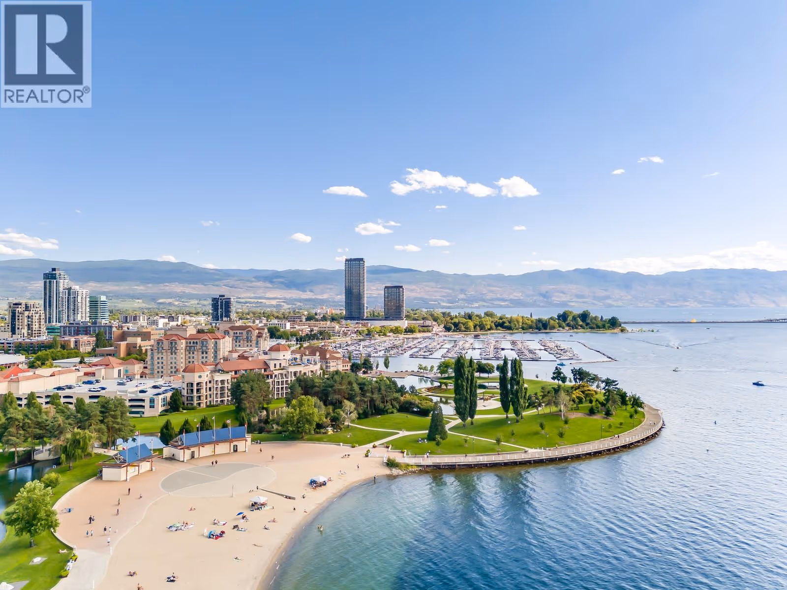 Welcome to elevated waterfront living in the heart of downtown Kelowna — a bright & stylish corner residence designed for those who value lifestyle, comfort, and connection to the outdoors. This thoughtfully updated 1-bed + versatile open den offers approx. 880 sq. ft. of well-designed space with wraparound views of the lake, bridge, city skyline, and Knox Mountain. Inside, sleek upgrades bring a modern, curated feel — Italian porcelain tile, an updated gas fireplace, elevated lighting, and a warm wood-accented bathroom with industrial touches. The spacious den functions beautifully as a second living space or office, with potential to be enclosed for a private second bedroom, adding value and flexibility. Two patios extend your living area — one covered with beautiful lake views for year-round enjoyment, the other with a BBQ hook-up and west-facing views toward Knox Mountain, perfect for sunset dinners and relaxed Okanagan evenings. The primary bedroom features a custom built-in headboard with integrated side tables and dimmable lighting. A gas range, geothermal heating/cooling (included in strata fees), secure parking, and a storage locker add everyday ease. Located in Sunset Waterfront Resort, residents enjoy an outstanding collection of amenities: indoor/outdoor pools, hot tubs, steam room, fitness centre, tennis/pickleball courts, event room, and boat moorage lottery. All of this just steps from beaches, the waterfront boardwalk, restaurants, shops, and Kelowna’s vibrant Cultural District. For full-time living, stylish retreat, or a smart lifestyle investment, this home checks all the boxes — a place to relax, recharge, and savour the Okanagan. (id:62999)
