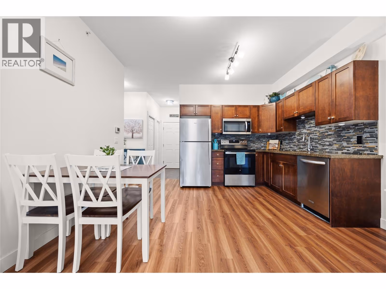 TOP FLOOR! Condo located in the desirable Pinnacle Pointe Golf Resort on the premier Okanagan golf course in Quail Ridge. Just minutes from Kelowna International Airport, UBCO, transit, shopping, and dining, this location offers exceptional convenience and lifestyle appeal. This is a prime investment opportunity with NO RENTAL RESTRICTIONS, pet friendly, BBQ's allowed, and the popular amenity-rich building maintains strong occupancy for both short and long-term rentals. The stylish two-bedroom condo has been beautifully renovated and is truly move-in ready, featuring luxury vinyl plank and ceramic tile flooring throughout, granite countertops, solid wood shaker-style cabinetry, electric fireplace, and a brand-new deck. Extensive 2025 upgrades include a custom glass and stone backsplash, stainless steel Whirlpool refrigerator and over-the-range microwave, GE convection range, full-size Electrolux washer and dryer, modern LED lighting, spacious closet organizers with a walk-in pantry, new blinds, bi-fold doors, trim, faucets, and fresh paint throughout. In June 2025, a brand-new forced-air furnace and fan coil A/C unit, still under warranty was installed, providing year-round comfort and peace of mind. Strata fees include heat and cooling, and building amenities offer excellent value with a heated underground parking stall, bike storage, on-site security and building manager, fitness centre, and seasonal pool and hot tub, making this an affordable Okanagan lifestyle option. (id:62999)