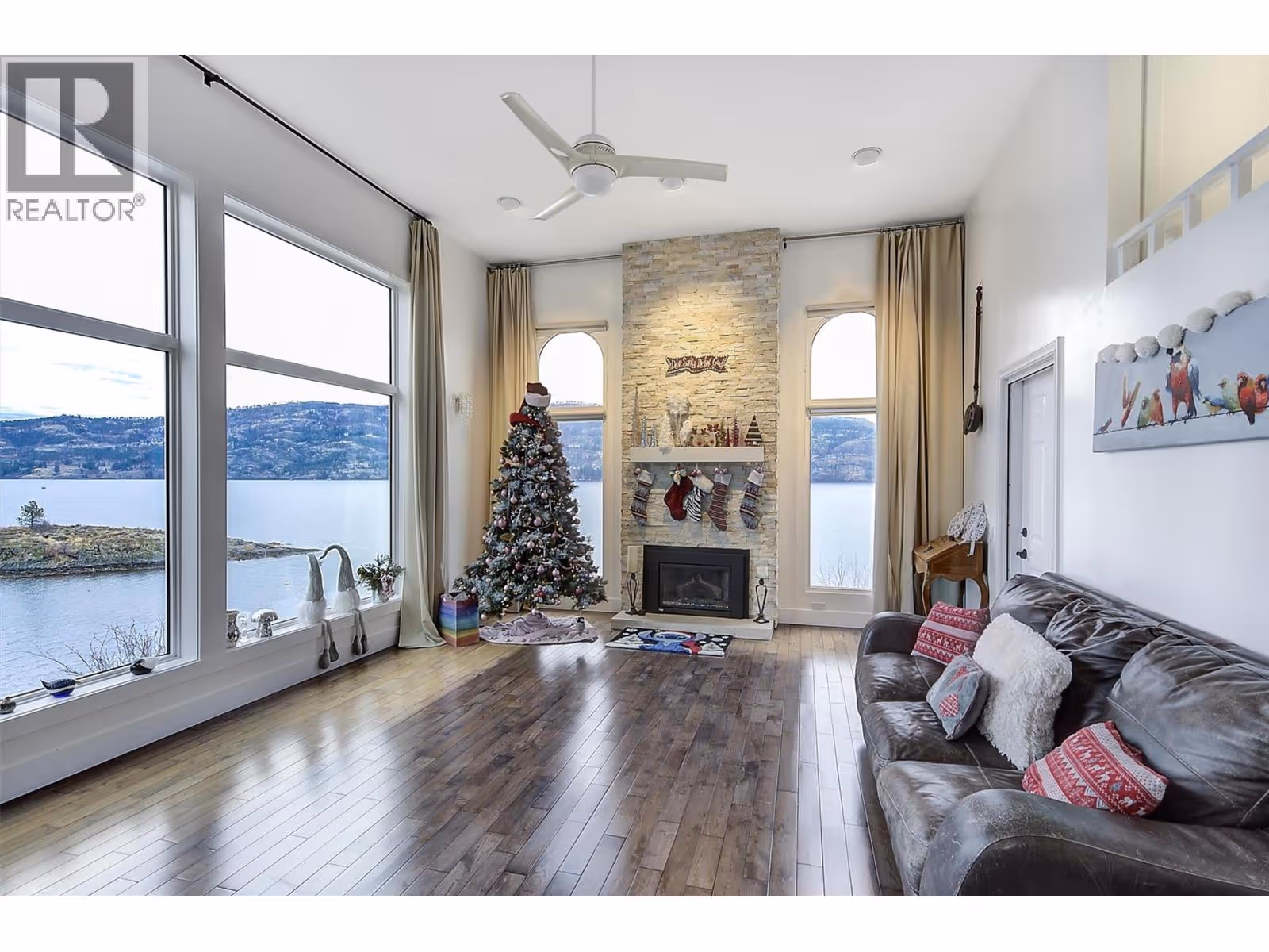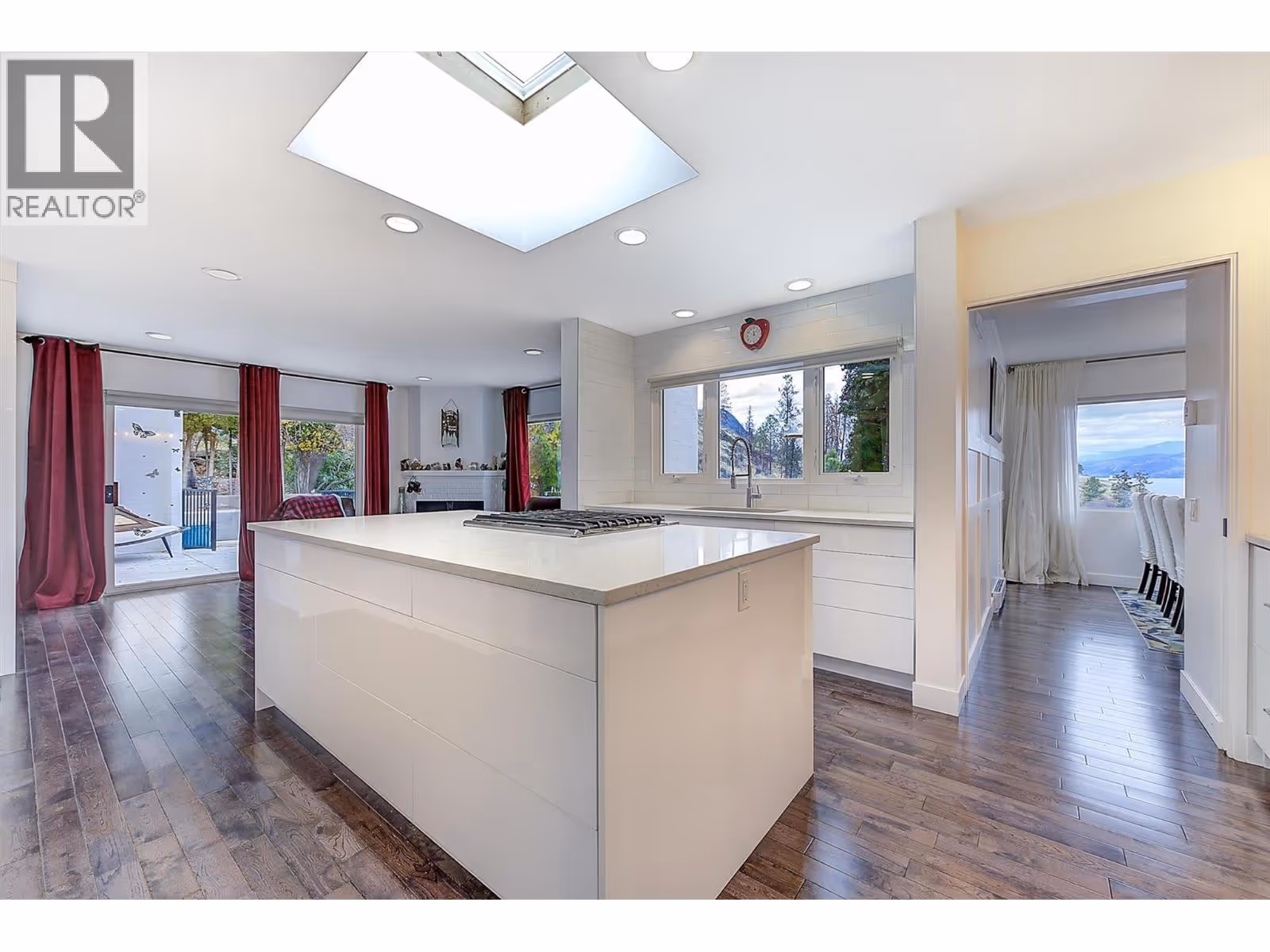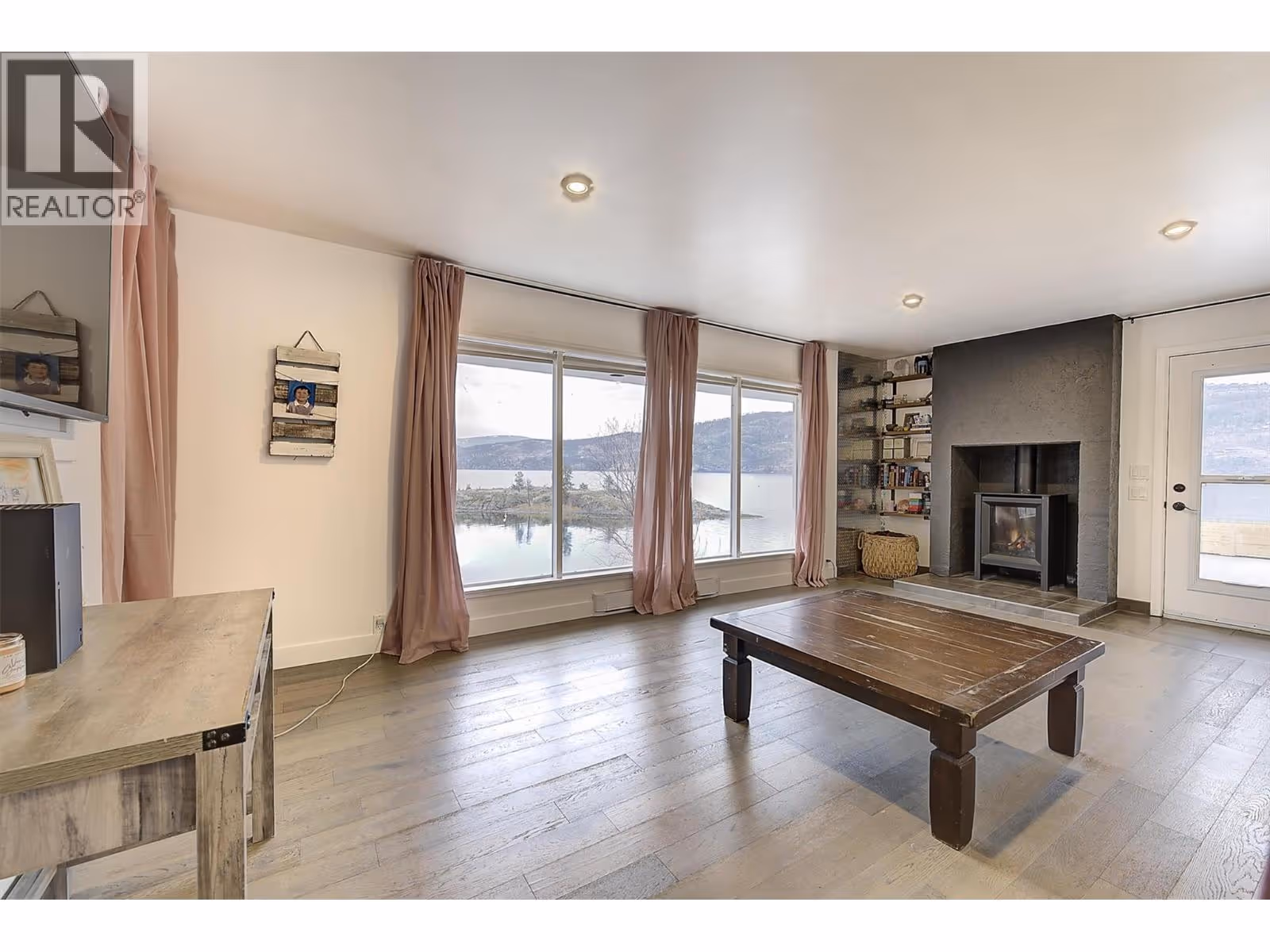 A rare opportunity to own an architectural gem on Okanagan Lake. Welcome to 15 Traders Cove Road. This striking home offers over 70 ft of private lake frontage with panoramic, unobstructed views across Traders Cove Regional Park. Thoughtfully renovated, the residence features vaulted ceilings and oversized windows that invite natural light and frame breathtaking views. The modern kitchen includes quartz counters, a gas range, and custom cabinetry. Multiple lake-facing decks create seamless indoor-outdoor living, while well a custom stair well leads to a private dock with deep-water moorage, a lakeside fire pit, and a kayak launch area. The lower-level suite, with its own kitchen and entrance, is perfect for guests, extended family, or a B&B. Surrounded by parkland, the home enjoys exceptional privacy and is alive with wildlife: birds, deer, and more. At the top of the lot, there may be potential to build a detached garage or carriage house, offering even more flexibility for future use (buyer to verify with municipality). Outside the Speculation & Vacancy Tax zone, this turn-key property is ideal as a full-time residence or seasonal getaway. Newly installed solar panels bring down operating costs and are a great compliment to the electric heat. Peaceful Traders Cove is just minutes by car or boat from downtown Kelowna. (id:62999)
