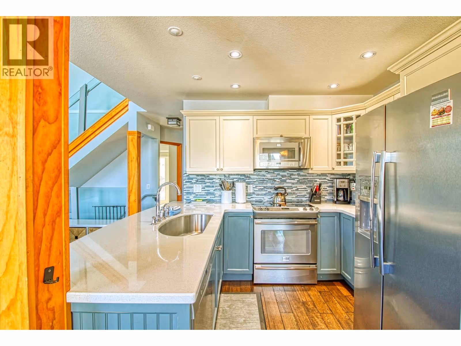 Beautifully presented La Casa Cottage CLOSE TO LAKE & Marina with LARGE DECKS front & rear, LAKE VIEW from front deck & living/dining area. SHORT TERM RENTALS ALLOWED, offered Fully Furnished & Turnkey ready for you or your guests. High Quality finishes & Appliances throughout. Lots of space to relax with 3 Bedrooms plus Den plus Finished Basement Rec room. Large PRIVATE REAR DECK to catch or escape the Okanagan Sun depending on the time of day, accessed from both Main floor bedrooms & walk around from entry landing . Garage/basement Rec Room accessed inside from Main floor. Easy care grounds with concrete driveway & synthetic lawn. Easy Short Walk or golf cart ride to the beach & marina. La Casa Resort is Freehold ownership, open YEAR-ROUND for you or VACATION RENTAL guests to enjoy (La Casa is unaffected by recent Air bnb restrictions). You choose whether to keep for yourself, rent out some of the time or use an on-site company if you want a 'hands-off' investment. La Casa Resort Amenities: Beaches, sundecks, Marina with 100 slips & boat launch, 2 Swimming Pools & 3 Hot tubs, 3 Aqua Parks, Mini golf, Playground, 2 Tennis/Pickleball Courts, Volleyball, FirePits, Dog Beach, Upper View Park and Beach area Gated & Private Security, Owners Lounge, Owners Fitness/Gym Facility. Grocery/liquor store on site plus Restaurant. (id:62999)
