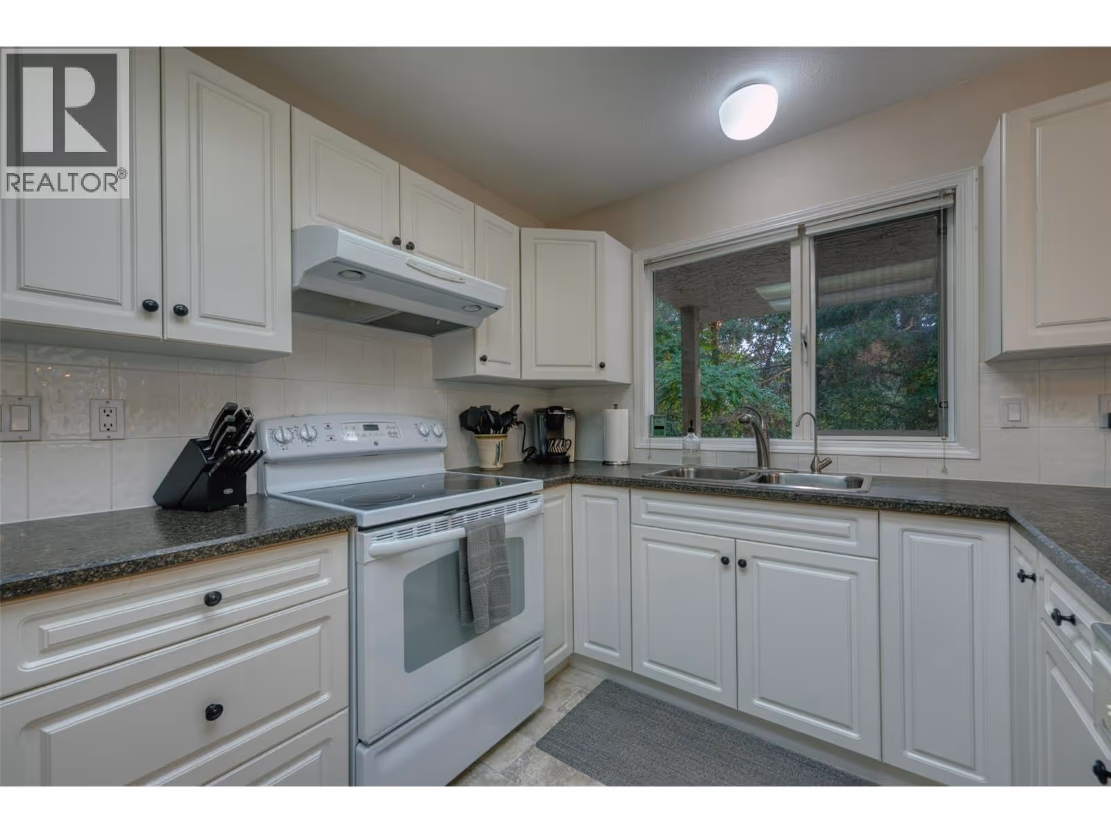 Welcome to Cascade Falls, located in prestigious Dilworth Mountain! This bright & spacious 3-bedroom end unit townhome blends refined comfort with an exceptional location. Perfectly situated near schools, shopping, parks, walking trails, and public transit, it offers convenience while being nestled in one of Kelowna’s most desirable communities. Inside, you’ll find a thoughtfully designed layout featuring newer hardwood flooring, a generous living room with a cozy gas fireplace, and a large kitchen with a sunlit dining nook. Expansive skylight floods the home with natural light, enhancing the open and airy atmosphere. The elegant primary suite is a private retreat, complete with a 4-piece ensuite showcasing a soaker tub, separate shower, and access to a secluded upper deck. The lower level extends the living space with a huge partially covered deck and peaceful mountain views—perfect for both entertaining and quiet relaxation. This end unit backs onto a beautiful treed green space, offering privacy and tranquility. Recent upgrades include a new air conditioning unit, reverse osmosis system, and a 3-year-old hot water tank. A house alarm system (no contract) is also included for added peace of mind. (id:62999)