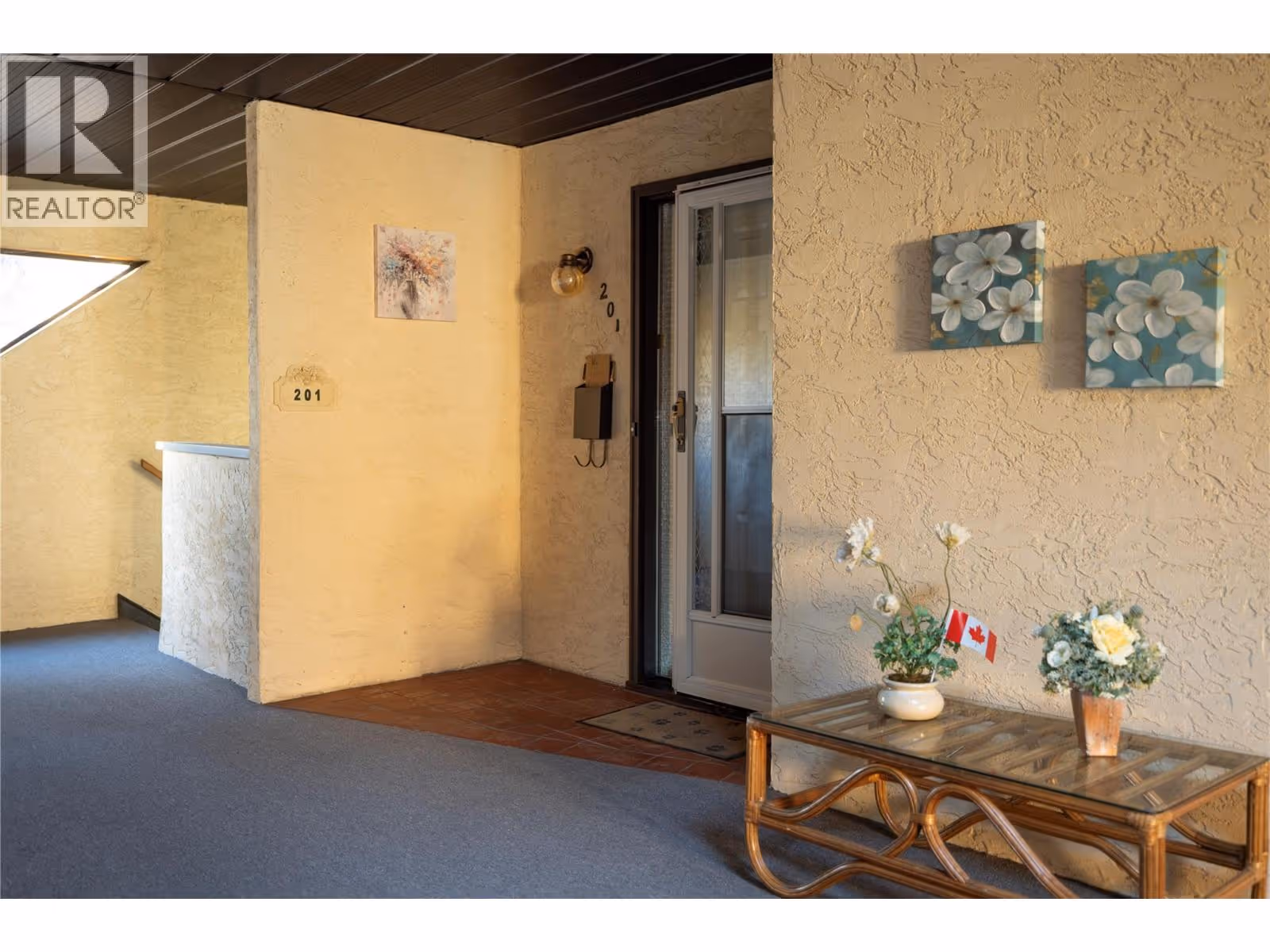 Welcome to easy, low maintenance living in this well cared for 55+ community, ideally located in the heart of Kelowna. This bright second floor 2-bedroom home has been thoughtfully refreshed with new paint, some new lighting and baseboards, and new baseboard heaters and hot water tank, offering a move in ready feel. The spacious living area opens to a covered balcony overlooking the creek, a peaceful spot to enjoy your morning coffee. The kitchen features new tile, new stainless steel appliances including a double door fridge, stove, dishwasher and range hood, along with ample cabinet space. A dedicated dining area is adjacent to the living room, creating an easy space for everyday living or hosting family and friends. The four piece bathroom has convenient access from both the hall and the primary bedroom. The bathroom has been updated with a new vanity and toilet. There is an in suite laundry room with added storage and shelving, and a wall unit air conditioner in the living room. Located close to Capri Mall with Your Independent Grocer, restaurants, a gym, dollar store and everyday essentials just minutes away; transit is nearby and Parkinson Recreation Centre is a short drive. The building has a monitored security system plus video monitoring for everyone's safety. Note: Non-smoking building. No cats or dogs permitted; fish, birds, small caged mammals only. Parking stall #6, storage locker #201. Extra parking stalls may be available for rent. (id:62999)