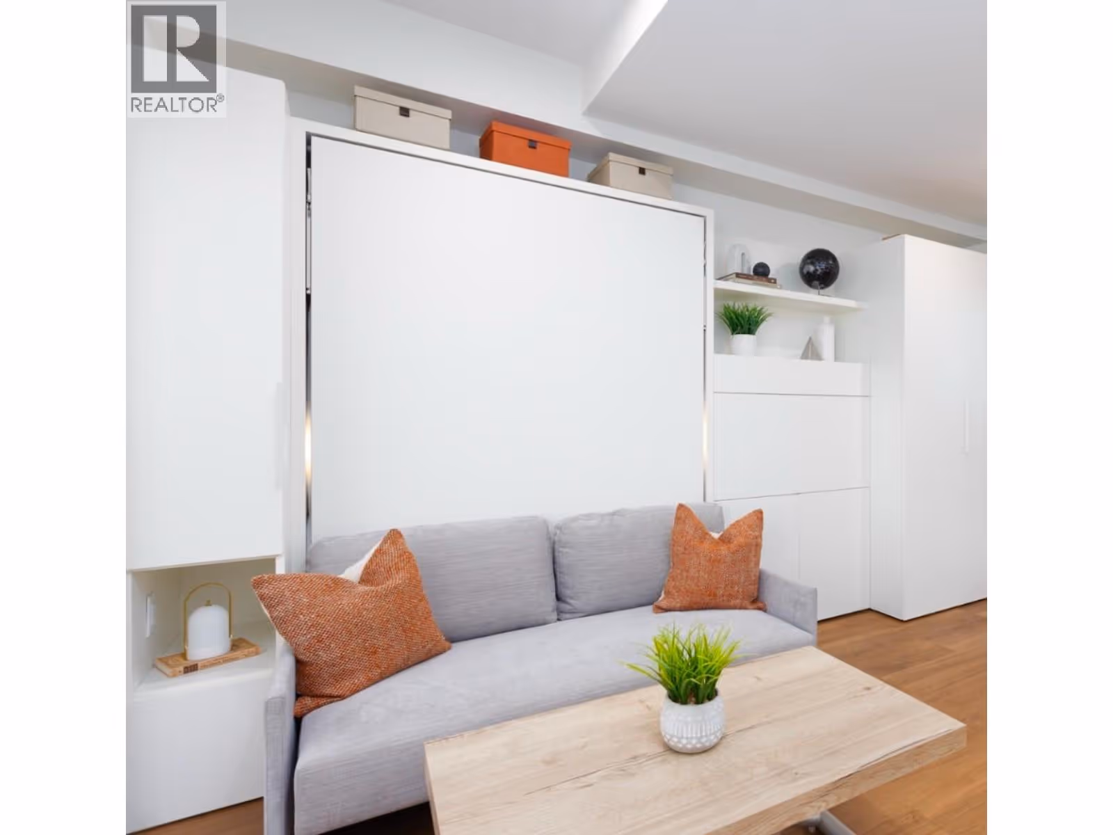 Studio home at Revo Kelowna, the latest Millennial Developments Smart CommunityTM. Centrally located in the Capri Landmark district with a 98 Bike ScoreTM, pet and rental-friendly, ideal for first-time buyers and investors. Peekaboo lake view with west-facing soft natural light, thoughtful floorplan with roomy full bathroom, ample storage, and private balcony. Quality stainless steel appliance package including dishwasher and washer/dryer. Incredible building amenities include rooftop recreational terrace, gym, spa- inspired wellness facilities, indoor and outdoor social spaces, coworking area, expansive communal green space, and organic gardens. Fully tech-enhanced living with digital keys, concierge app, smart parcel delivery, touchless facial recognition entry, and more. Presentation Centre featuring a full-sized studio show suite open for tours by appointment. Delivery mid 2026. Revo Kelowna – Revolutionizing Living Spaces. (id:62999)