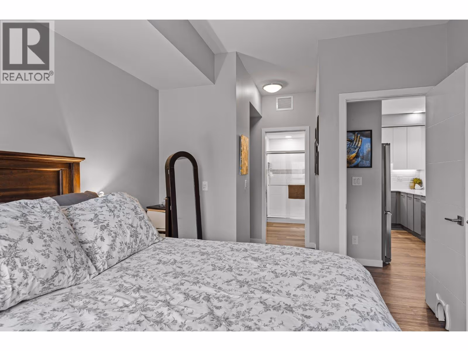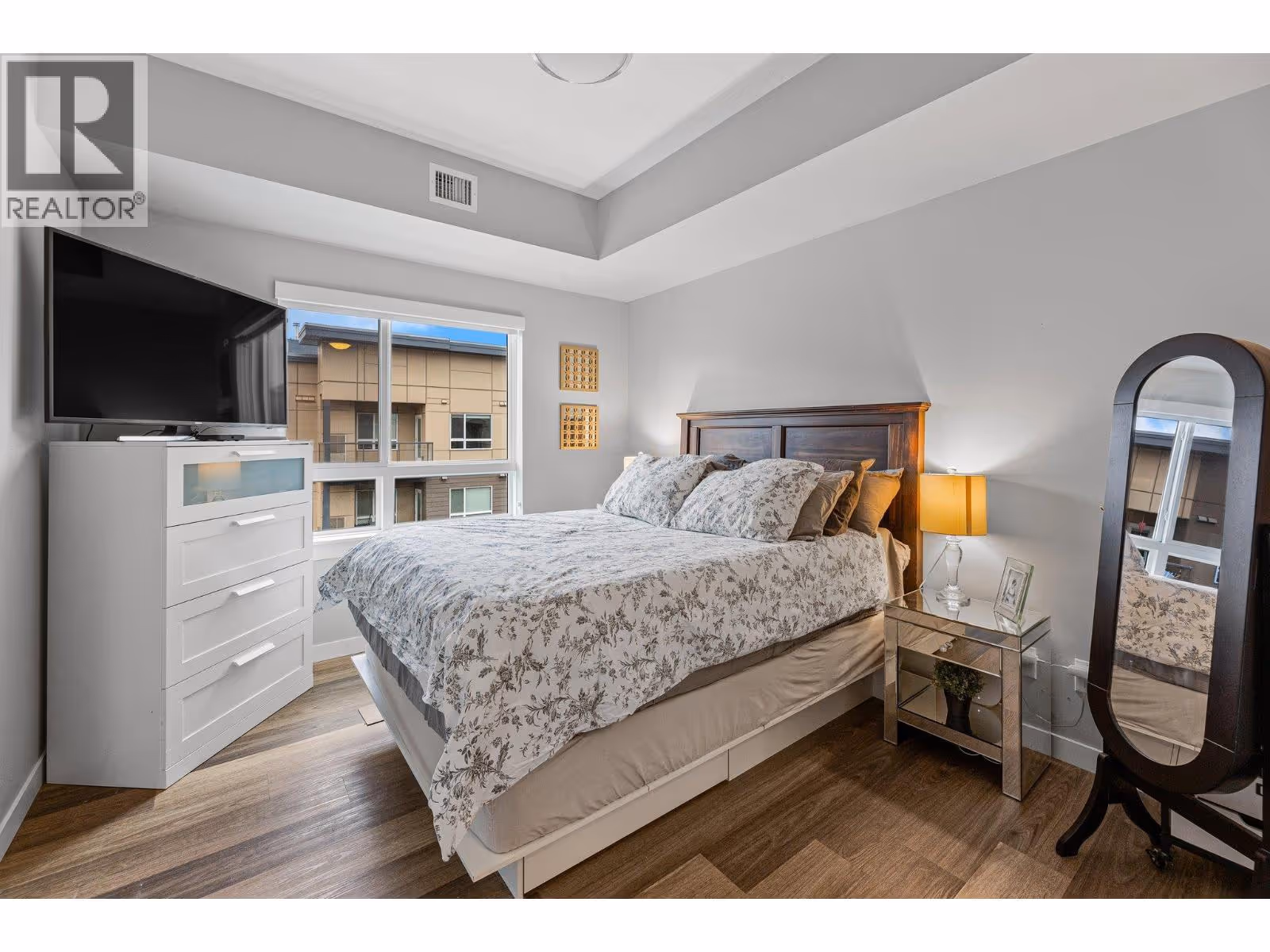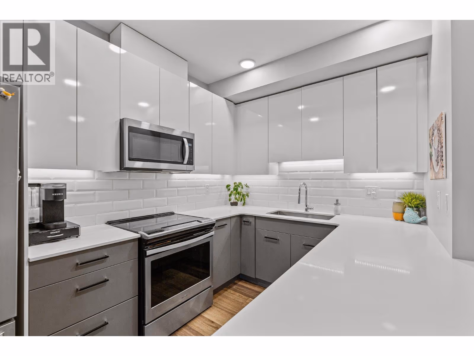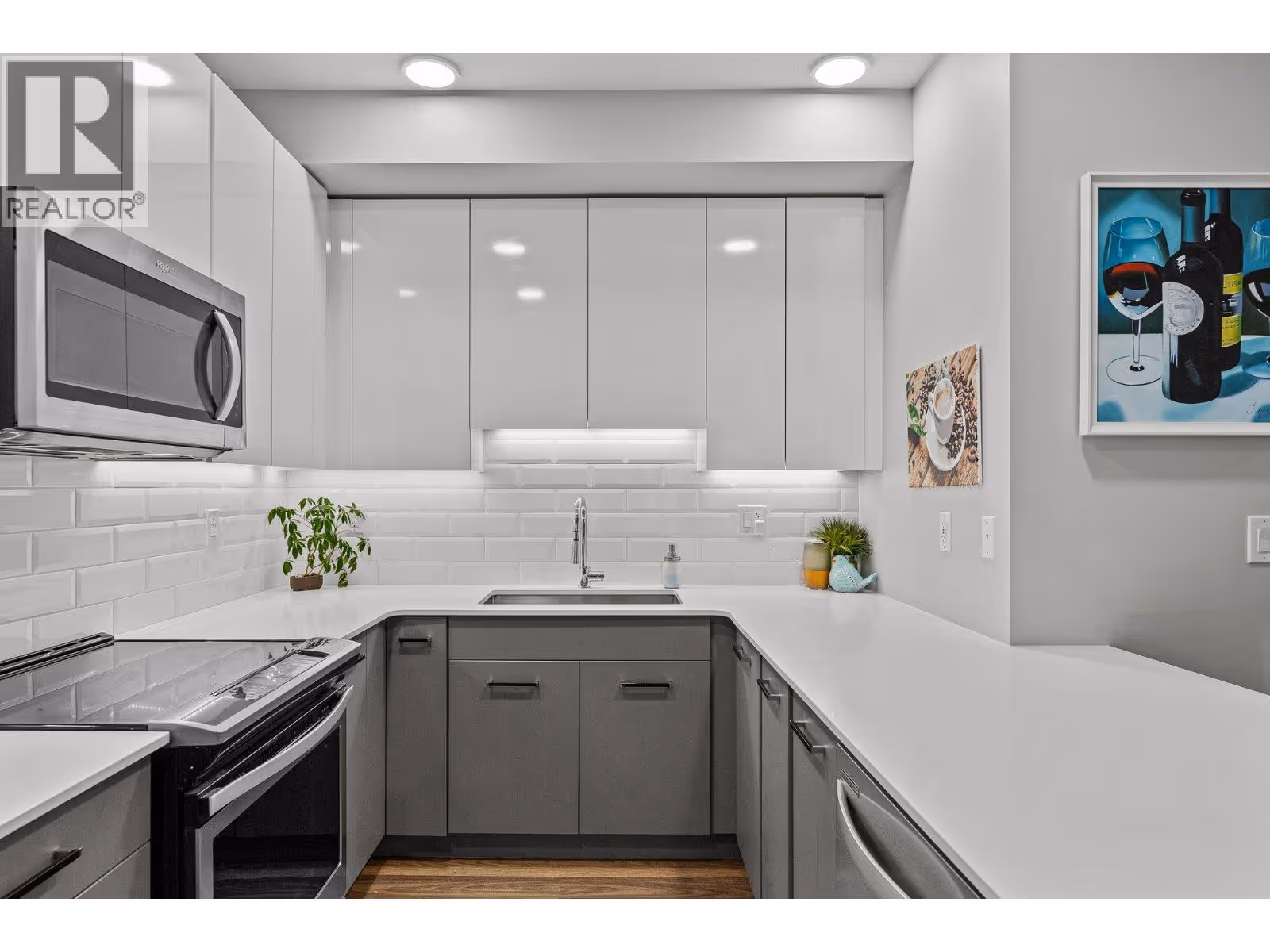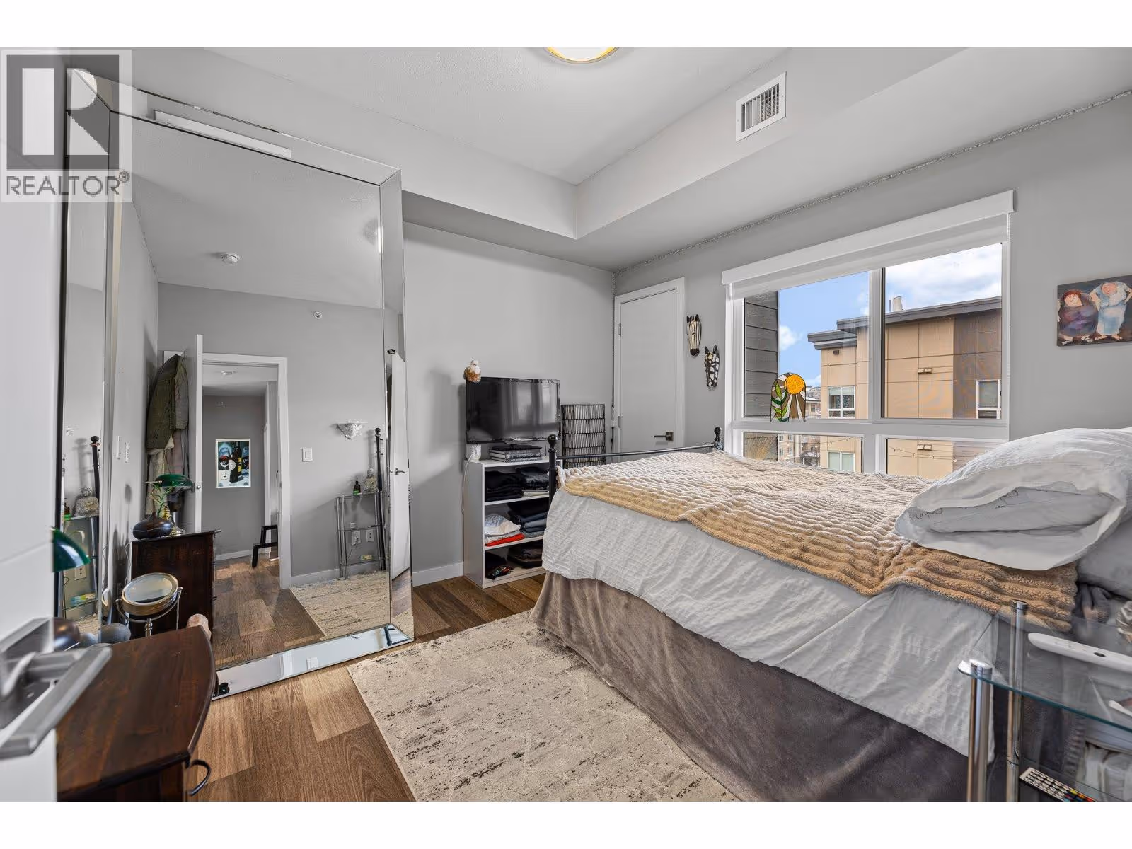 This spacious 2 bedroom, 2 bath, top floor West facing unit features elevated views of the street and Kelowna city skyline from its expansive windows and private cozy covered patio. It is thoughtfully laid out with an open and efficient split bedroom floor plan. The master has a 3-piece ensuite and the second bedroom has access to the main bathroom as a cheater ensuite. The kitchen was designed with the upgraded feature package including quartz countertops and stainless-steel appliances. One assigned, secure underground parking spot and storage locker are included. The building is centrally located just minutes away from downtown, the lakefront, and UBCO. It is walking distance to nearby transit, local amenities, parks, playgrounds, biking trails, walking paths, and prized golfing. The building’s amenities include a dedicated dog and bike wash station located within the building & secure indoor bike storage. Social spaces include a community, top- floor terrace with BBQ and fire pit, and a large amenities room complete with kitchen to host gatherings. There is nearby visitor parking, and a car share station with membership & drive time. Find amazing value with this affordable 900 sq ft condo with low strata fees. With no age restrictions, and rentals and pets allowed this is the perfect place to call home or purchase as an investment. (id:62999)