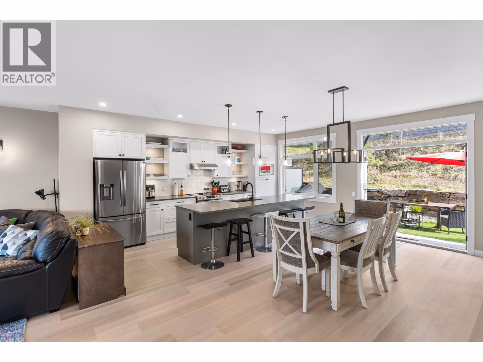 Welcome to Hillside Terraces at McKinley Beach. Modern end unit, 3-level luxury townhome with a triple car garage. Upstairs offers 3 bedrooms with gorgeous lake views, a spacious primary with a walk-in closet and 4-piece ensuite, plus a full bathroom and laundry. The open main level features a bright white kitchen with quartz counters, a large island, and access to a private rear terrace. The dining and living areas include oversized windows, an electric fireplace, and a 2-piece powder room. The walk-in lower level includes a foyer, mechanical room, and triple garage. Located in the vibrant McKinley Beach community with access to a marina (slips rentable), outdoor gym, beach, trails, and a brand new exclusive community centre with a great gym, pool, hot tub, sauna, tennis and pickleball courts, playground, and community garden. Pet-friendly: 2 dogs, no size/breed restrictions. Live or invest—just minutes from YLW, UBCO, Lake Country, and downtown Kelowna. (id:62999)