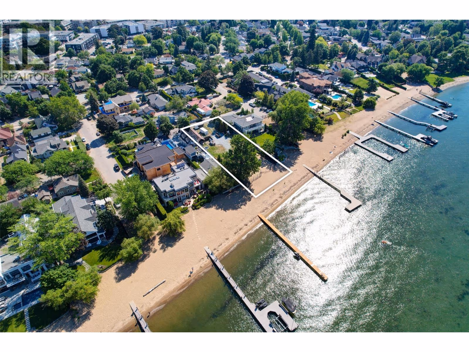 One of Kelowna's most desirable lakeshore properties, on Okanagan Lake, this rare 0.44-acre vacant lakeshore lot is nestled in one of Kelowna’s most prestigious iconic neighborhoods secluded just off the coveted Abbott Street corridor. This 19,000+ sq ft parcel is a vacant blank canvas to build your vision for your family’s legacy dream home. With almost 88 feet of level, expansive natural sand beach, an unobstructed South-West exposure, you can enjoy stunning sunsets and direct access to the crystal waters of Okanagan Lake. This wide lot provides ample room for a large dock, accommodating multiple boats, entertaining guests, swimming, and beach activities. Perfect for lakeside entertainment! Whether you envision a luxurious private estate with historic architecture or a modern contemporary masterpiece – the possibilities are endless! Ideally located just a short stroll to Kelowna’s City Park and vibrant downtown core - boutique shopping, galleries, casual and fine dining, cultural districts, and Kelowna General Hospital. Proximity to World-class wineries, orchards, golf courses, the University of British Columbia Okanagan, and Kelowna International Airport. This iconic property offers a rare fusion of lakeside serenity and convenience blending natural beauty with a vibrant four-season lifestyle in the heart of the Okanagan Valley. The property may allow for up to four dwellings under the new Provincial density regulations and is free from Canada’s foreign buyer ban. (id:62999)