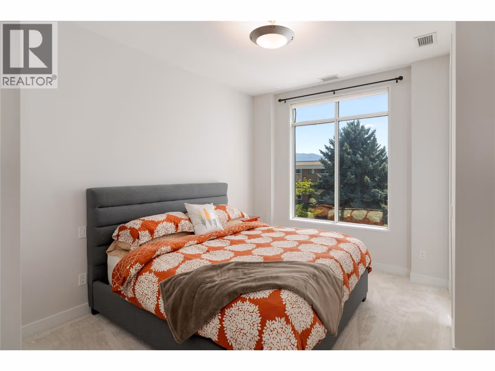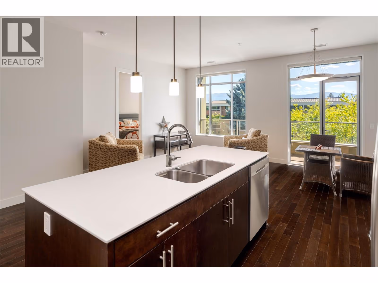 Experience elevated living in this 2-bedroom, 2-bathroom south-facing condo at Fuzion—where contemporary design meets resort-style amenities. Inside, the open-concept floor plan features high ceilings, rich hardwood flooring, and oversized windows that fill the home with natural light. The chef’s kitchen is equipped with stainless steel appliances, a built-in Miele coffee system, wine fridge, and a generous island that’s perfect for entertaining. The primary suite includes a spa-inspired ensuite with a walk-in shower, while the second bedroom offers flexibility for guests, a home office, or hobbies. All carpet in the home has just been replaced, offering a fresh and move-in ready feel. Everyday living is enhanced by in-suite laundry and secured parking with an extra-wide stall. This is a concrete building, ensuring a much quieter living environment. Residents also enjoy access to an outdoor pool & hot tub, a fitness centre, sauna, car wash bay, and meeting room. Perfectly located near shopping, dining, and downtown Kelowna, this home blends sophistication with everyday convenience. (id:62999)