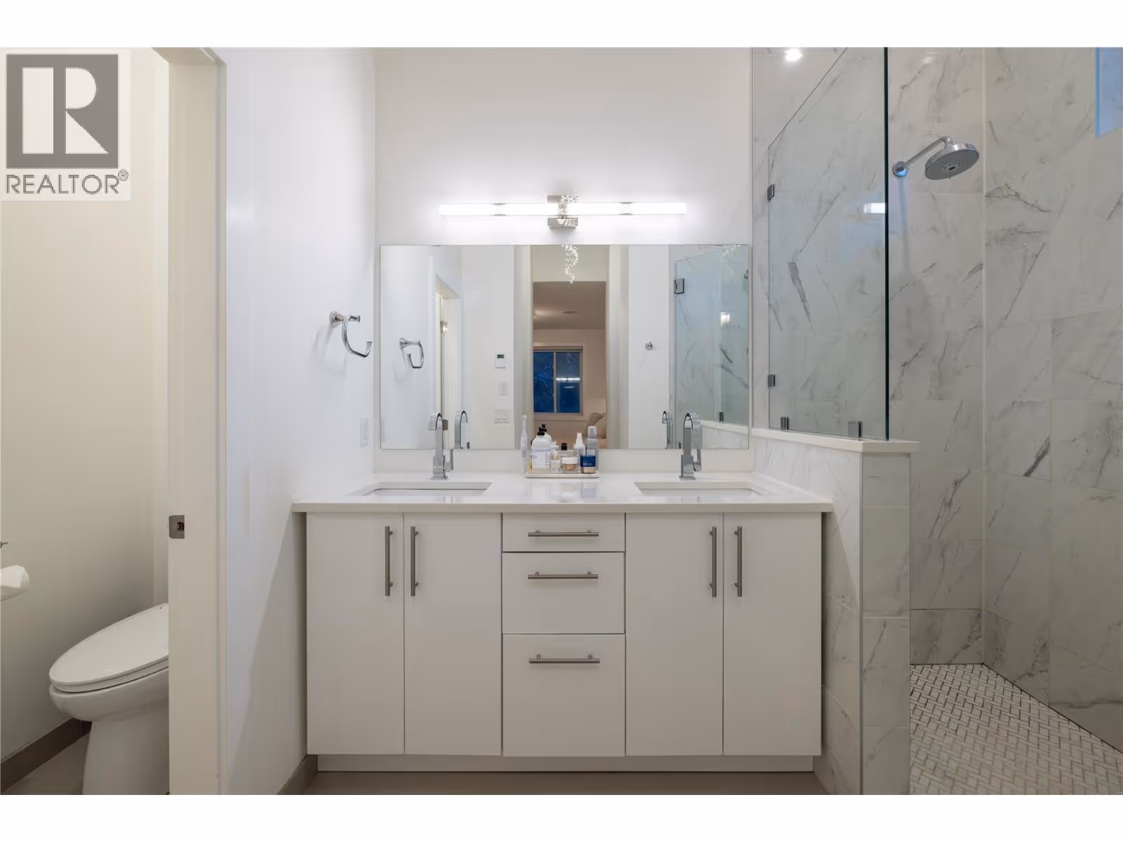 Welcome home to the one that has it all! Your triple car garage, RV parking, entertainer’s kitchen, 7 bedrooms, legal suite, lofted play area, and movie room await. Through the grand entryway clad in glass to bring in the light, you are welcomed up and into the open living, dining and kitchen space with soaring 11’ ceilings throughout; designed with entertaining friends and family in mind. With three bedrooms on this main level, including the primary retreat, function and form for young and mature families unite. Off the kitchen is a lofted play space, and out back you will find the covered patio and private yard for summer entertainment. The entry level includes the incorporated laundry and mud room, making cleaning a breeze no matter the season, and additional guest bedroom/home office. The basement is host to 2 additional bedrooms, a large recreation & theatre room, and the 1 bedroom legal suite. Exterior finishings have been carefully thought out and include brick, stucco and composite siding, with sleek black fascia and windows, exposed aggregate driveway, and low maintenance landscaping to keep yard work a breeze. Inside you are welcomed to warm engineered hardwood, tile (including a heated ensuite floor), and plush carpet; modern cabinetry, gas stove, and quartz countertops round out the kitchen. The triple car garage features a 40 amp EV charger, side mounting door openers allowing for vehicle lifts to be utilized and space for storage as well. (id:62999)
