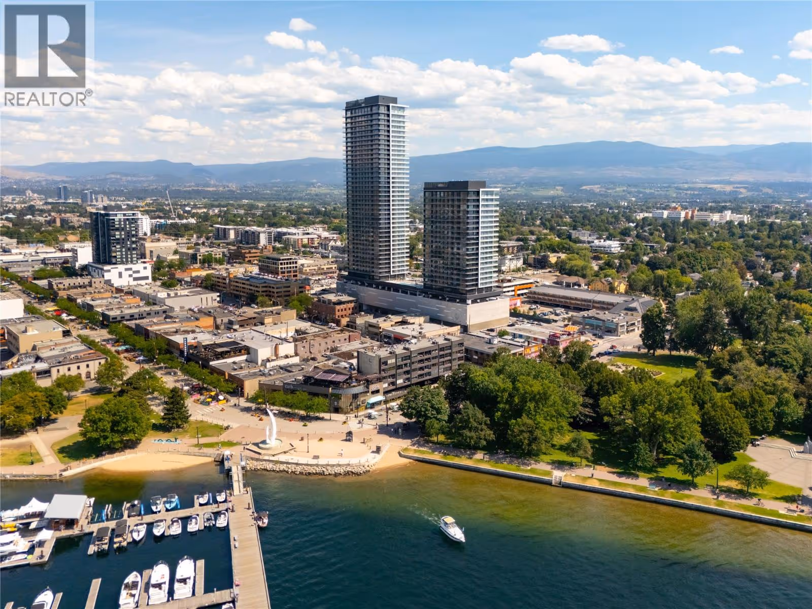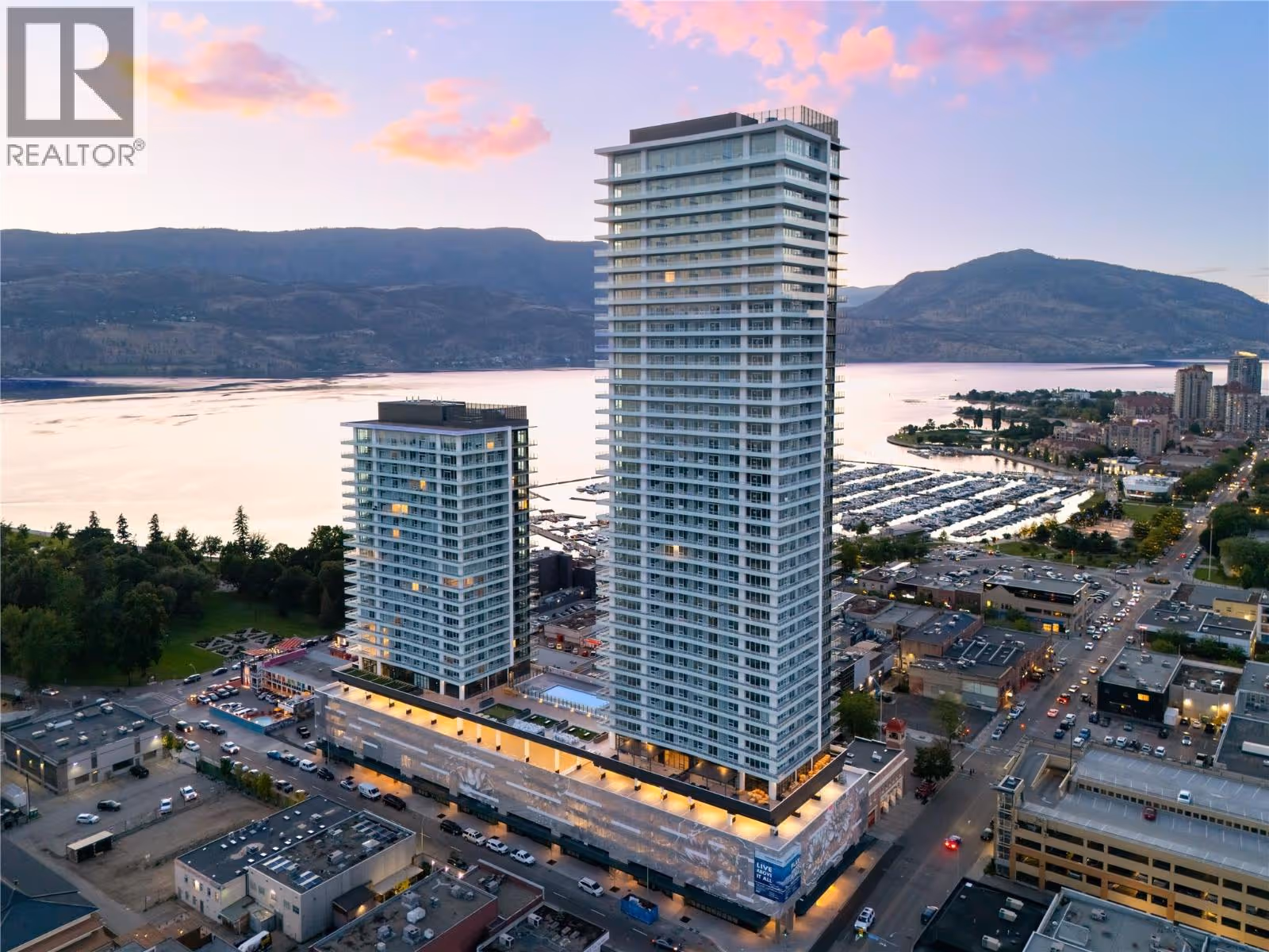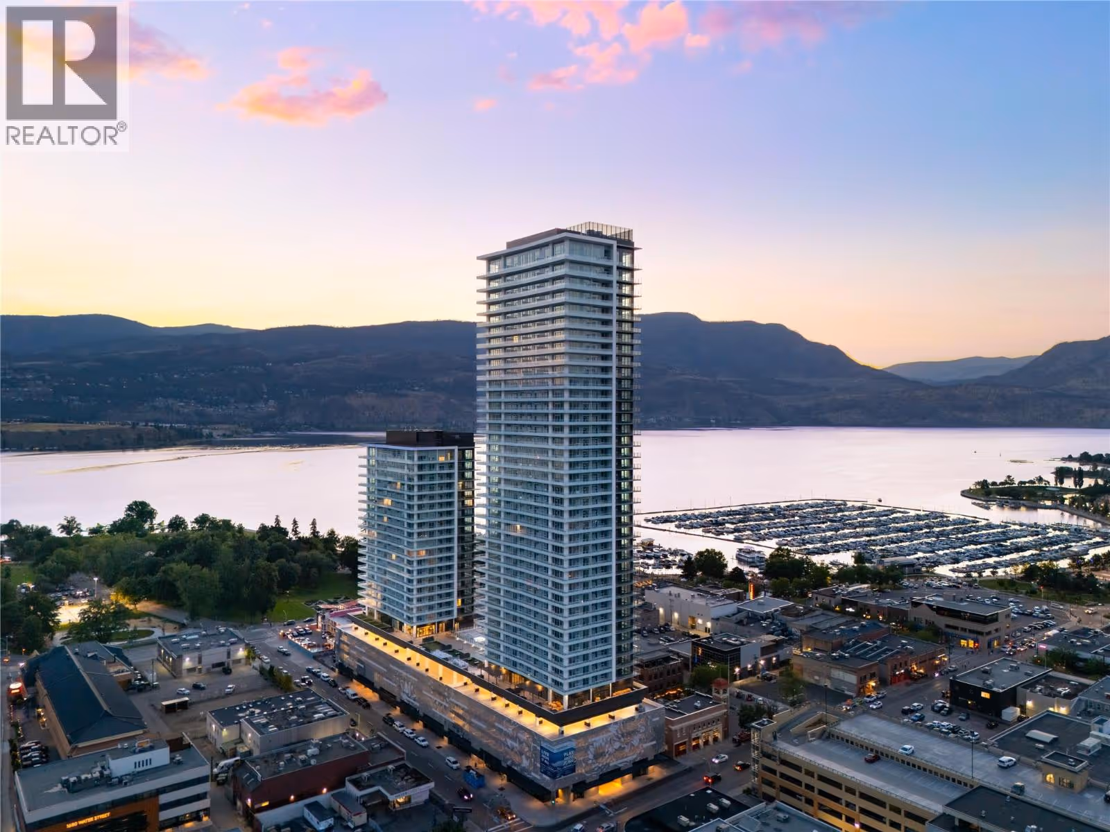 No GST! Welcome to #707 238 Leon Avenue! Water Street by the Park (WSBTP) is a brand-new development offering vacation-inspired living in the heart of downtown Kelowna. This luxurious SW facing, 3-bedroom + Den, 2-bathroom unit includes 1398 sq. Ft of living space, w/ a 500 sq. Ft wrap around balcony, offering breathtaking views of Okanagan Lake. The C1-07 floorplan is thoughtfully designed with luxury and elegance in mind and offers clean lines, bright open living space, and calming neutral colours throughout. The kitchen features premium wood cabinetry, quartz countertops, and stainless-steel Fulgor Milano appliance package, including panel ready fridge and gas range. The interior is finished with luxury vinyl plank flooring and porcelain tile. WSBTP is an amenity rich community, which features a sixth-floor “deck” that offers a peaceful retreat from the buzz of downtown Kelowna. The deck includes a heated outdoor pool, two hot tubs, sauna, steam room, fully equipped gym, outdoor BBQs, fire pit enclaves, golf simulator, putting green, yoga and spin studio, and so much more. WSBTP puts you at the centre of it all—just steps from coffee shops, restaurants, breweries, wineries, shopping, public transit, City Park, and the Waterfront Boardwalk. One parking stall included. No storage locker. Rentals are allowed, with restrictions (min. 30 days) and pets are also allowed, with restrictions (up to two dogs; or 2 cats; or one dog and one cat). GST is inclusive of the purchase price. (id:62999)