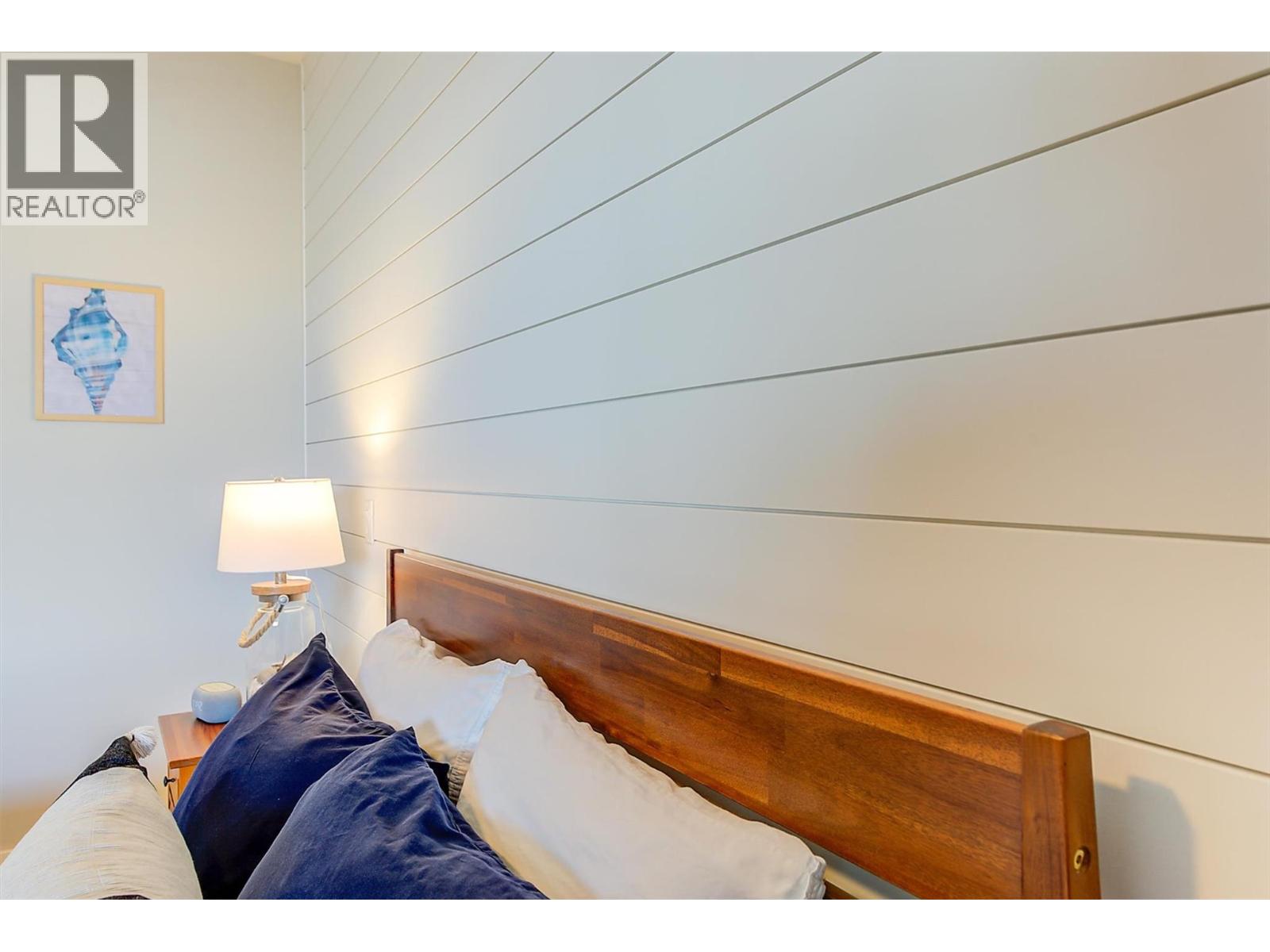 Discover lakefront living at The Granite at McKinley Beach in this beautiful 2 BR, 2 bath condo with the beach at your feet! The moment you step inside, the unbeatable lake and mountain views beckon you outside to the 27’ x 12’ west- facing balcony. Relax and dine, all with the comfort of an electric awning providing shade without obstructing your view. Come back inside and enjoy the newly installed vinyl plank flooring and carpet in both bedrooms. The guest bedroom features a floor-to-ceiling window with breathtaking lake vistas, generous closets and access to a three-piece bathroom. The main suite is strategically placed for privacy and includes a large walk-in closet, a sizeable linen closet, a spacious ensuite with dual vanities and a tub/shower combo. The open-concept living/dining area is ideal for entertaining. Enjoy stainless steel appliances, pantry, large island, and that gorgeous view of the lake. The functional office nook can easily become a wine bar (fridge included). The in-suite laundry room is practical and stylish, offering ample cabinetry and granite countertop. On-site amenities include a saltwater pool and rooftop hot tub. The brand new community centre features a gym, sauna, pool, hot tub and outdoor courts for pickleball, tennis and basketball. Azhadi Vineyards opening soon! Extras include same-floor storage and one underground parking stall. (id:62999)