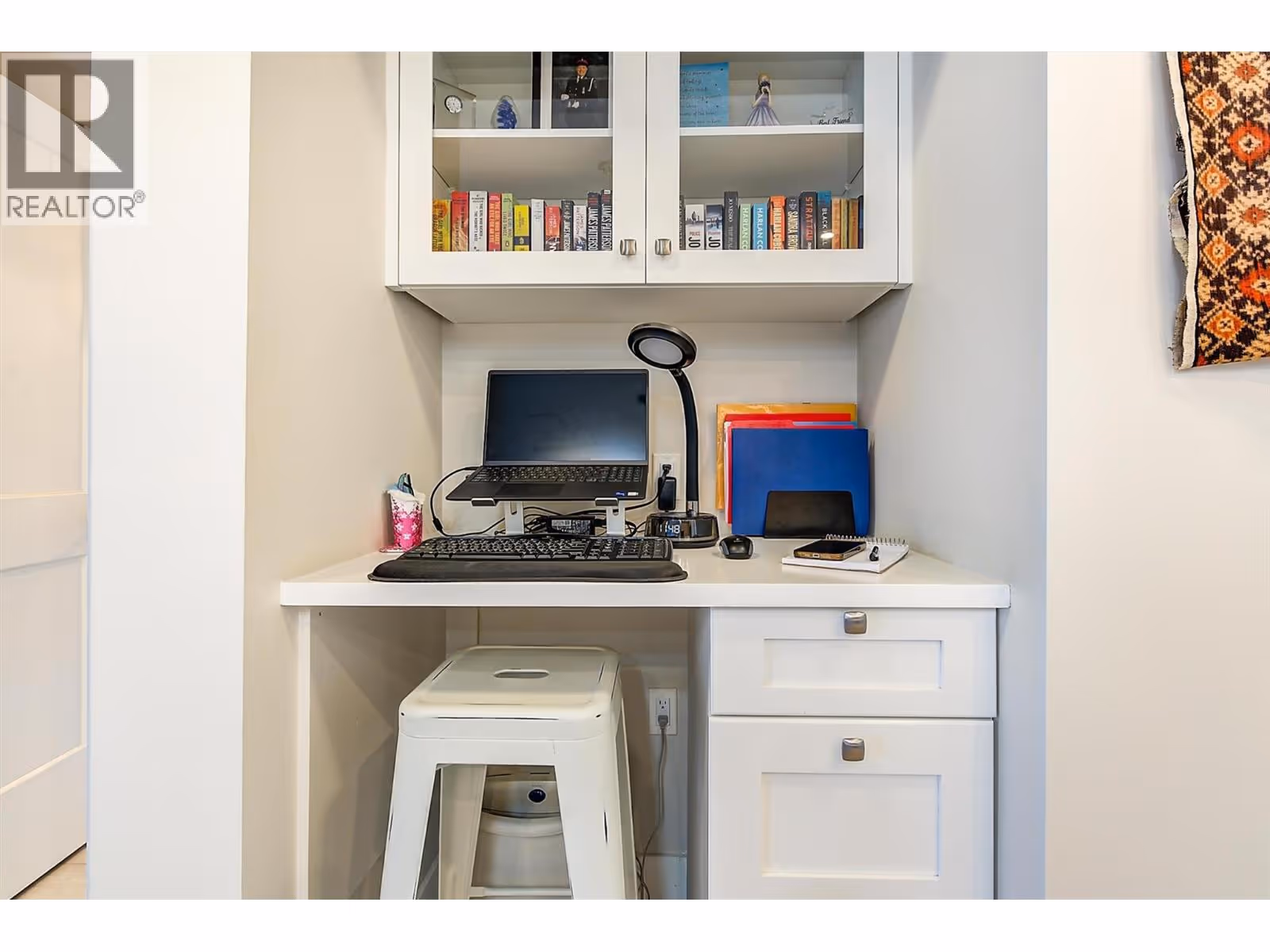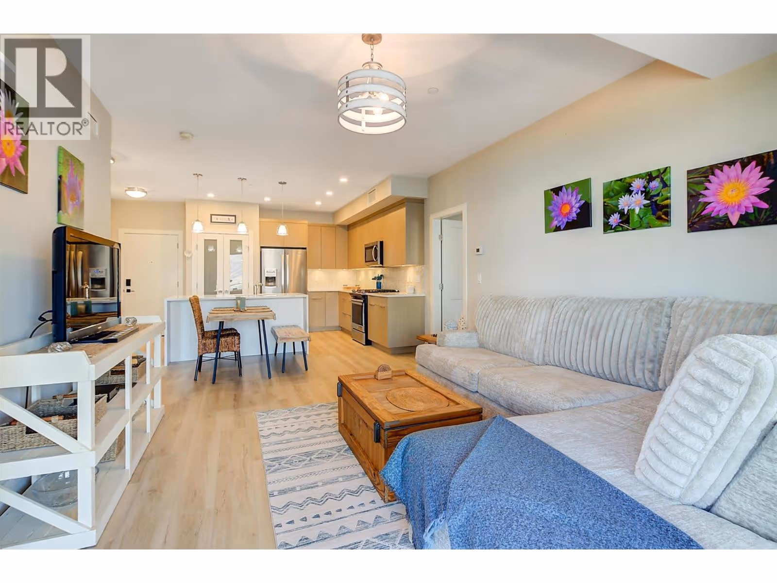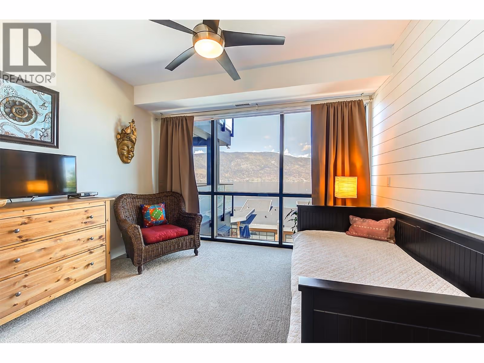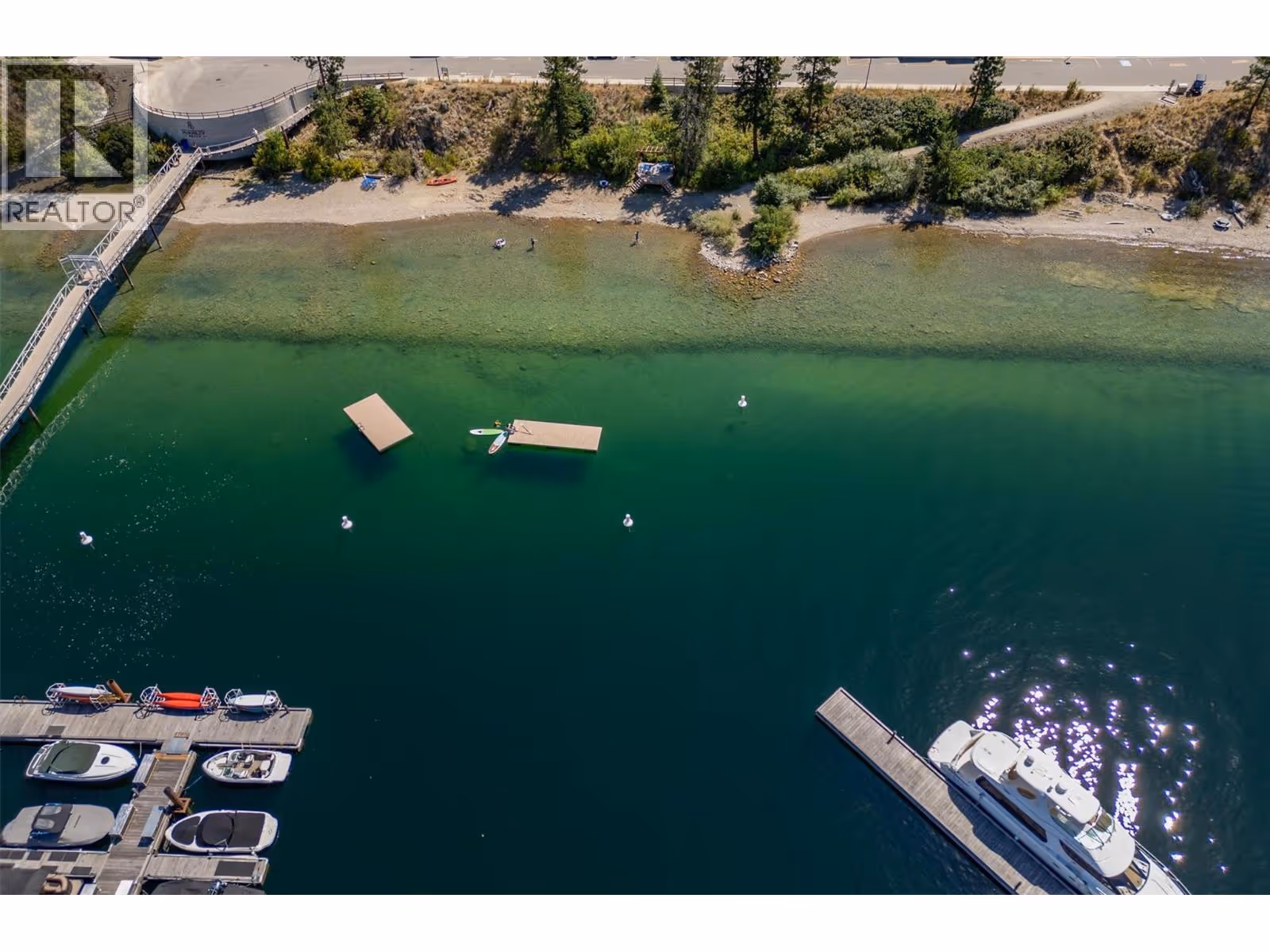 Discover lakefront living at The Granite at McKinley Beach in this beautiful 2 BR, 2 bath condo with the beach at your feet! The moment you step inside, the unbeatable lake and mountain views beckon you outside to the 27’ x 12’ west- facing balcony. Relax and dine, all with the comfort of an electric awning providing shade without obstructing your view. Come back inside and enjoy the newly installed vinyl plank flooring and carpet in both bedrooms. The guest bedroom features a floor-to-ceiling window with breathtaking lake vistas, generous closets and access to a three-piece bathroom. The main suite is strategically placed for privacy and includes a large walk-in closet, a sizeable linen closet, a spacious ensuite with dual vanities and a tub/shower combo. The open-concept living/dining area is ideal for entertaining. Enjoy stainless steel appliances, pantry, large island, and that gorgeous view of the lake. The functional office nook can easily become a wine bar (fridge included). The in-suite laundry room is practical and stylish, offering ample cabinetry and granite countertop. On-site amenities include a saltwater pool and rooftop hot tub. The brand new community centre features a gym, sauna, pool, hot tub and outdoor courts for pickleball, tennis and basketball. Azhadi Vineyards opening soon! Extras include same-floor storage and one underground parking stall. (id:62999)