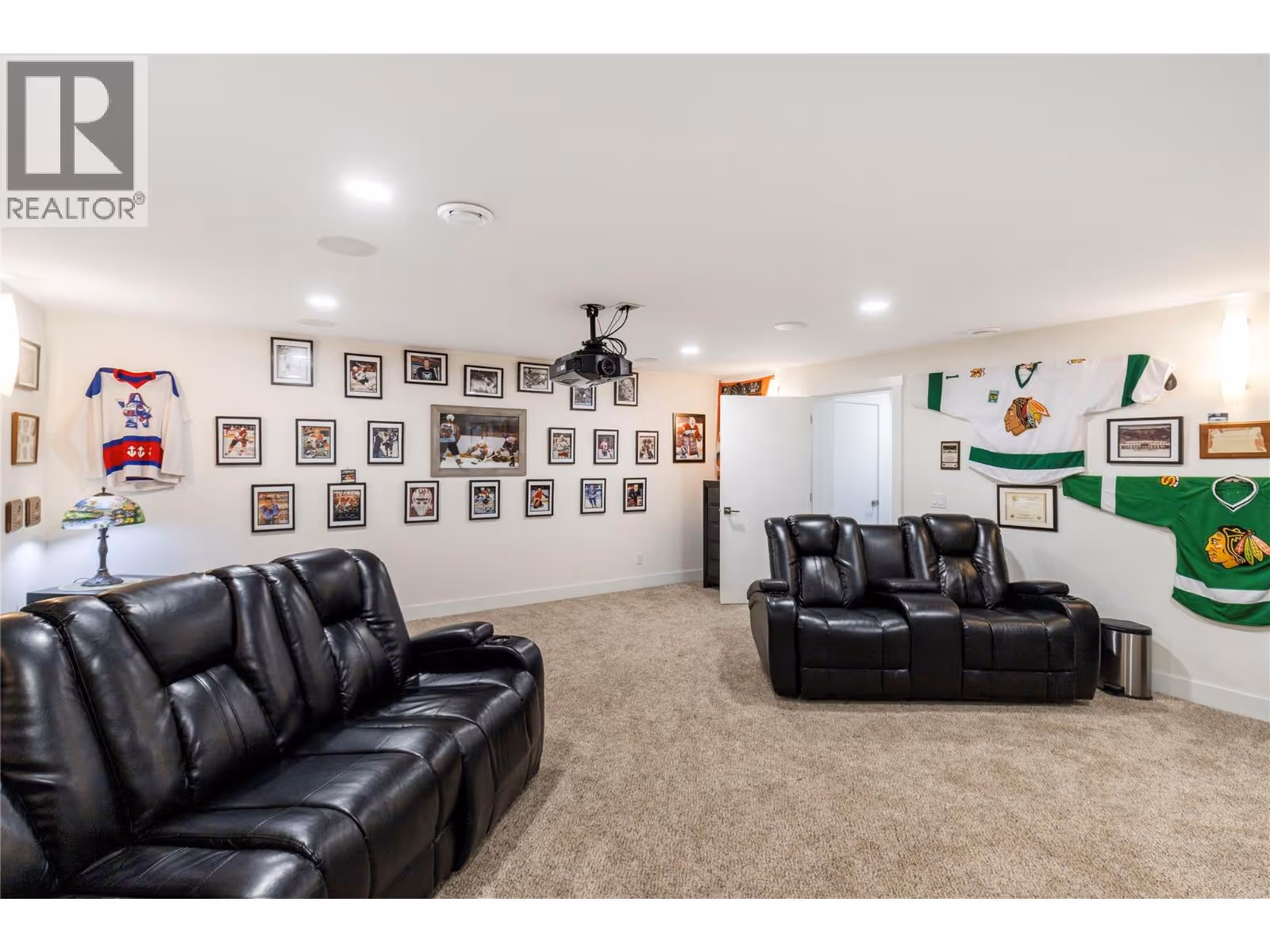 You are going to love the view from this beautifully designed walkout rancher in the sought-after Kirschner Mountain area. Offering 6 bedrooms and 5 bathrooms over 4,200 square feet, this home blends modern luxury with stunning lake and city views. Enjoy the breathtaking scenery the moment you walk inside. The main level features 3 bedrooms, 2 full bathrooms, and a half bath with in-floor heating. Highlights include high ceilings, a gas fireplace, hardwood floors, and an open-concept kitchen with stainless steel KitchenAid appliances. A large sundeck extends the living space outdoors, making it perfect for entertaining. The lower level includes 2 additional bedrooms, a full bathroom, a spacious rec room with a wet bar, and a fantastic soundproofed media room—ideal for sports and movie enthusiasts. There’s also a legal 1-bedroom suite with a private entrance and separate utilities, perfect for rental income or extended family. Additional features include central air conditioning, forced air and baseboard heating (electric and natural gas), a built-in vacuum, and a complete security system with surveillance cameras. The 0.24-acre lot offers a private yard with underground sprinklers and space for a pool. An attached double garage provides ample parking and storage. This is a high-quality home in a quiet, family-friendly neighborhood—ideal for comfortable living and entertaining. (id:62999)