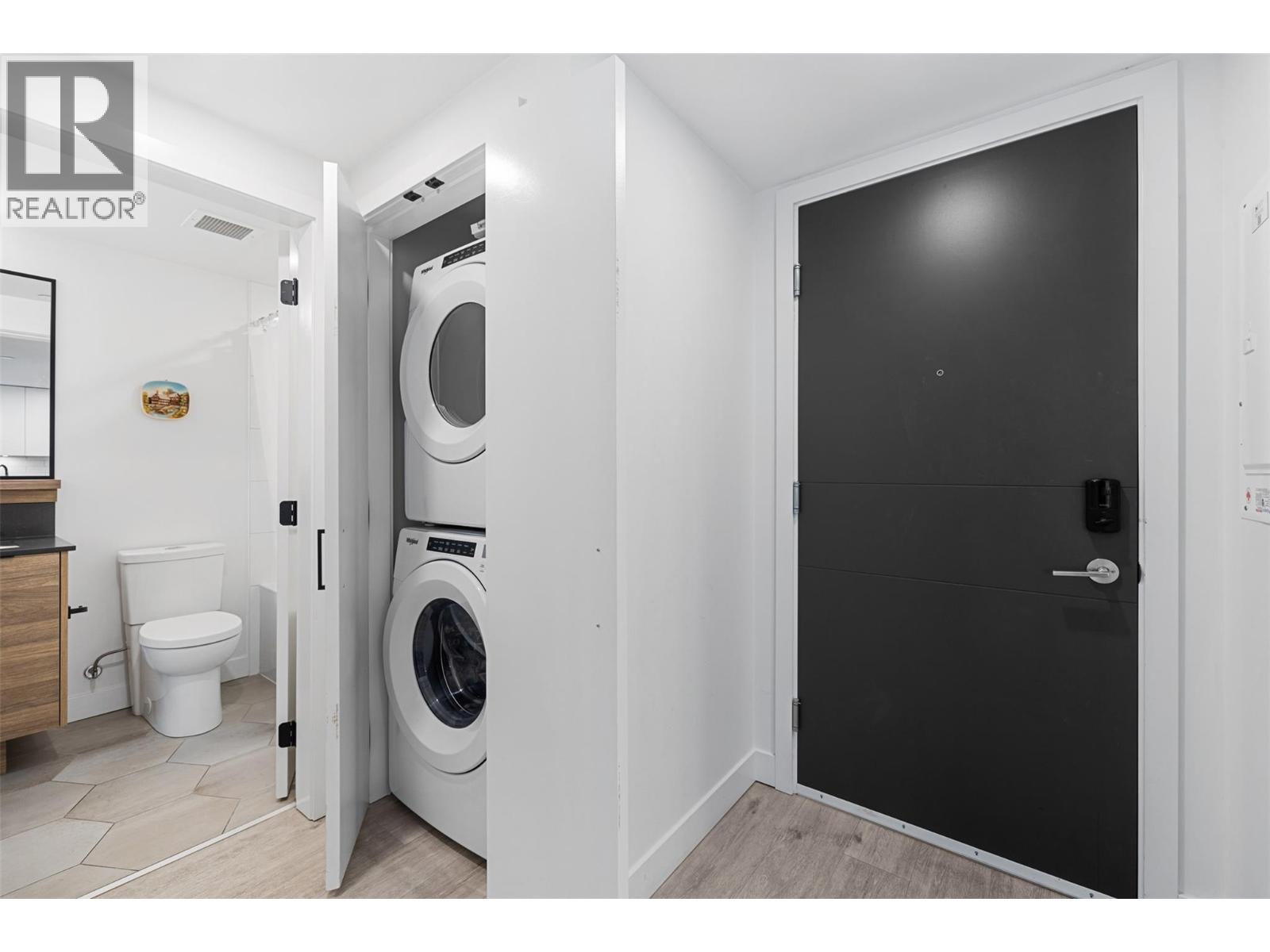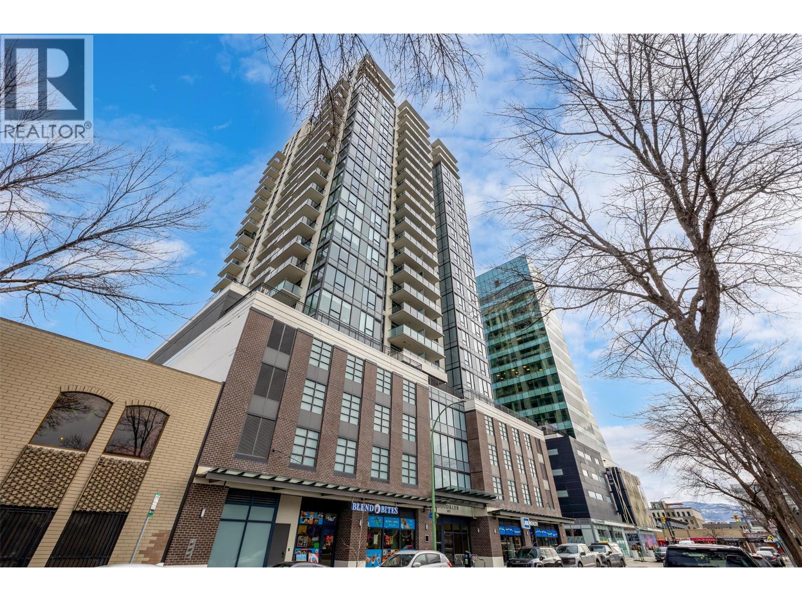 Experience urban living at its finest in Brooklyn, a prestigious 25-story high-rise in the heart of downtown Kelowna. This stunning 1-bedroom, 1-bathroom condo offers 491 sq. ft. of thoughtfully designed interior space, complemented by a spacious 112 sq. ft. patio with breathtaking south-facing views of the city and mountains from the 11th floor. The modern open-concept layout features sleek stainless steel appliances, quartz countertops, and in-suite laundry for ultimate convenience. With no age restrictions and pet-friendly policies, this home is ideal for professionals, investors, or those seeking a vibrant downtown lifestyle. Located in the sought-after Bernard District, enjoy a WalkScore of 98 with the lake, City Park, top restaurants, shopping, and nightlife just steps away. Plus, you’ll be within walking distance of the upcoming UBCO downtown campus. Residents enjoy premium amenities, including a rooftop terrace with BBQ area, conference room, lounge, dog wash station, bike wash, and secure bike storage. This unit also comes with one designated parking stall. Don’t miss this opportunity to own in one of Kelowna’s most desirable downtown buildings! Allow two dogs or two cats or one of each, no size or breed restriction on dogs. Short-term rentals are expected to be permitted provincially starting in June 2026. Vacant, quick possession possible. (id:62999)
