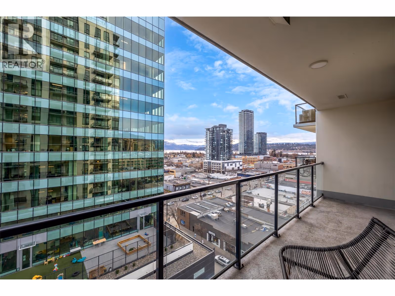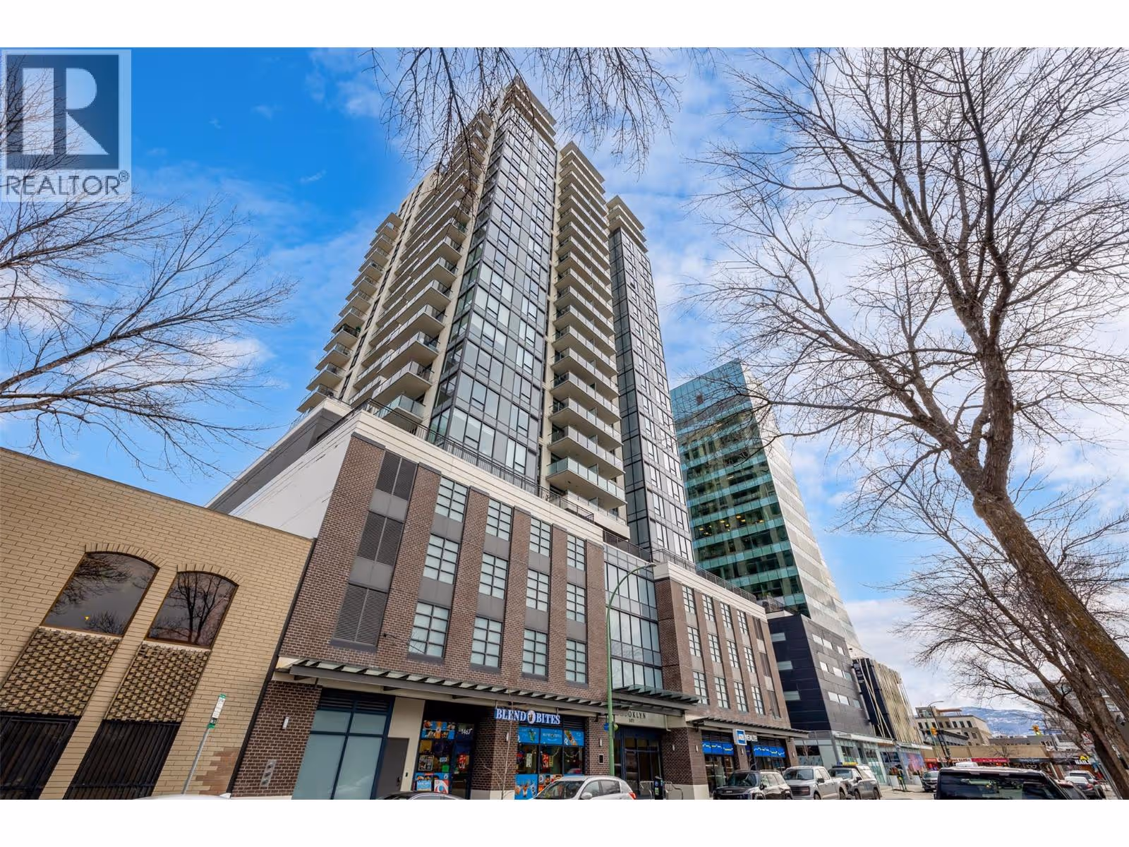Experience urban living at its finest in Brooklyn, a prestigious 25-story high-rise in the heart of downtown Kelowna. This stunning 1-bedroom, 1-bathroom condo offers 491 sq. ft. of thoughtfully designed interior space, complemented by a spacious 112 sq. ft. patio with breathtaking south-facing views of the city and mountains from the 11th floor. The modern open-concept layout features sleek stainless steel appliances, quartz countertops, and in-suite laundry for ultimate convenience. With no age restrictions and pet-friendly policies, this home is ideal for professionals, investors, or those seeking a vibrant downtown lifestyle. Located in the sought-after Bernard District, enjoy a WalkScore of 98 with the lake, City Park, top restaurants, shopping, and nightlife just steps away. Plus, you’ll be within walking distance of the upcoming UBCO downtown campus. Residents enjoy premium amenities, including a rooftop terrace with BBQ area, conference room, lounge, dog wash station, bike wash, and secure bike storage. This unit also comes with one designated parking stall. Don’t miss this opportunity to own in one of Kelowna’s most desirable downtown buildings! Allow two dogs or two cats or one of each, no size or breed restriction on dogs. (id:62999)