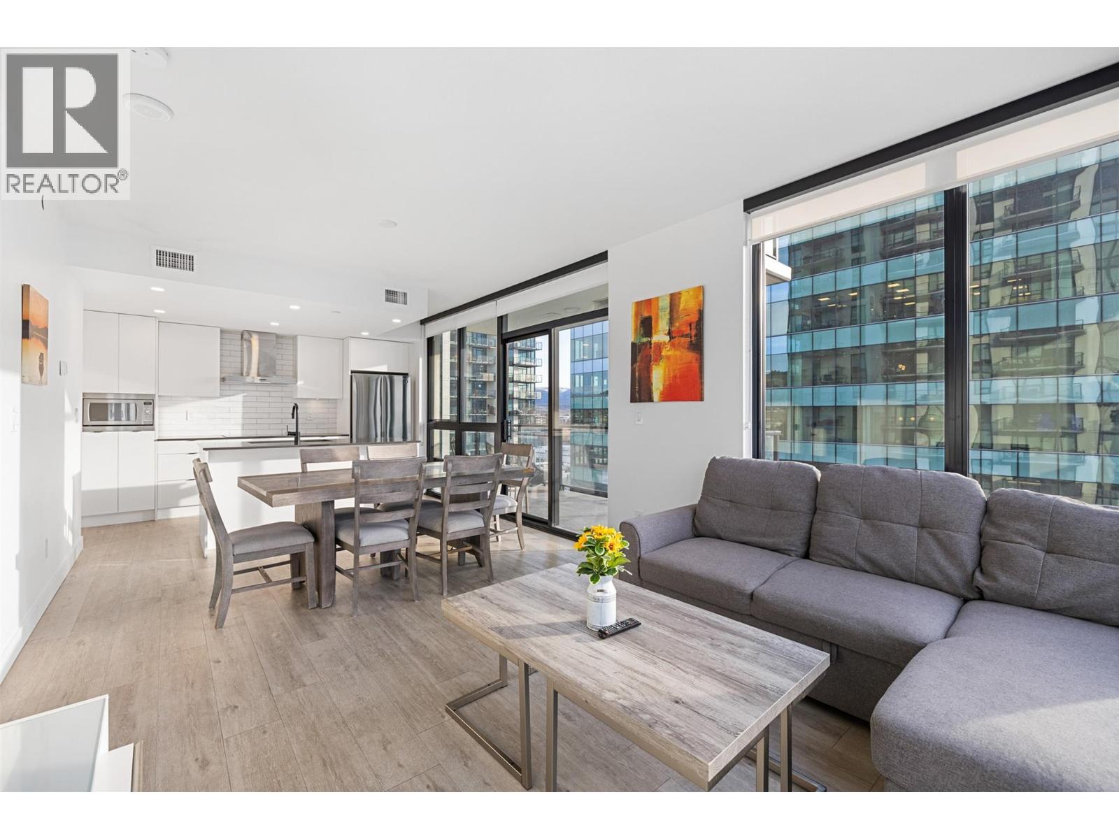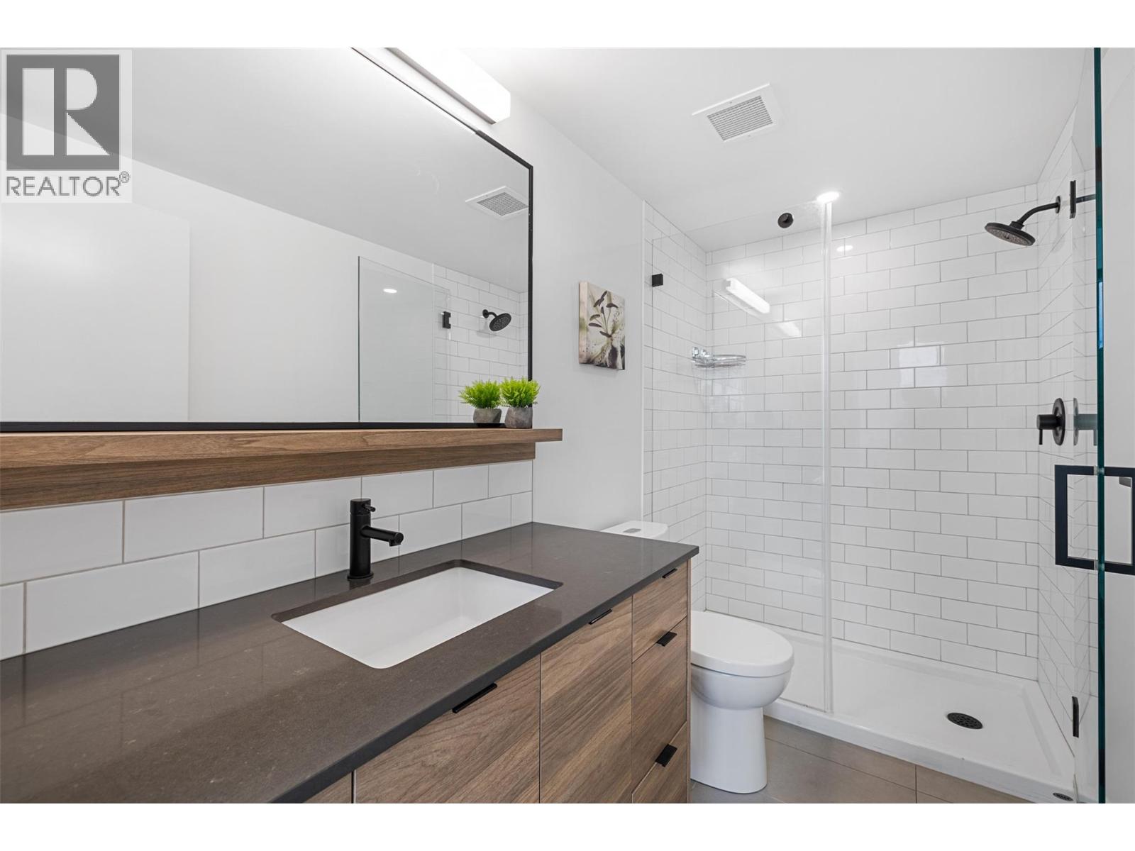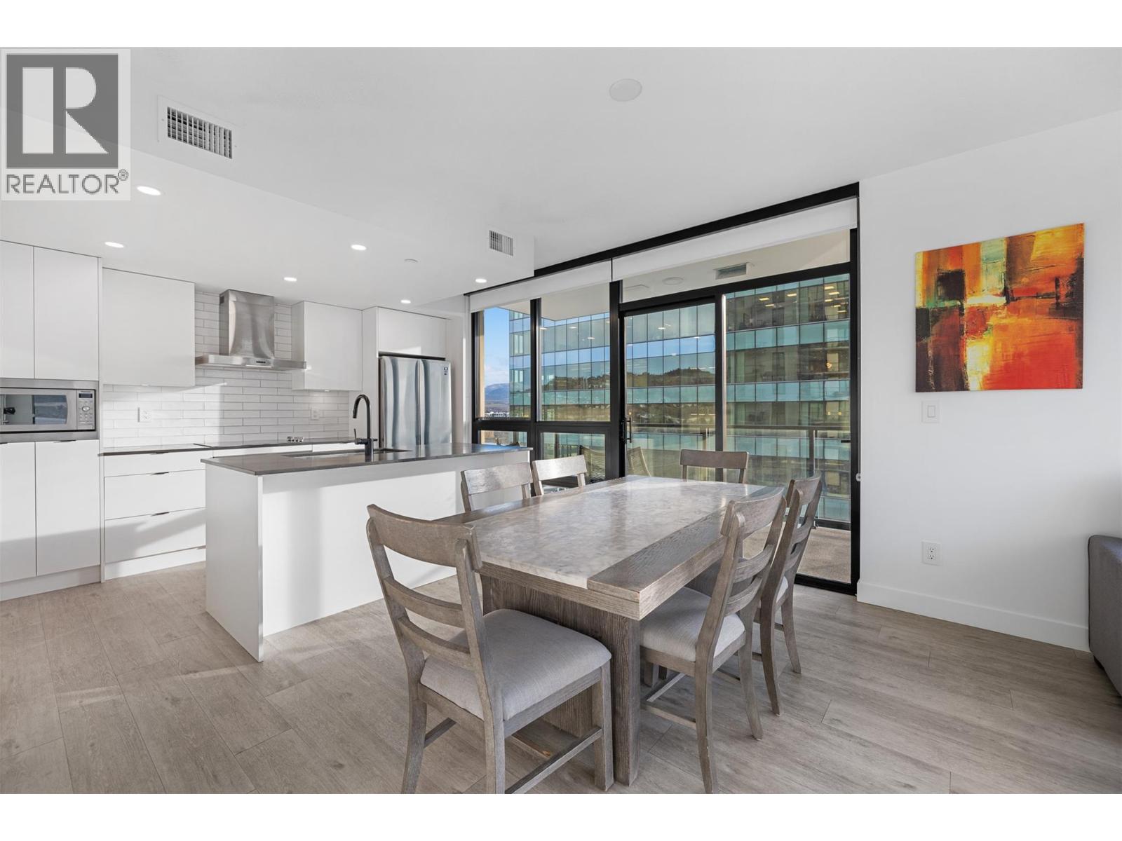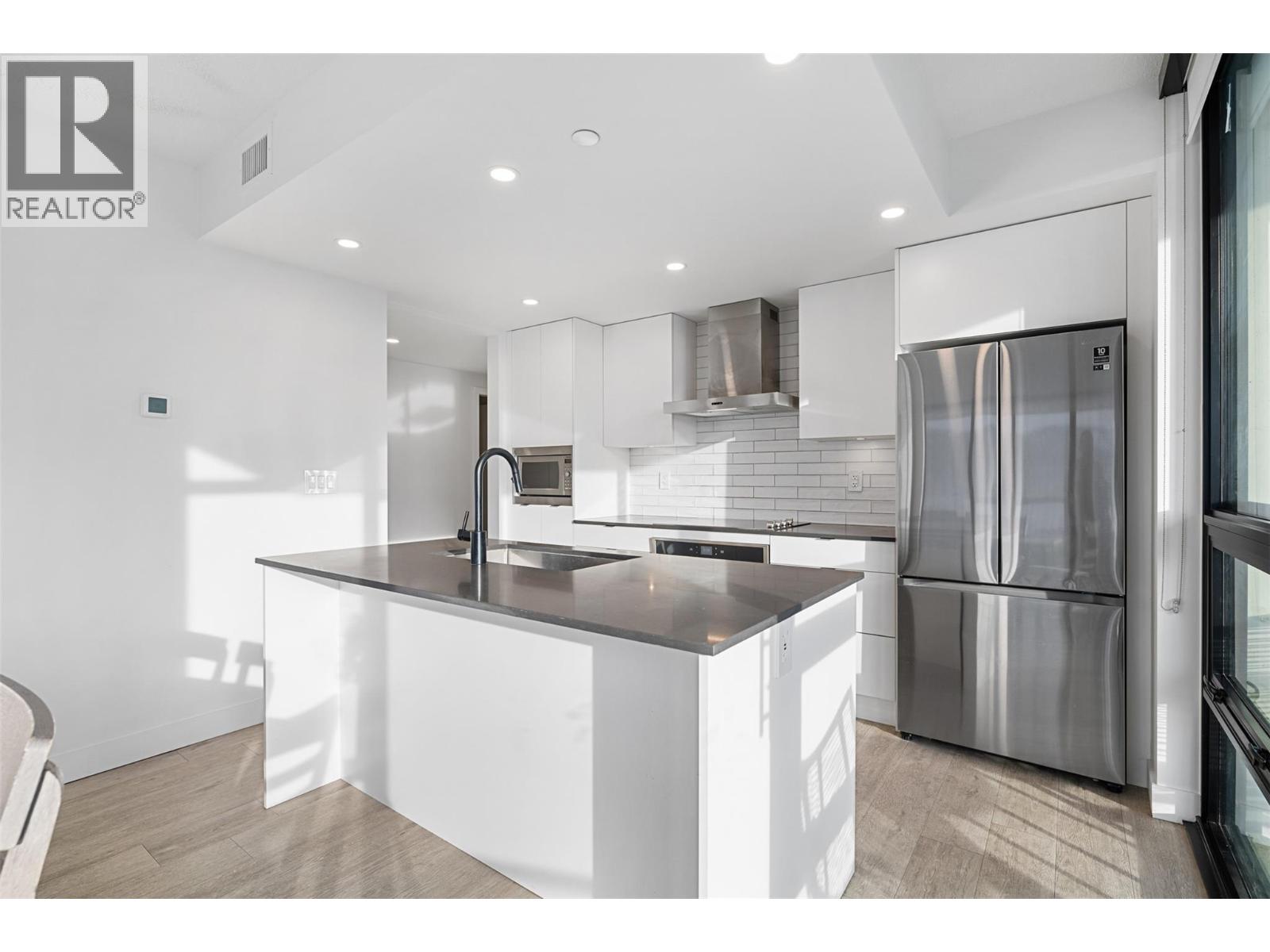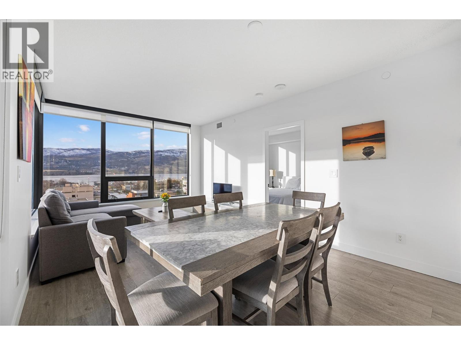 This stunning southwest-facing, 2-bedroom, 2-bathroom corner unit offers 871 sq. ft. of modern, open-concept living plus a private 99 sq. ft. patio that’s perfect for soaking in the lake views. Bright and inviting, the home features a light color palette, sleek stainless steel appliances, quartz countertops, and in-suite laundry. Situated in the vibrant Bernard District, you’ll enjoy a 98 WalkScore with City Park, the lake, top restaurants, shopping, and nightlife right at your doorstep—plus the future UBCO downtown campus just a short walk away. Pet-friendly and with no age restrictions, this home is ideal for professionals, investors, or anyone seeking an urban lifestyle. Residents enjoy premium amenities like a rooftop terrace with BBQ area, conference room, lounge, dog wash station, bike wash, and secure bike storage. One designated parking stall is included. Owner-occupied and move-in ready. Allow two dogs or two cats or one of each, no size or breed restriction on dogs. Short-term rentals are expected to be permitted provincially starting in June 2026. (id:62999)