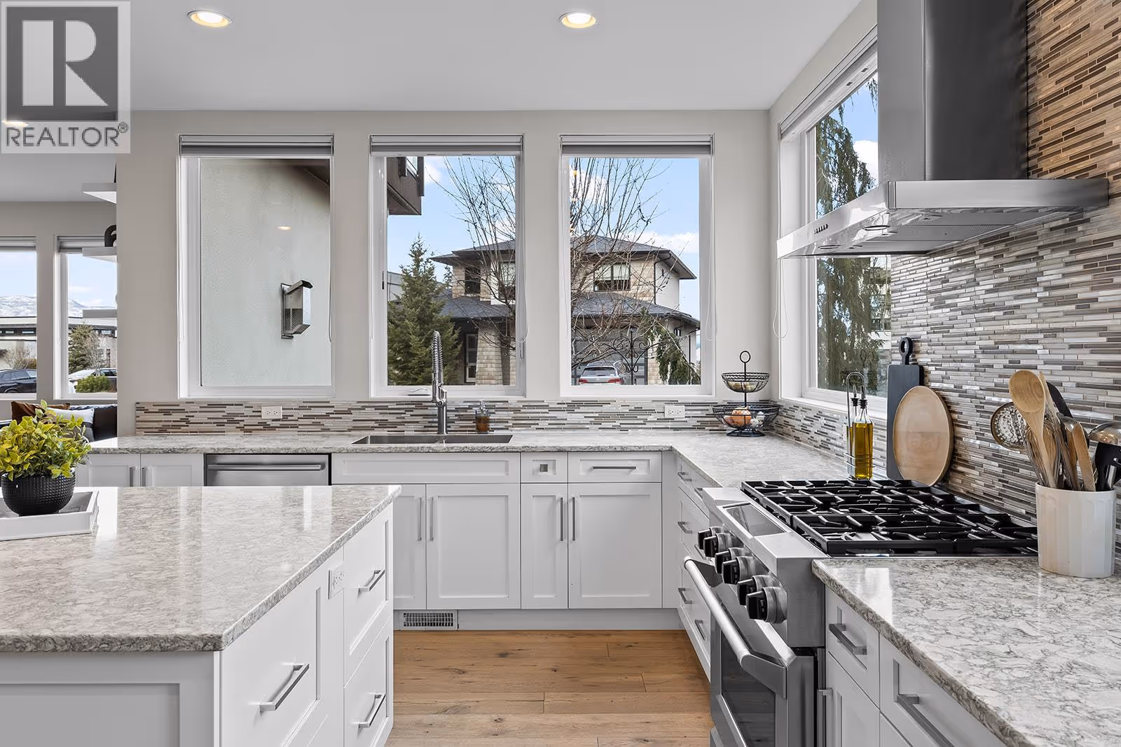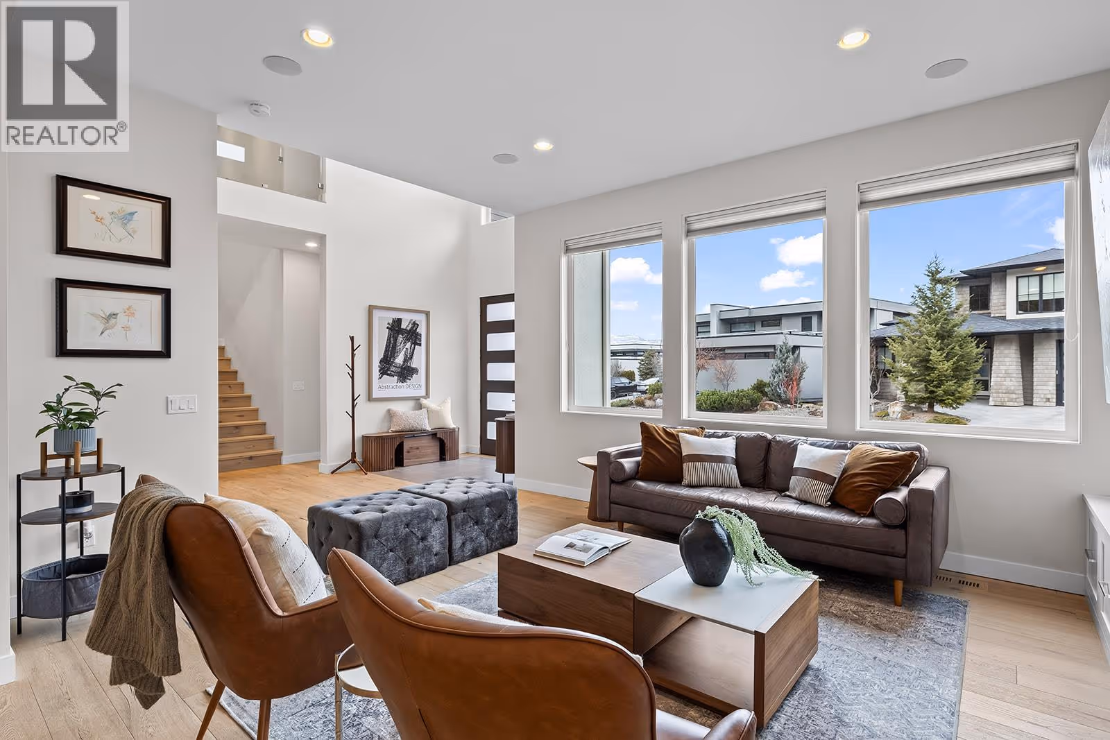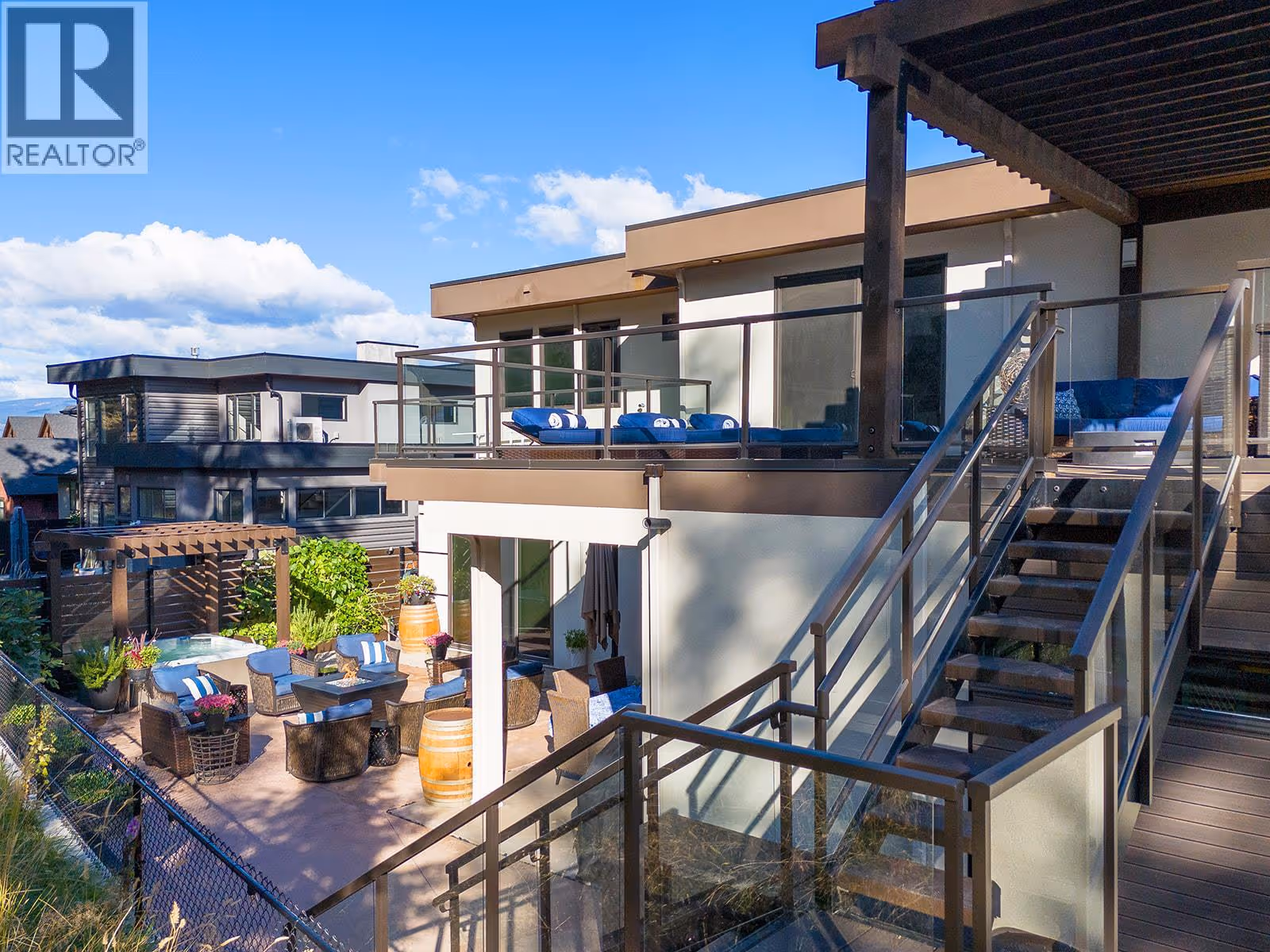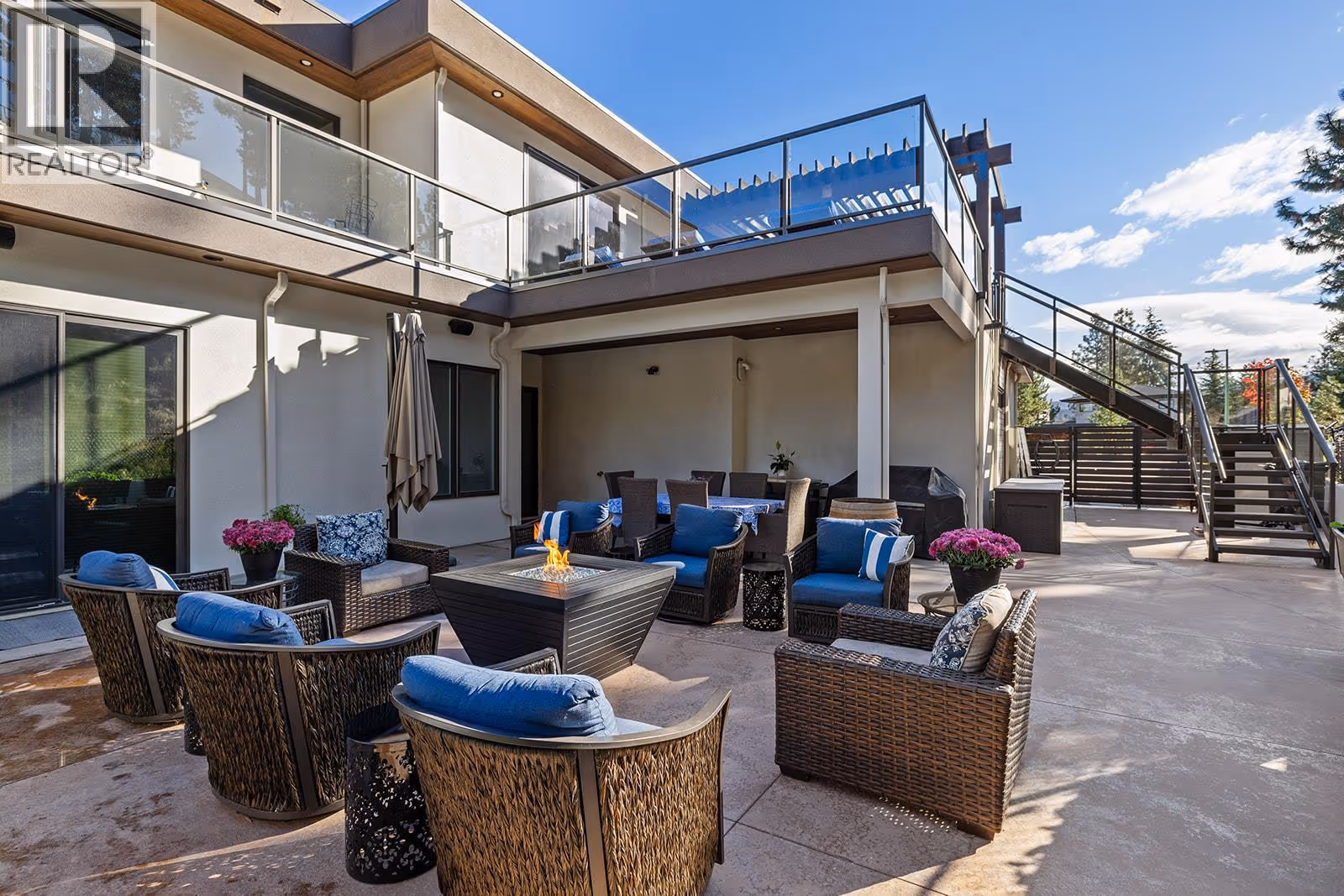 Welcome to 1091 Westpoint Drive, a stunning executive home perched at the summit of Woodland Hills, one of Kelowna’s most prestigious addresses. With over $350,000 in recent improvements and upgrades, this residence has been thoughtfully designed, built, & finished to reflect its elite setting. This is a home that truly rewards coming home—ideal for busy professionals, productive work-from-home days, entertaining friends & family, or enjoying relaxed family weekends. The main floor layout is exceptional, featuring a spacious great room with generous living & dining areas capable of hosting a dozen or more guests. The gourmet kitchen will impress any home chef, offering premium appliances including a double-door refrigerator, 6-ring gas stove, oversized island, & Quartz countertops. A large office/den with a striking floating carbon fibre desk accommodates multiple workstations & a glass-fronted wine room adds function & flair. The primary suite on the main floor is a private retreat, complete with a spa-inspired ensuite featuring a soaker tub, walk-in shower, & direct access to a primary-adjacent hot tub. Upstairs, four additional spacious bedrooms are connected by a central loft and media area with a built-in wet bar, plus access to two upper decks, one with outdoor fireplace & lake view. Additional features include white oak plank flooring, in-floor heating on the main, instant hot water on demand, smart lighting, 6-zone audio, & dual 5.1 surround systems. (id:62999)