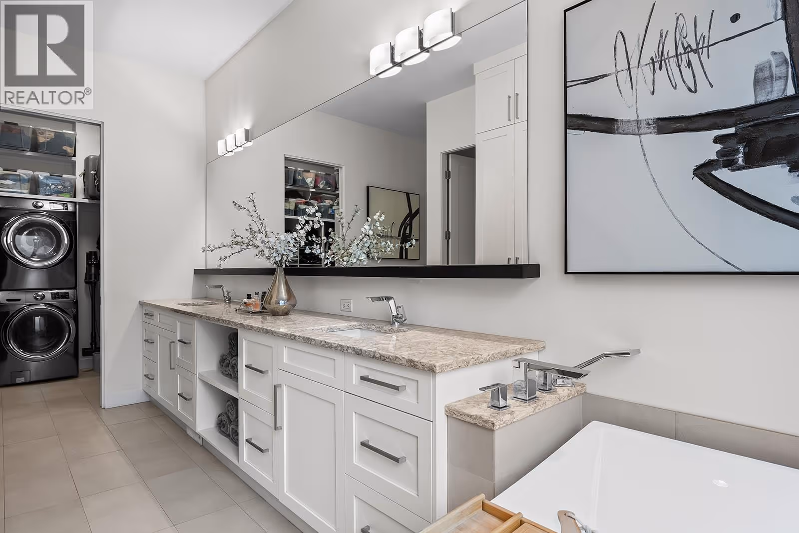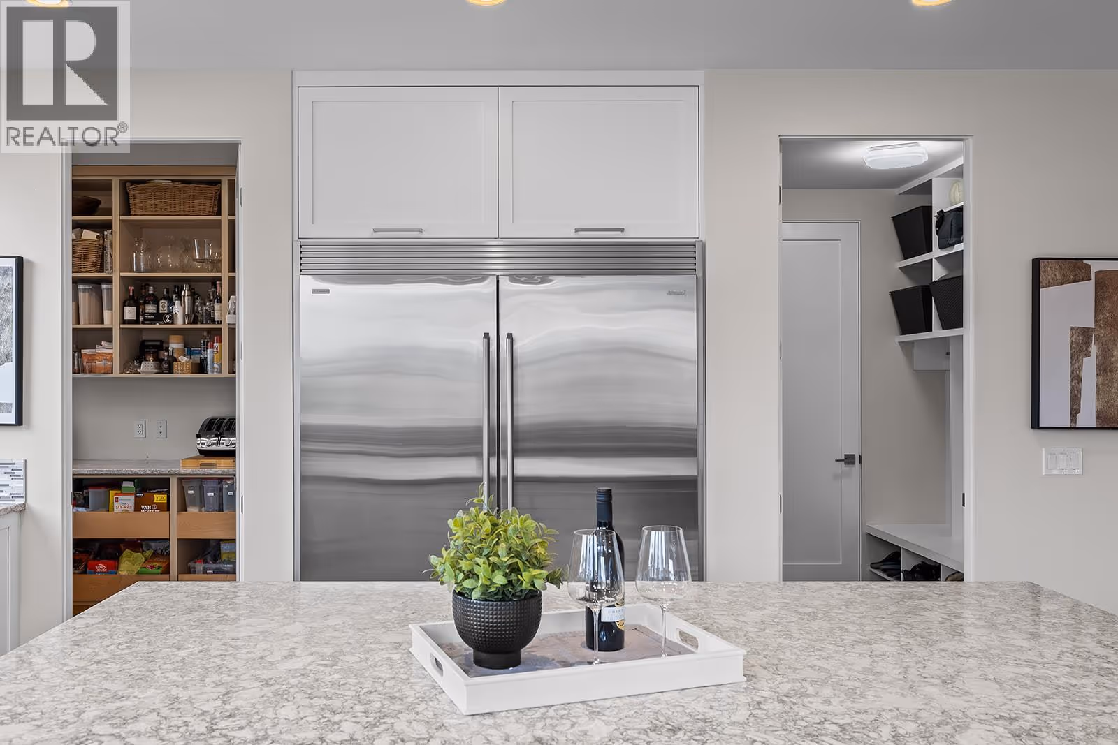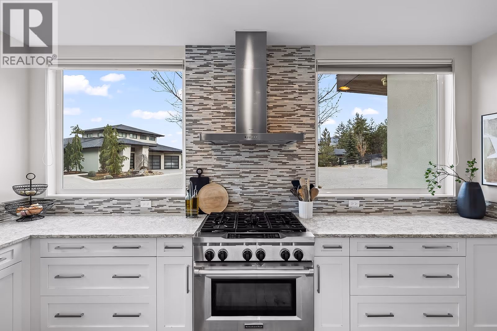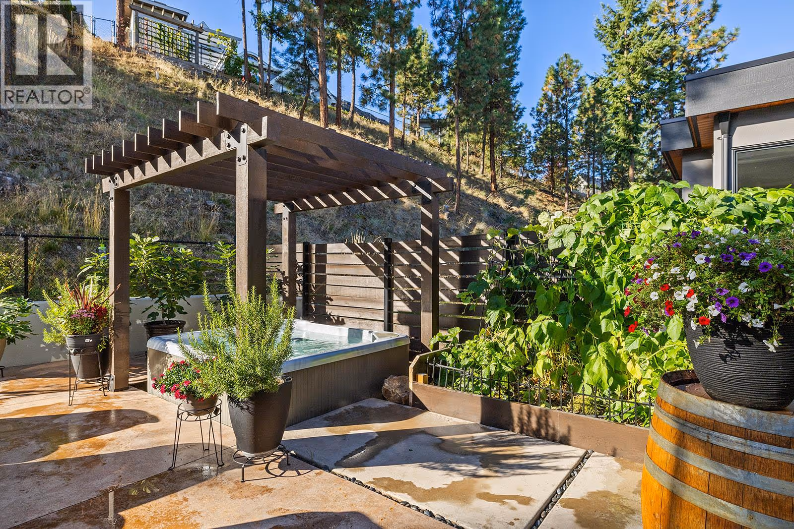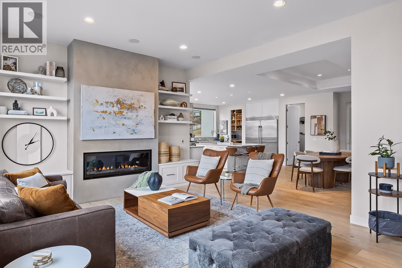 Welcome to 1091 Westpoint Drive, a stunning executive home perched at the summit of Woodland Hills, one of Kelowna’s most prestigious addresses. With over $350,000 in recent improvements and upgrades, this residence has been thoughtfully designed, built, & finished to reflect its elite setting. This is a home that truly rewards coming home—ideal for busy professionals, productive work-from-home days, entertaining friends & family, or enjoying relaxed family weekends. The main floor layout is exceptional, featuring a spacious great room with generous living & dining areas capable of hosting a dozen or more guests. The gourmet kitchen will impress any home chef, offering premium appliances including a double-door refrigerator, 6-ring gas stove, oversized island, & Quartz countertops. A large office/den with a striking floating carbon fibre desk accommodates multiple workstations & a glass-fronted wine room adds function & flair. The primary suite on the main floor is a private retreat, complete with a spa-inspired ensuite featuring a soaker tub, walk-in shower, & direct access to a primary-adjacent hot tub. Upstairs, four additional spacious bedrooms are connected by a central loft and media area with a built-in wet bar, plus access to two upper decks, one with outdoor fireplace & lake view. Additional features include white oak plank flooring, in-floor heating on the main, instant hot water on demand, smart lighting, 6-zone audio, & dual 5.1 surround systems. (id:62999)