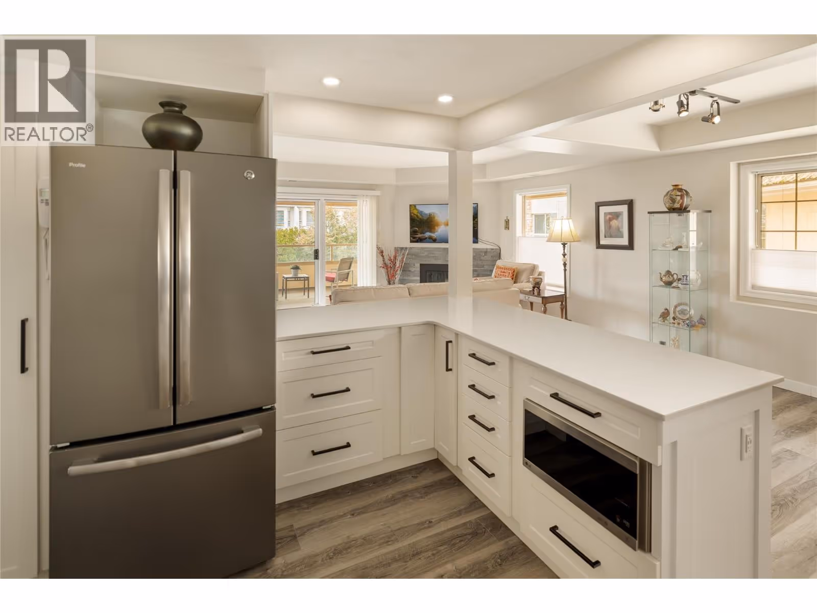 Move-in ready 2-bedroom, 2-bathroom condo located in a well-maintained 55+ community in a truly prime location. Just steps from beaches, shopping, banks, cafes, and essential medical services, this home offers everyday convenience with a peaceful, residential feel. Thoughtfully positioned as a quiet east-facing corner unit with no shared walls, the layout provides exceptional privacy and natural light throughout. The recently renovated, modern kitchen features clean lines, updated cabinetry, and generous workspace, flowing seamlessly into the open living and dining areas—ideal for comfortable daily living or hosting guests. The living room is warm and welcoming, anchored by a gas fireplace and direct access to the covered patio, where you can enjoy tranquil morning light in a calm, sheltered setting. Both bedrooms are well-proportioned, with the primary suite offering its own ensuite bathroom and ample storage. Residents enjoy access to excellent building amenities, including a fitness centre, workshop, bike storage, and a common room with kitchen—perfect for social gatherings and community events. The home also includes secure underground parking and a secure storage locker for added peace of mind. A well-run, age-restricted building with no pets permitted, offering a quiet, community-focused lifestyle in one of the area’s most convenient locations. (id:62999)