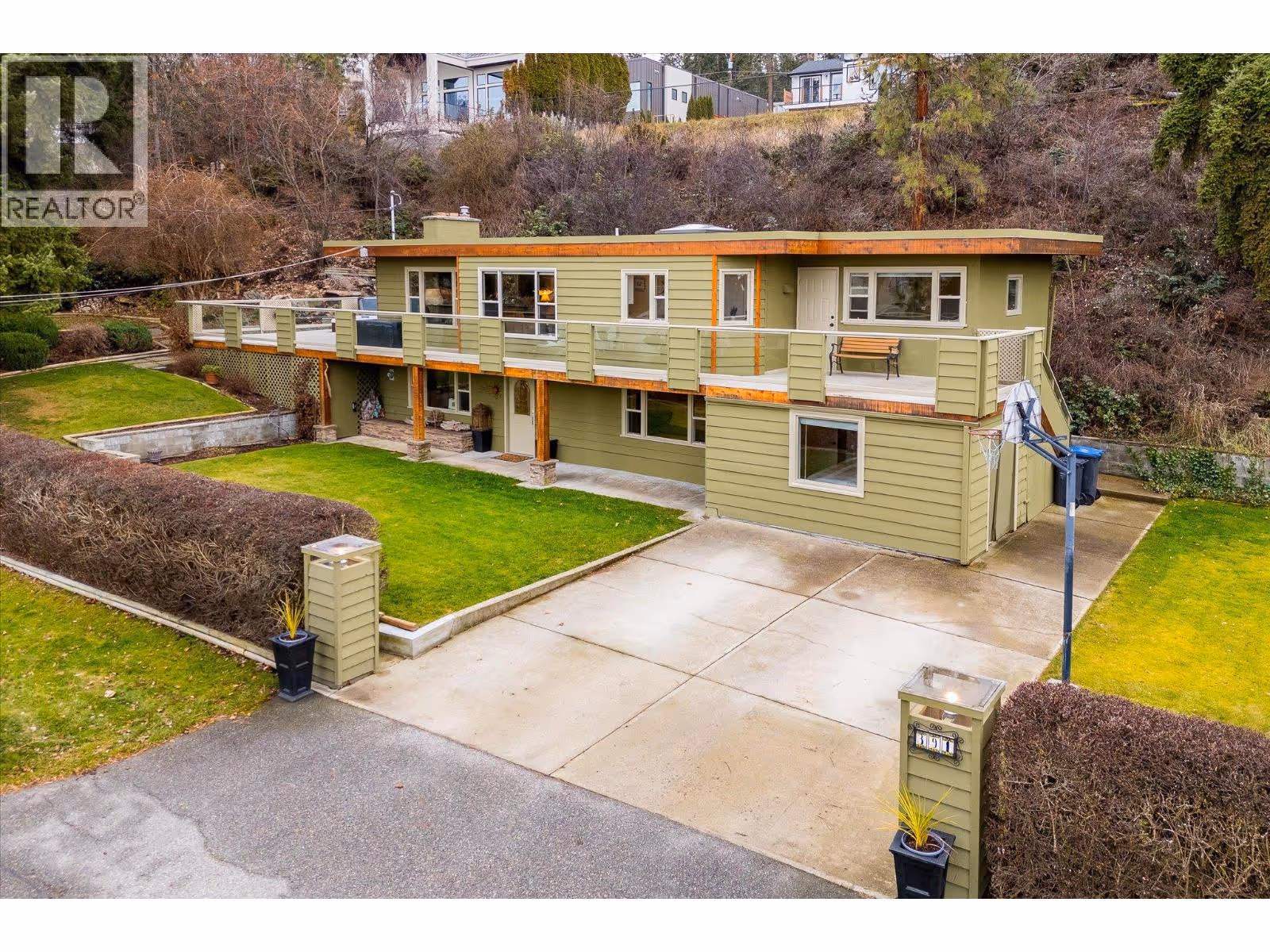 Welcome to 391 Braeloch Road, a beautifully situated family home in a quiet and private neighbourhood located across the street from the lake offering both space and lifestyle. Set on a generous 0.3-acre lot with mature landscaping, this property provides ample yard space for family, outdoor gatherings and room for a pool! Enjoy easy lake access across the street at Braeloch Beach where you can enjoy a swim or paddleboard, daily walks to nearby Cedar Creek Park (an off-leash dog park),close proximity to several of the Okanagan’s renowned wineries and world-class road biking route along Lakeshore Road. The home offers 4 bedrooms + den & 2 bathrooms, thoughtfully laid out with two berms and a four-pc bathroom on each level. Main floor features laminate flooring (added in 2018) thru out the kitchen, living & dining areas. The spacious open-concept living room is highlighted by a wood-burning fireplace with rock surround, perfect for staying cozy during the winter months. Step outside to the 1100 sqft wrap-around patio, complete with hot tub & gas hookup for a BBQ—ideal for entertaining or relaxing outdoors. The primary bedroom also enjoys private access to the front patio and peak a boo views of the lake. The lower level adds two additional bedrooms and a generous size family/rec room. First time offered for sale in over 40 years, this home offers the rare combination of location and lifestyle in one of the area’s most desirable settings. (id:62999)